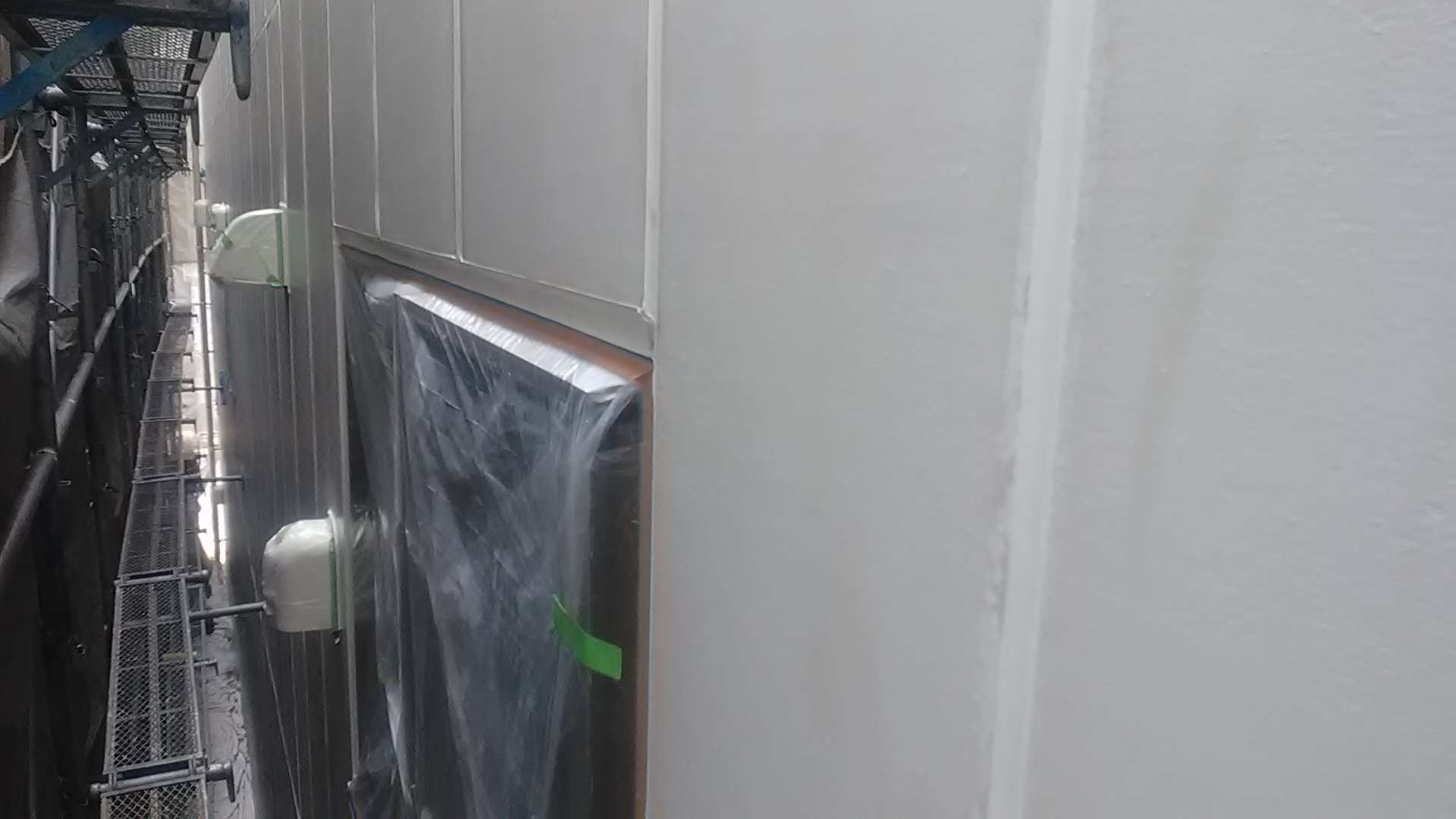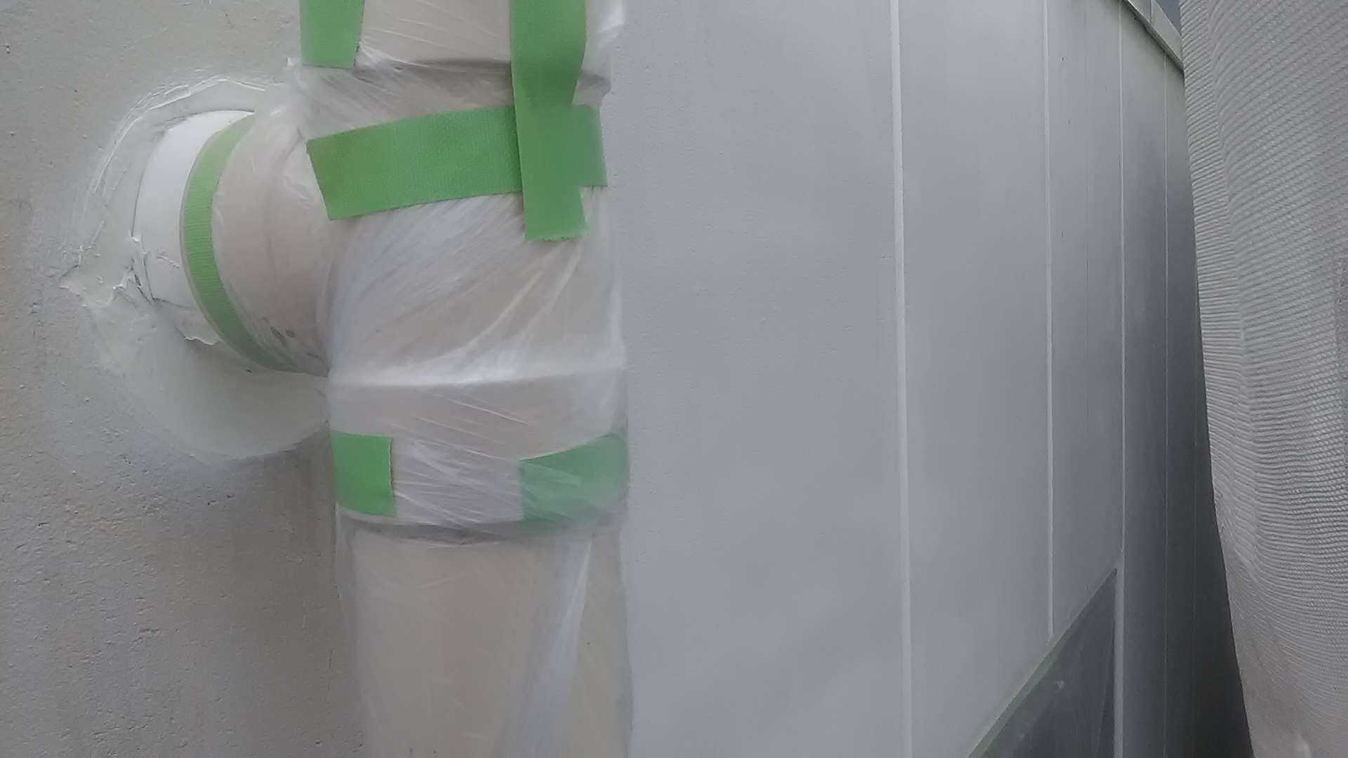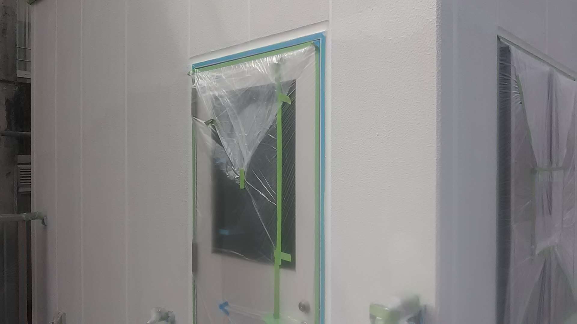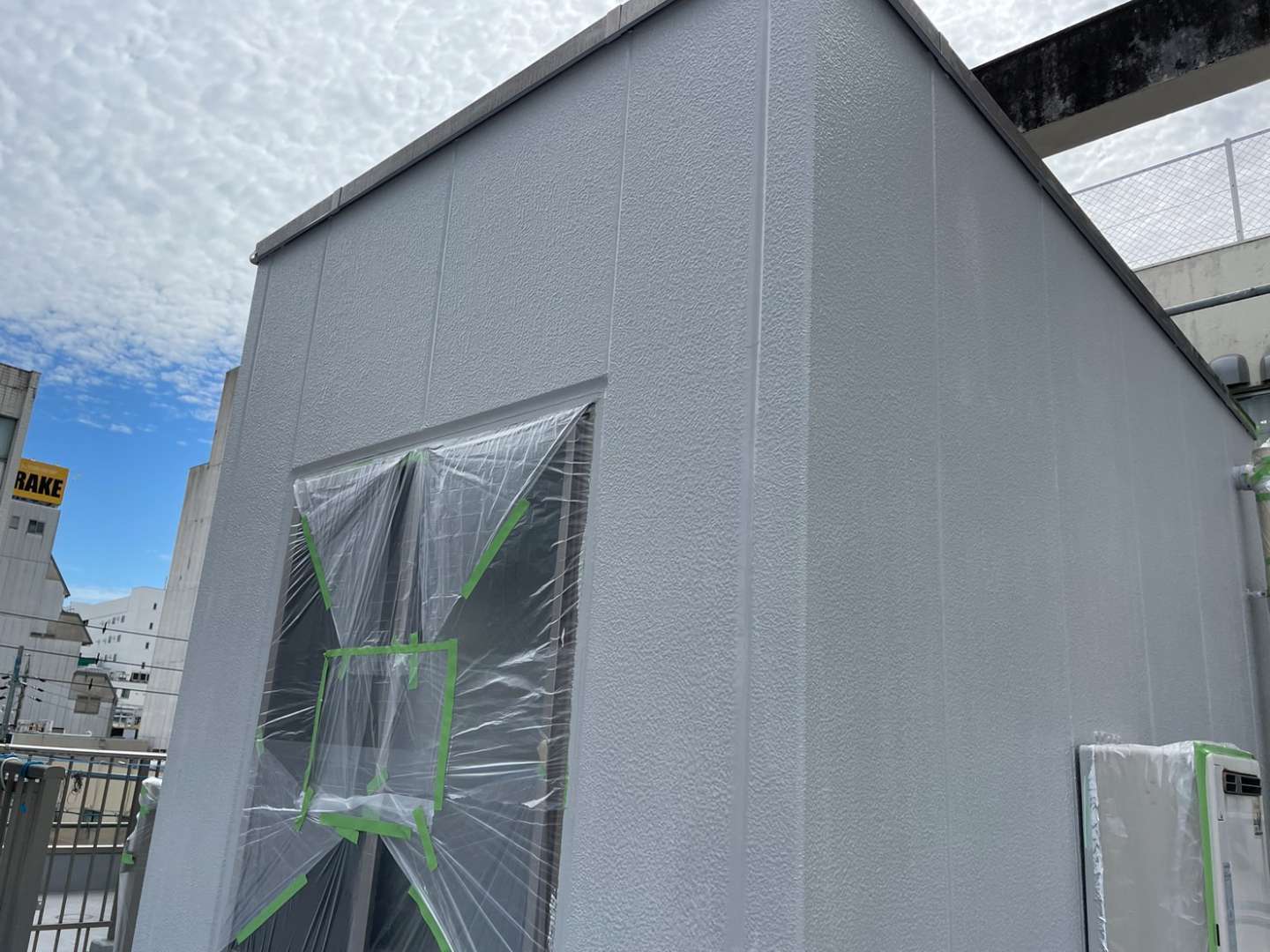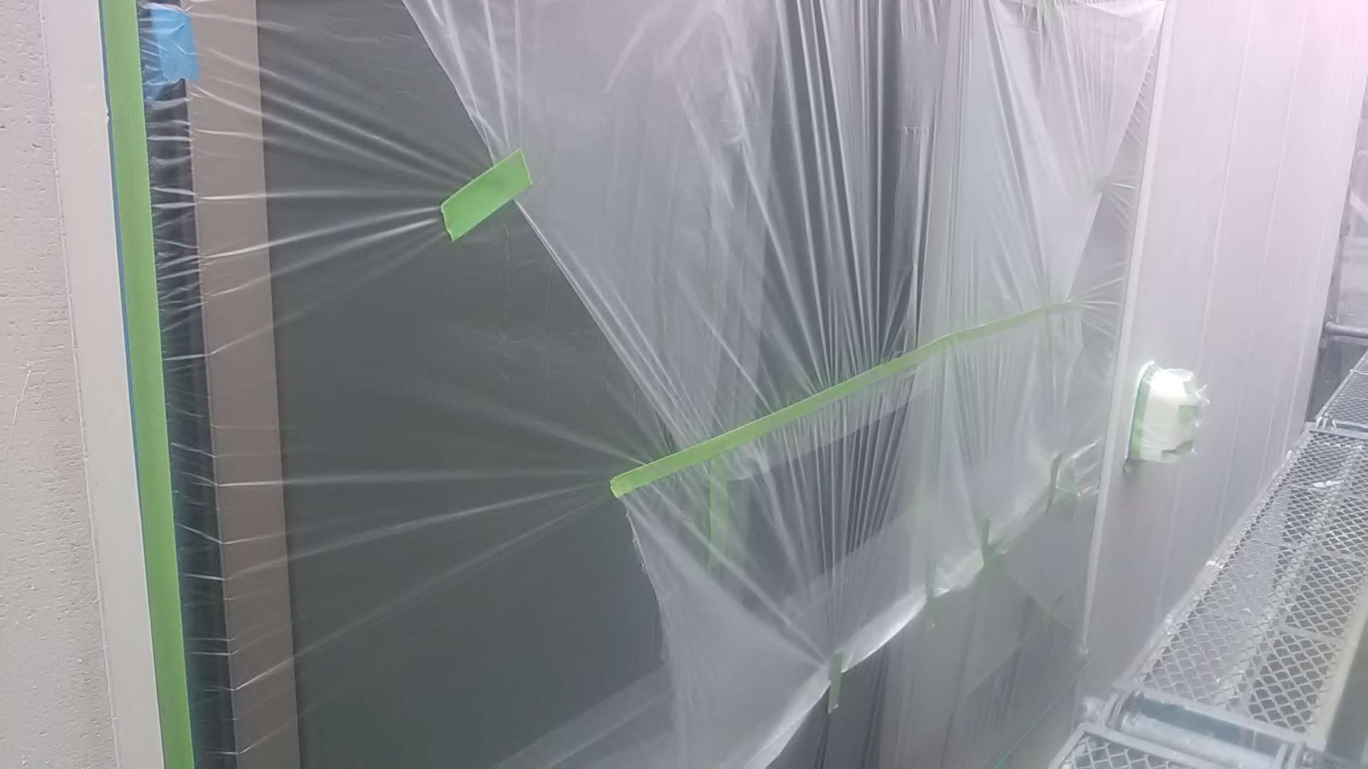 昨日の作業は、養生作業とペントハウスの下塗り塗装作業でした。
