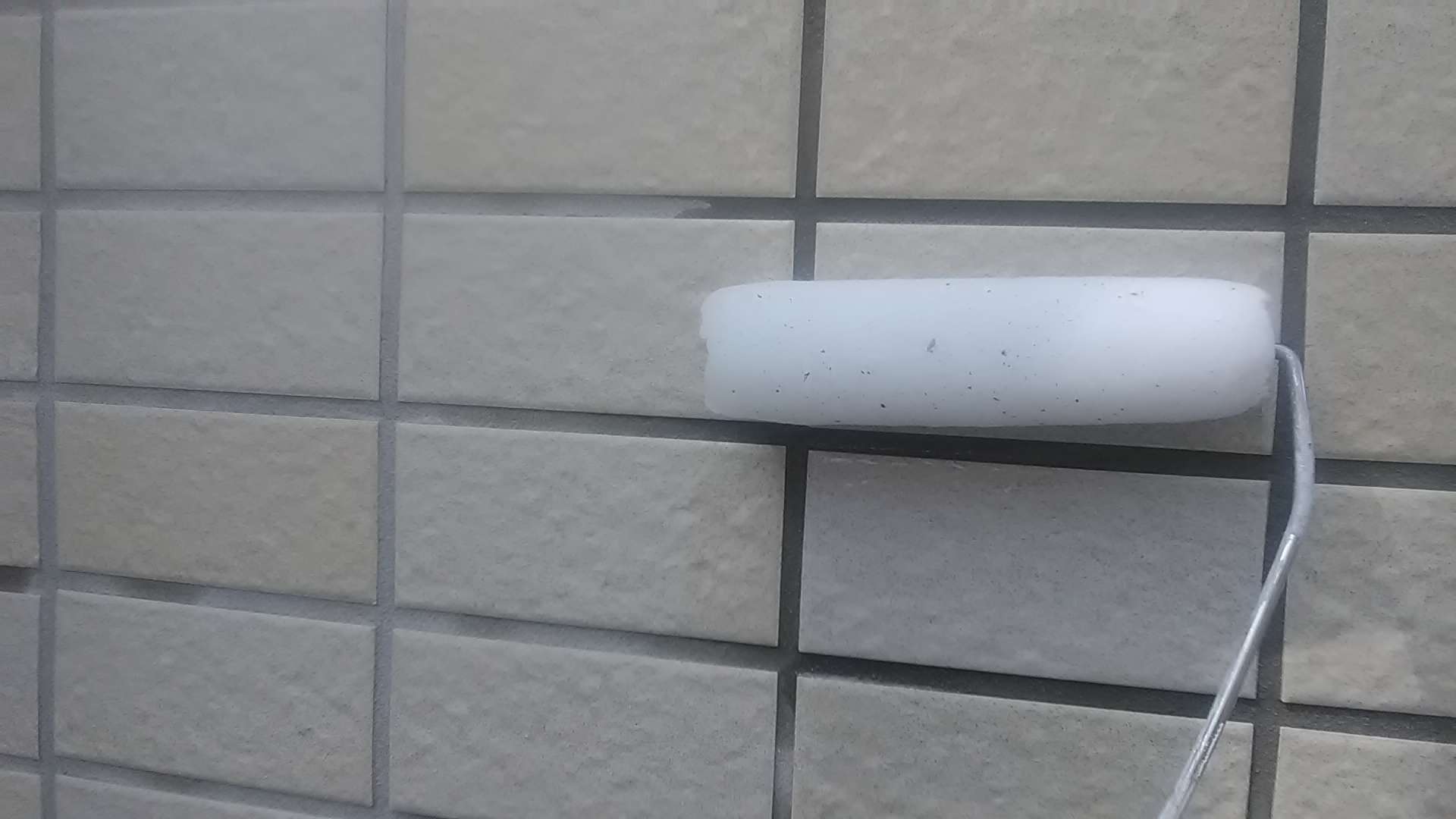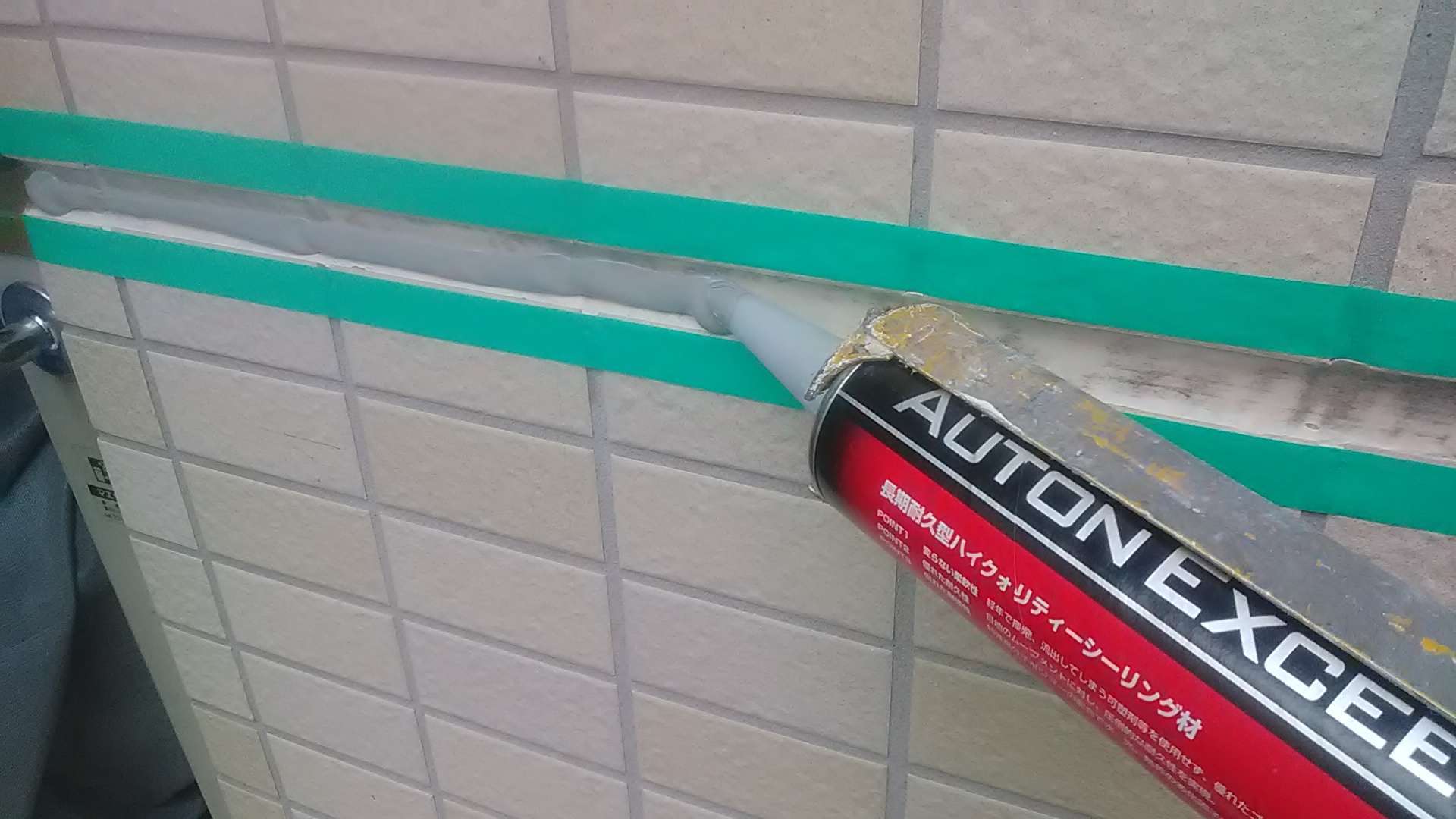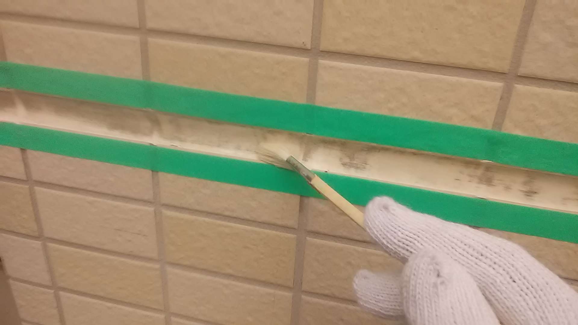 昨日の作業は、タイル部分の二回目塗装作業とコーキング補修作業でした。