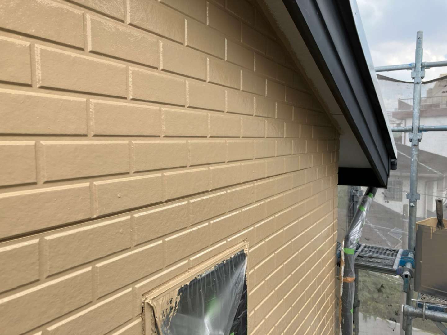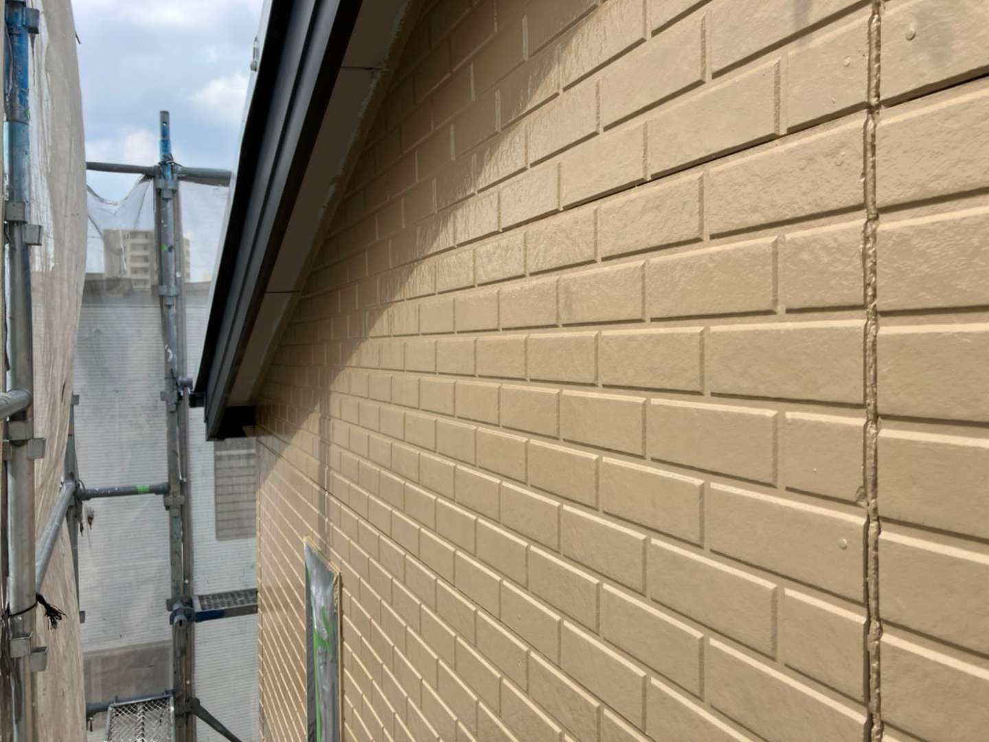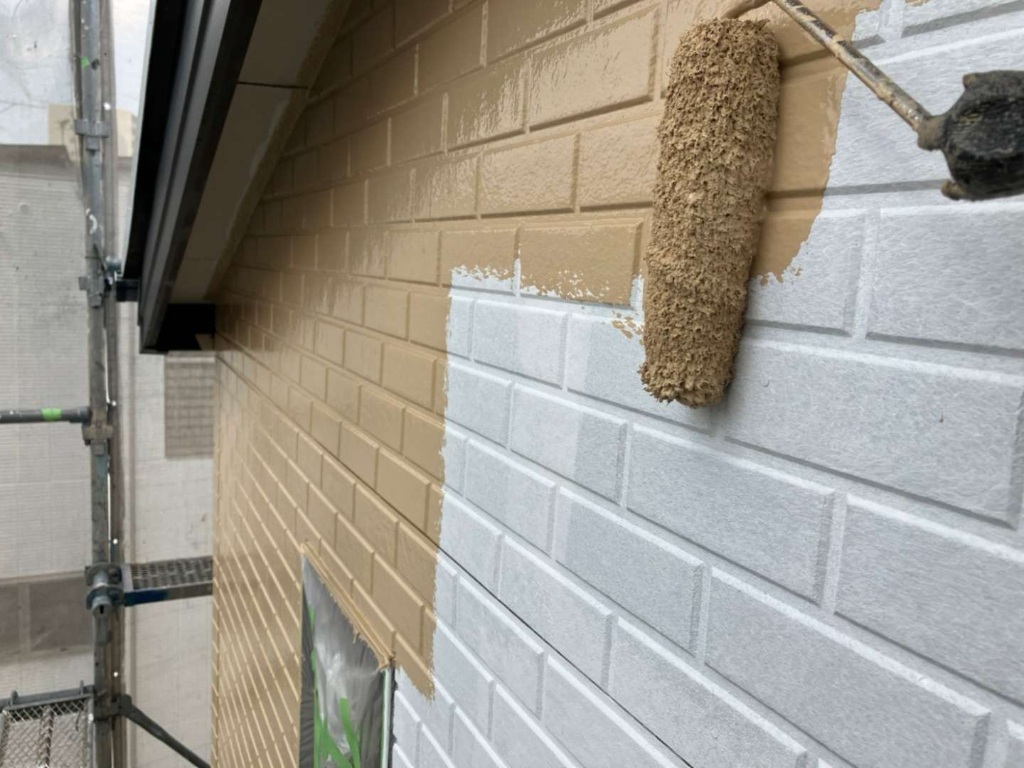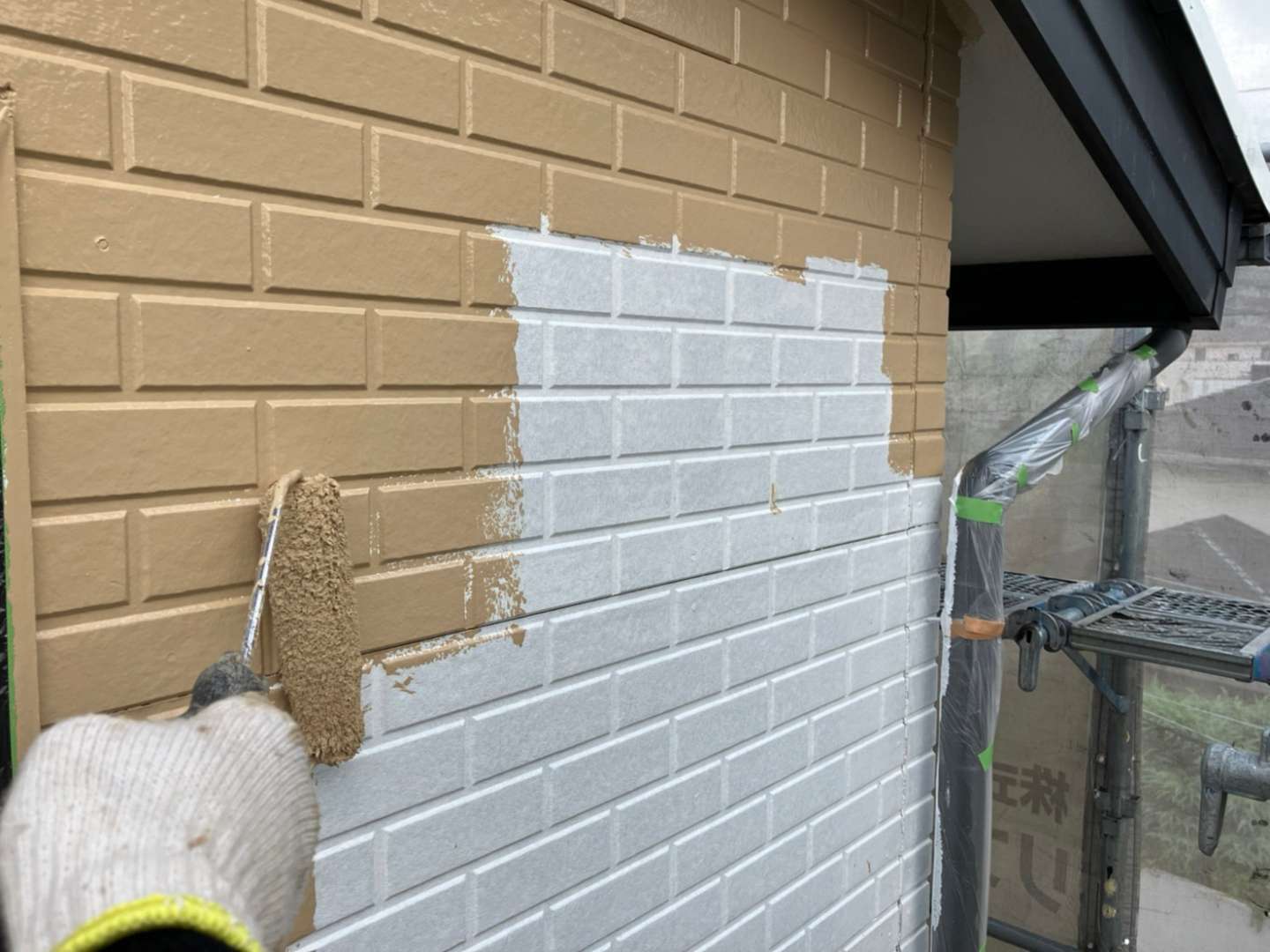 昨日までの作業内容は、屋根の中塗り塗装・外壁の中、上塗り塗装作業でした。