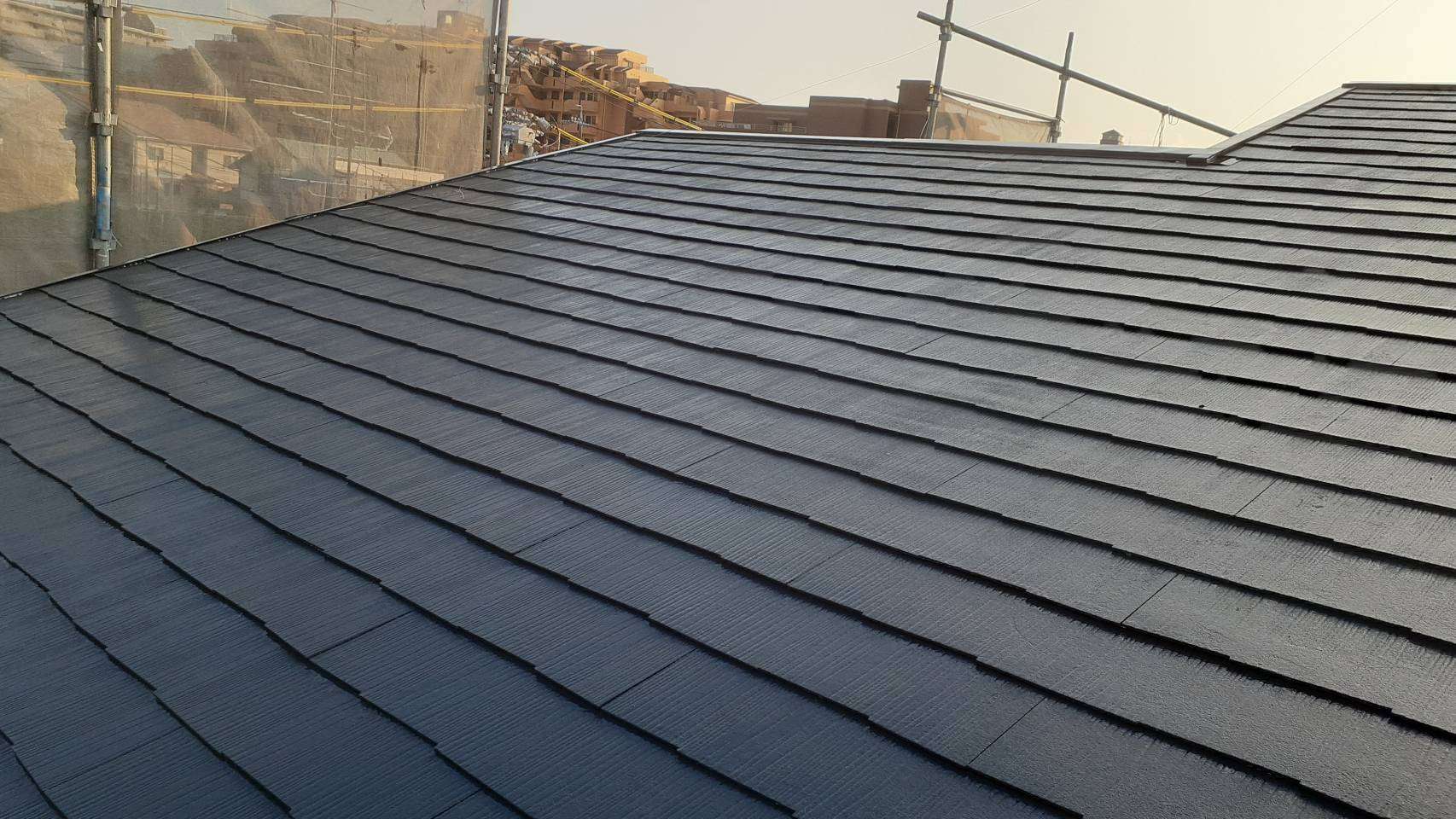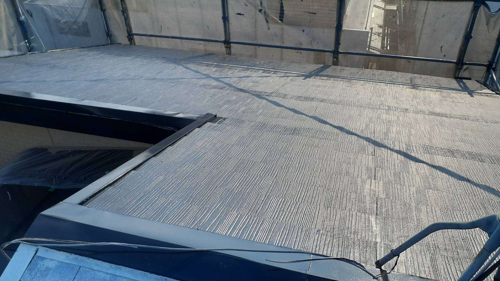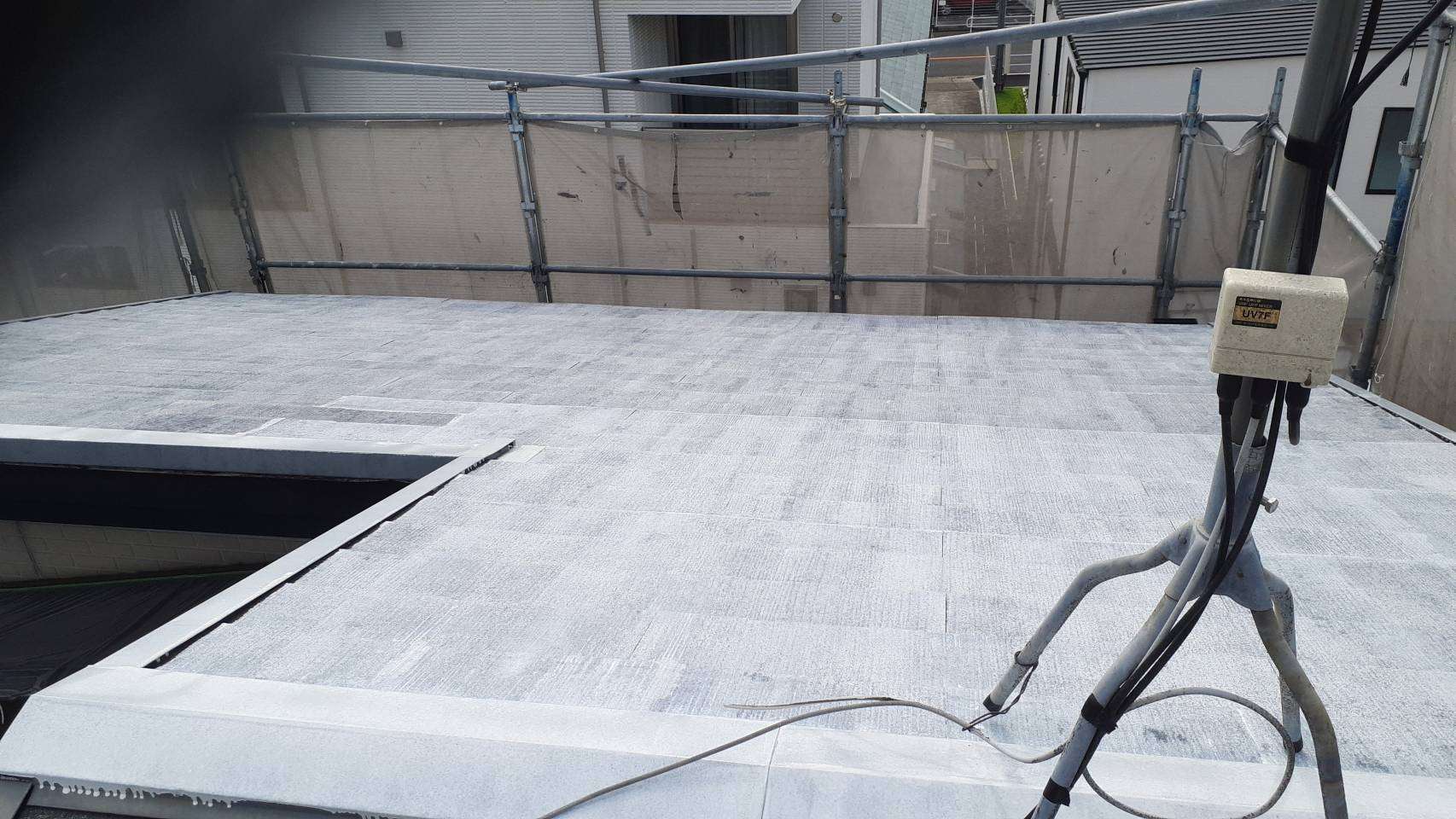 今日の作業は、屋根の上塗り塗装と付帯部塗装作業予定です!