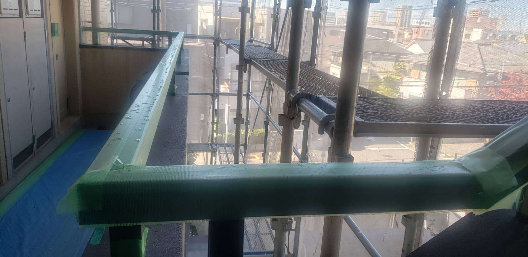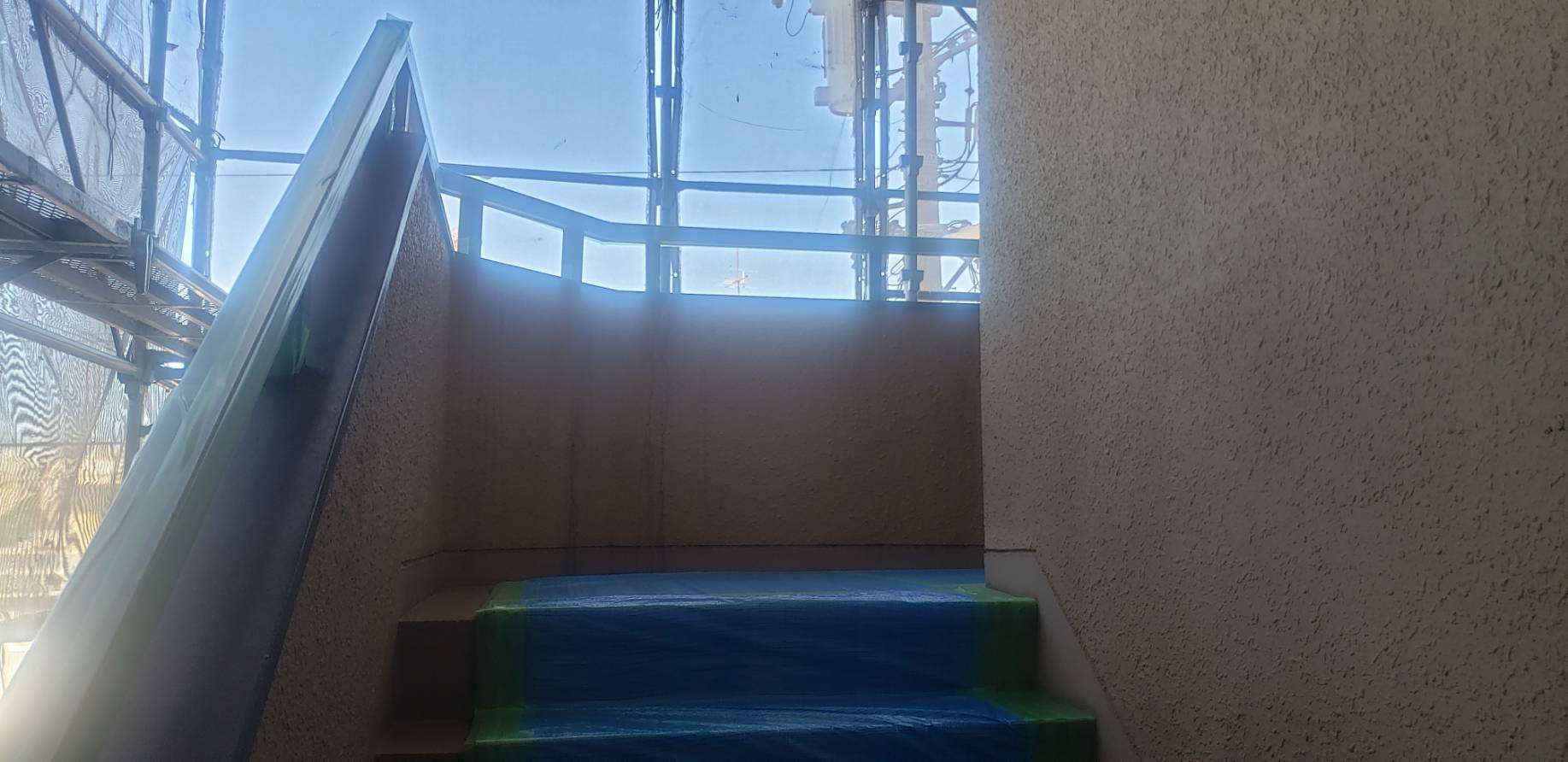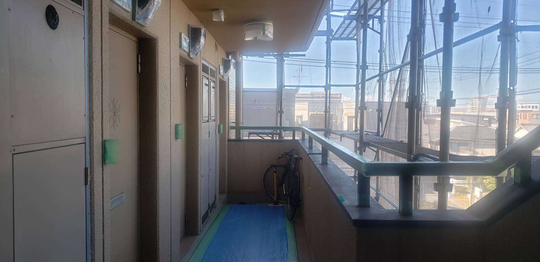 昨日までの作業で、通路側の養生作業完了しました!