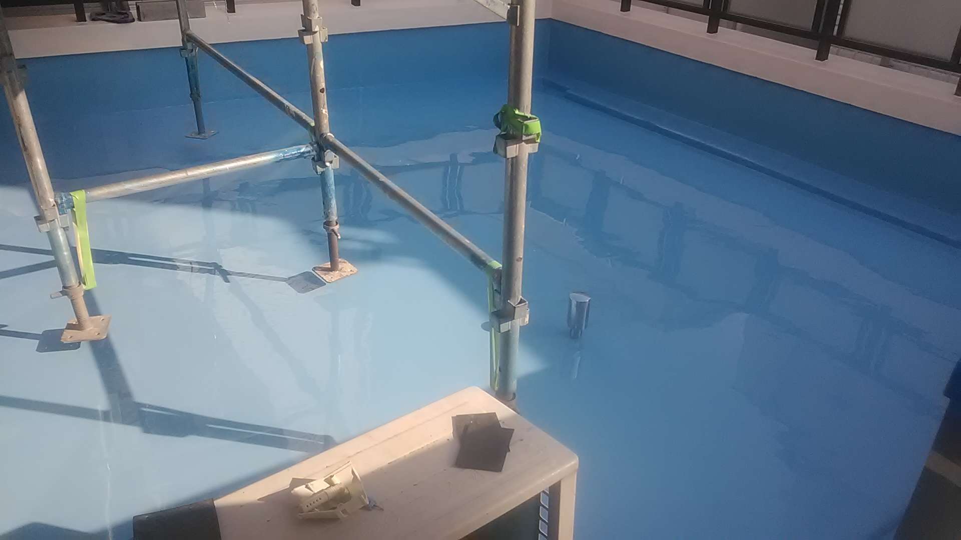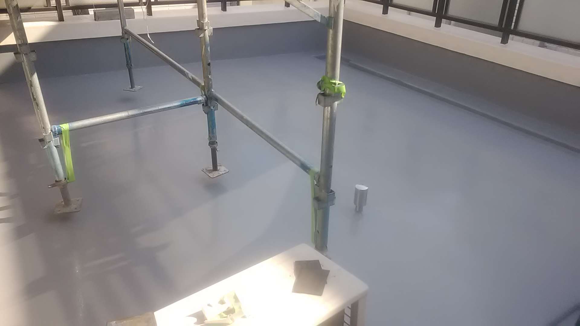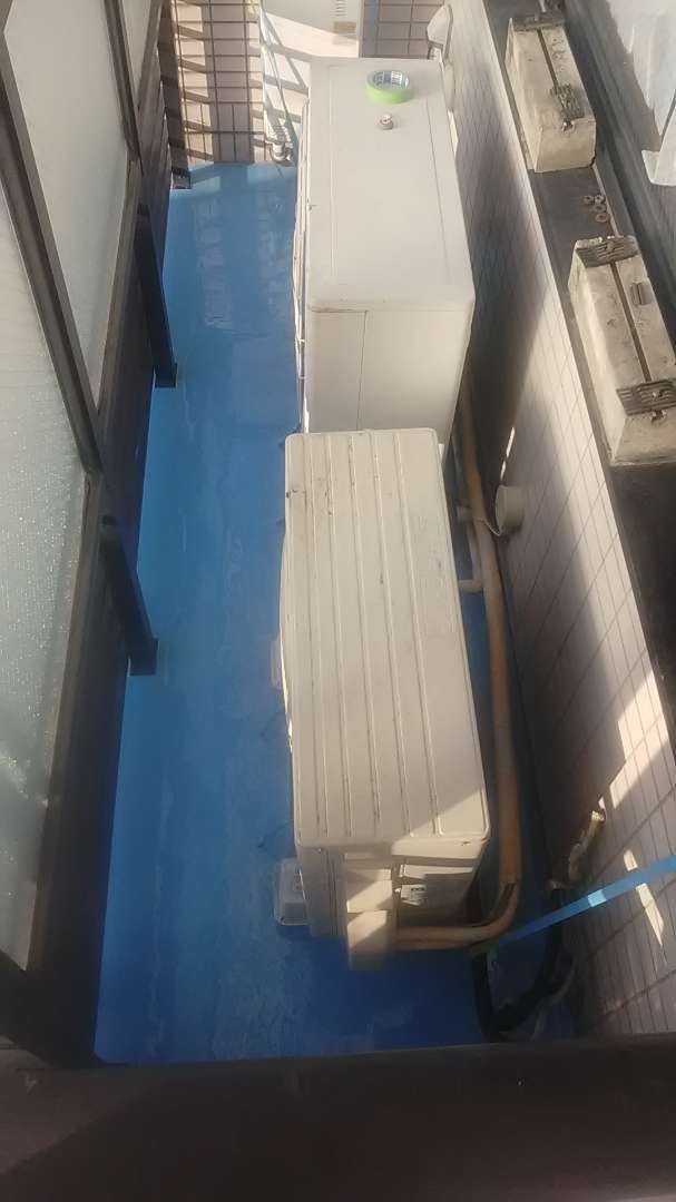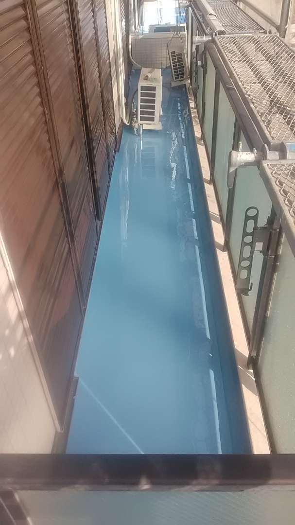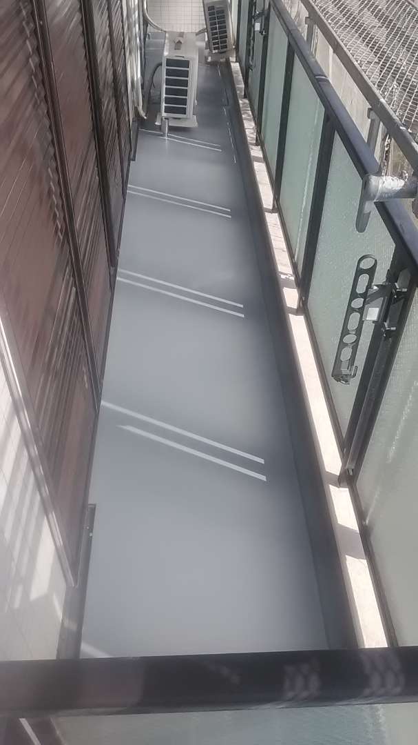 昨日までの作業で、ベランダ防水作業ウレタン樹脂二層目塗装作業とトップコート塗装作業が完了しました。