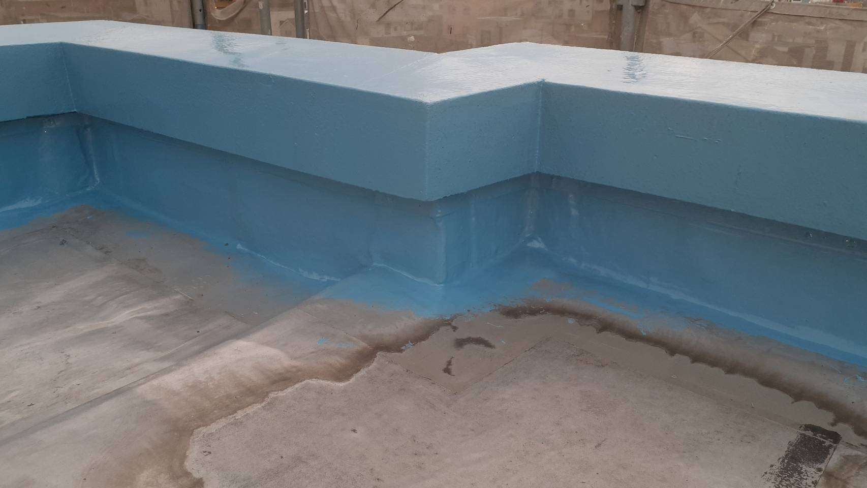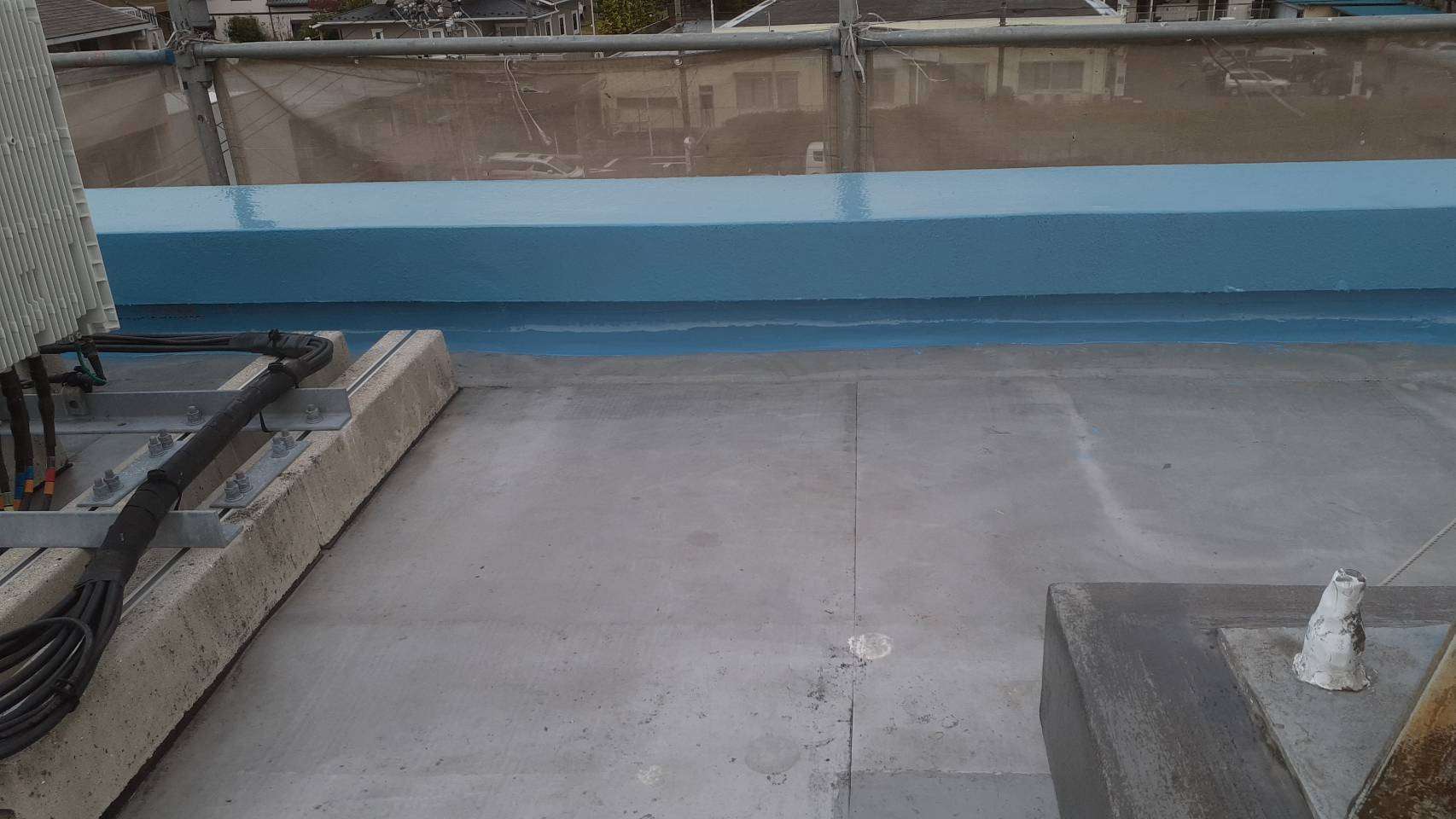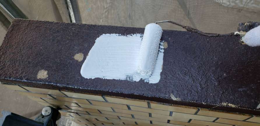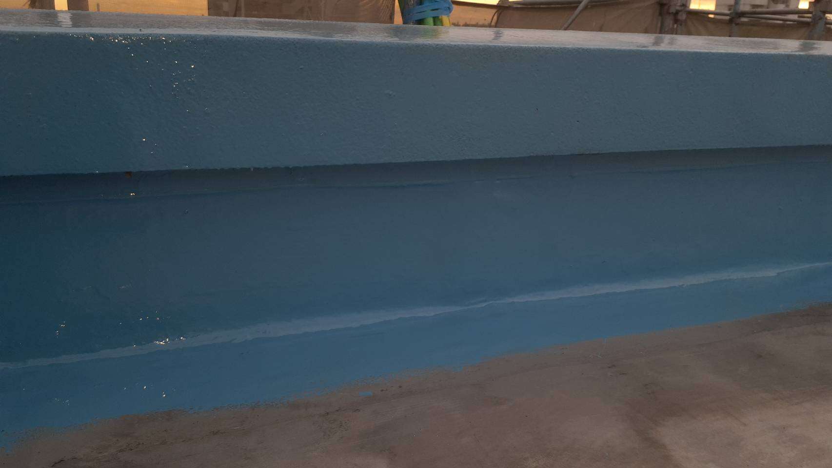昨日の作業は、屋上防水作業の立ち上がり部ウレタン一層目塗装作業と