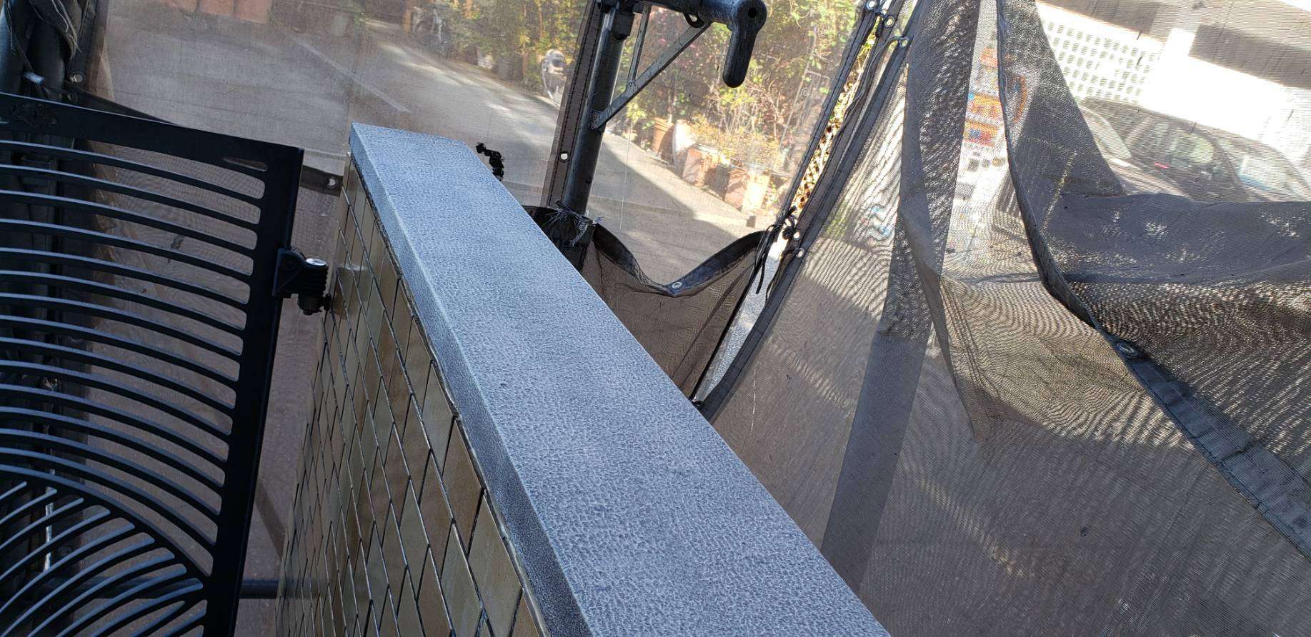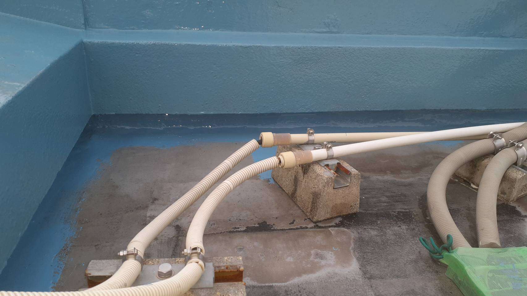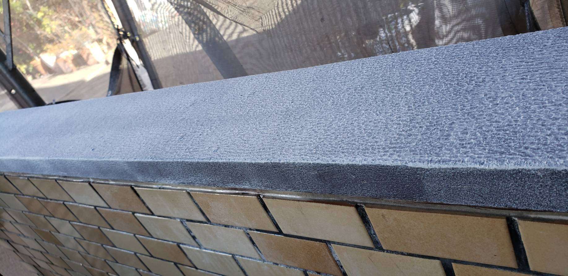昨日の作業は、屋上防水作業の立ち上がり部ウレタン一層目塗装作業と