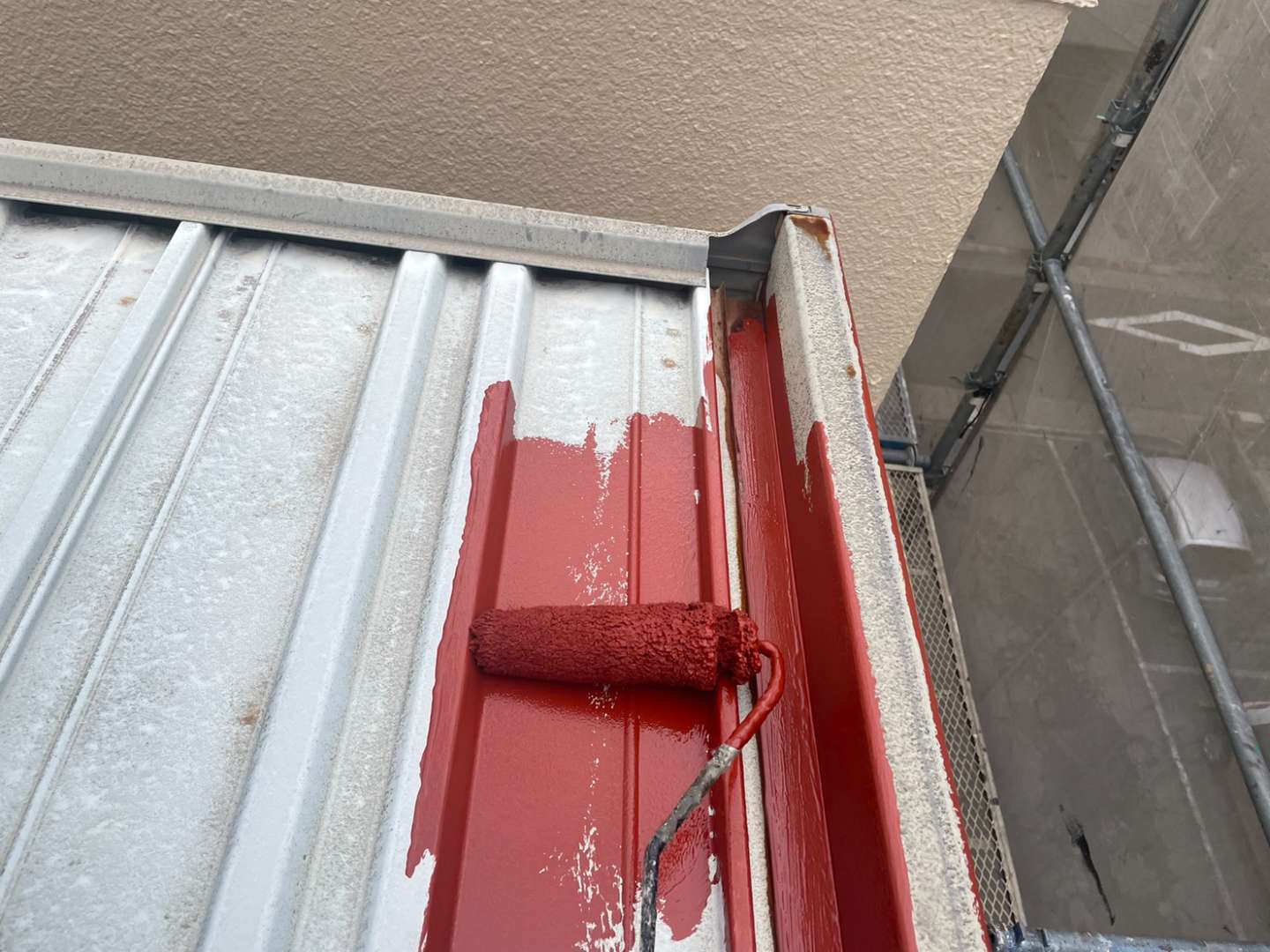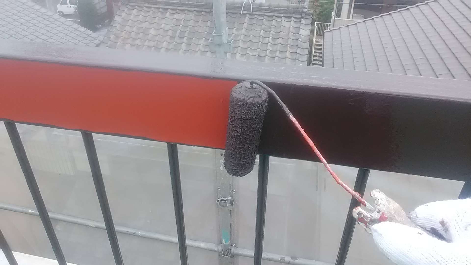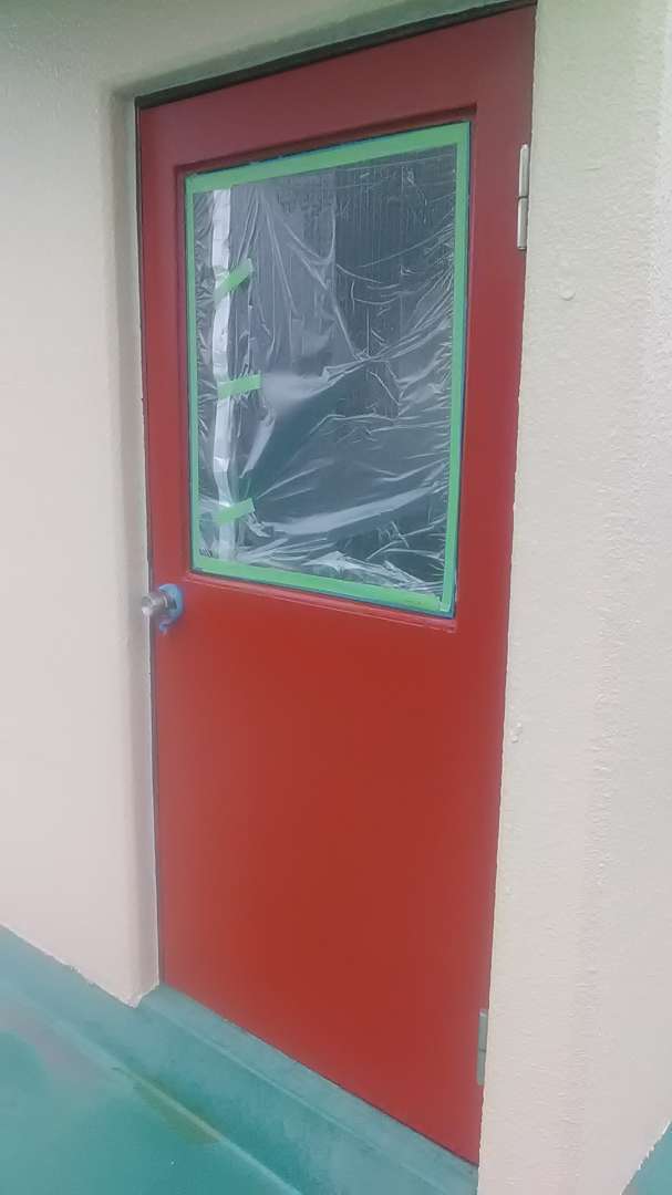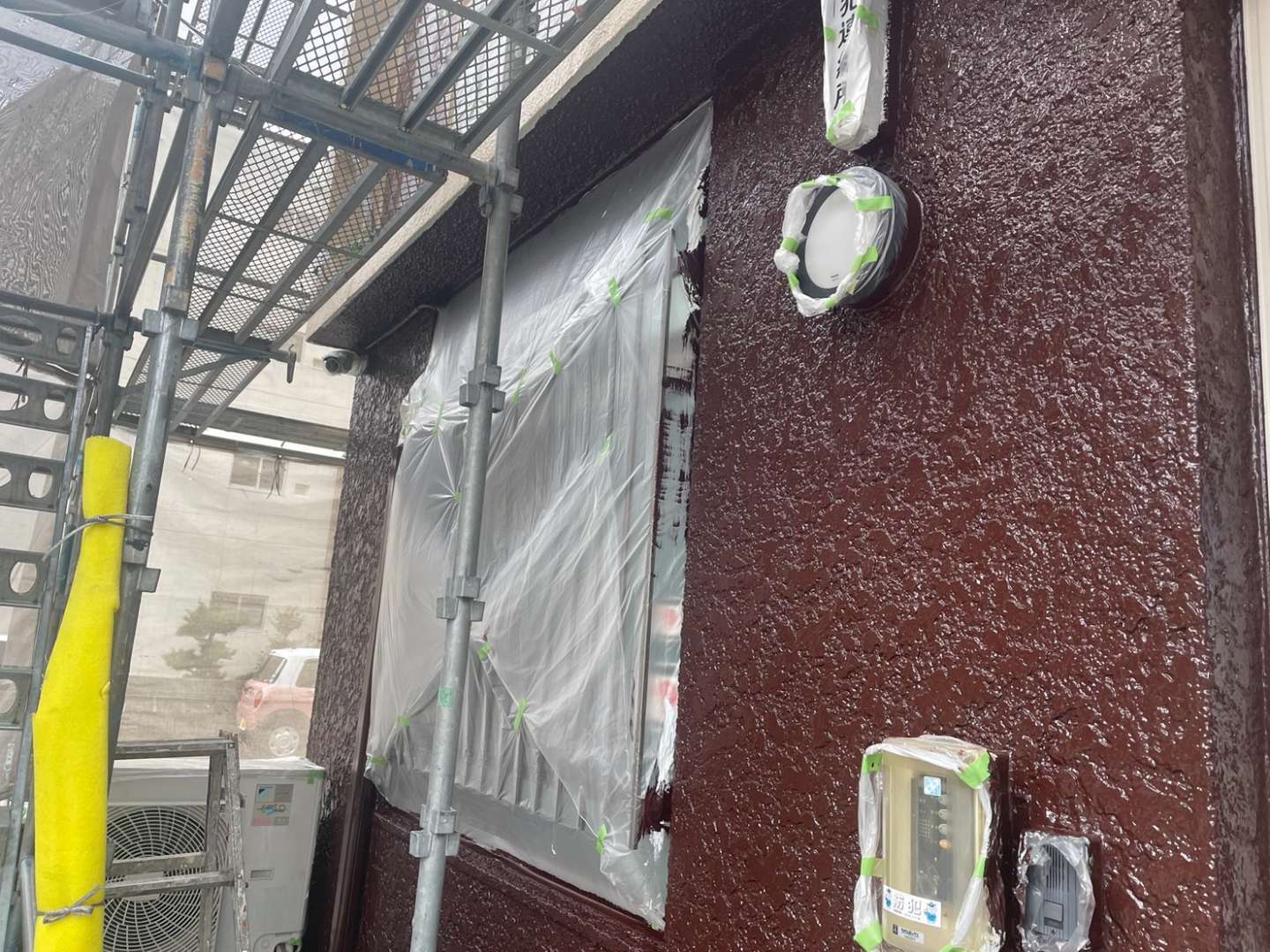 昨日の作業は、外壁正面玄関前の中塗り・上塗り塗装とタイル部クリヤー一回目塗装と屋上鉄部の錆止め、上塗り塗装と屋上防水のプライマー塗装作業でした。