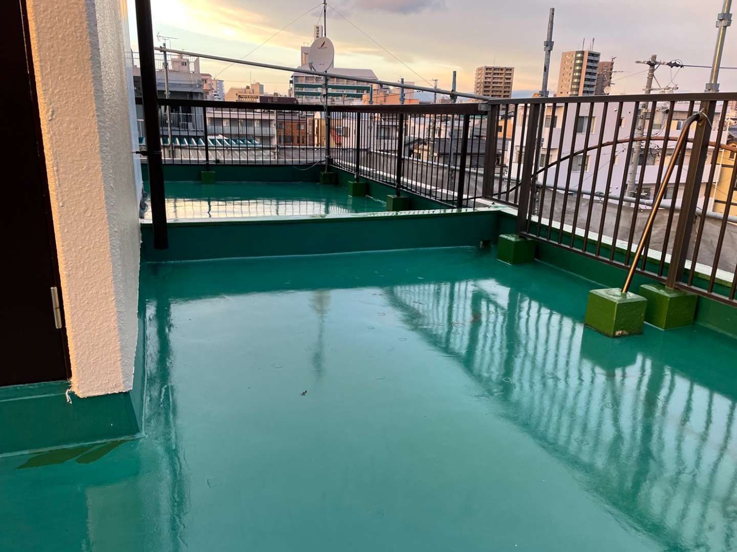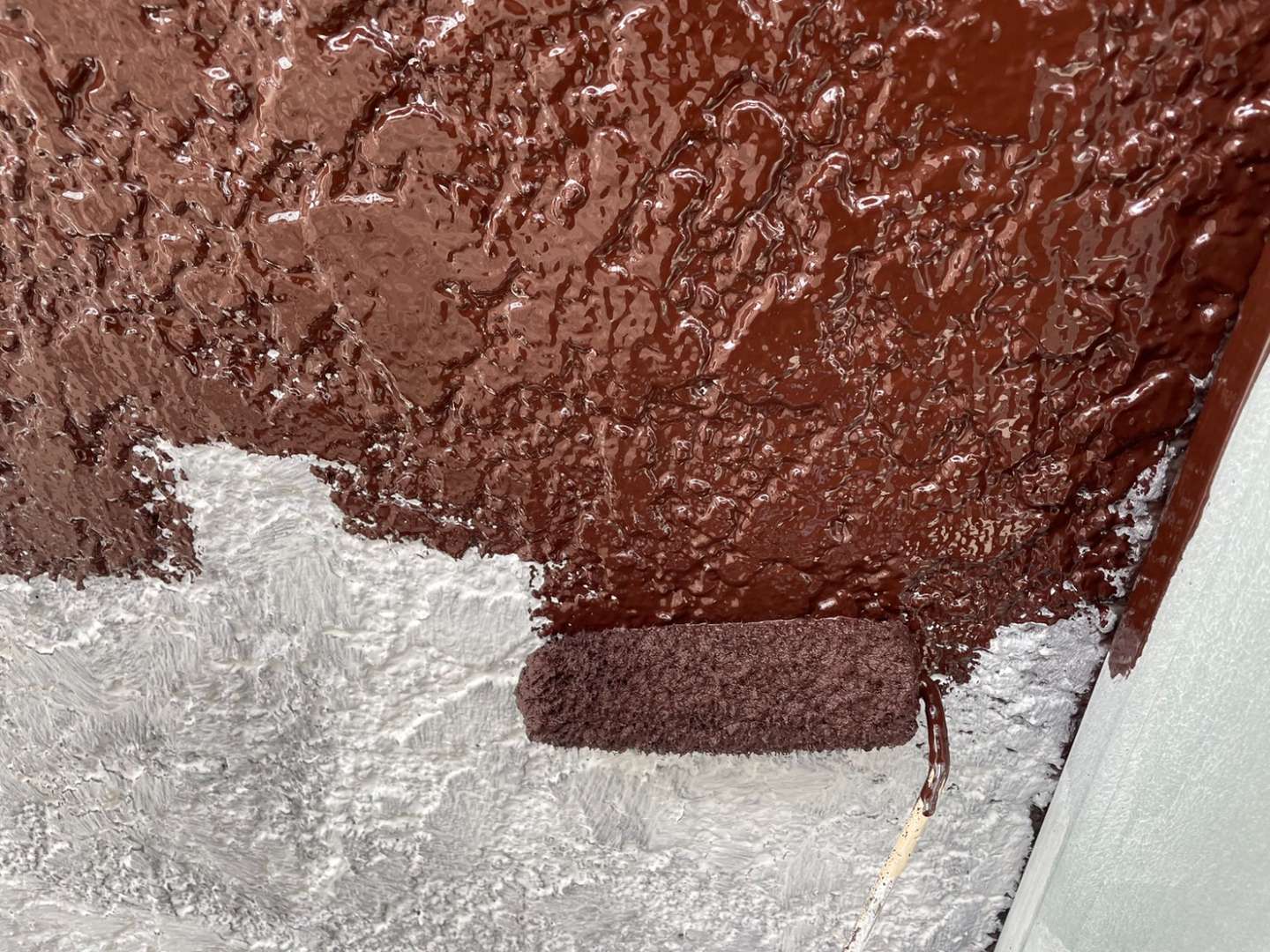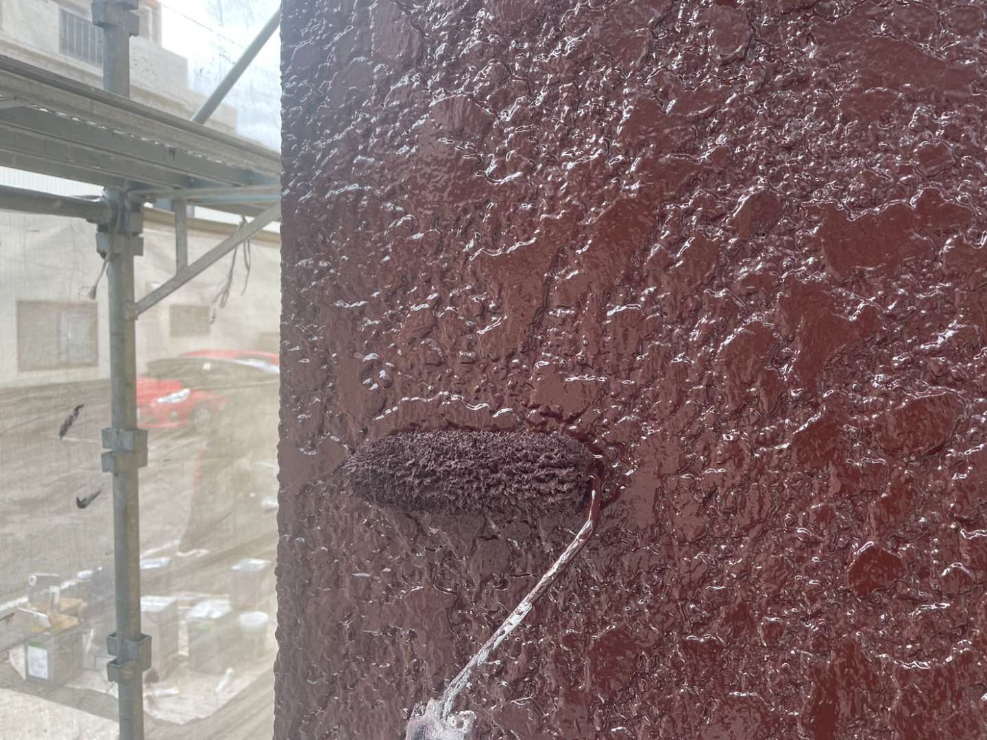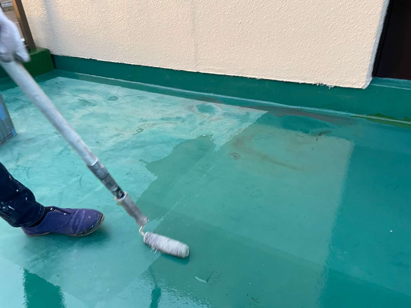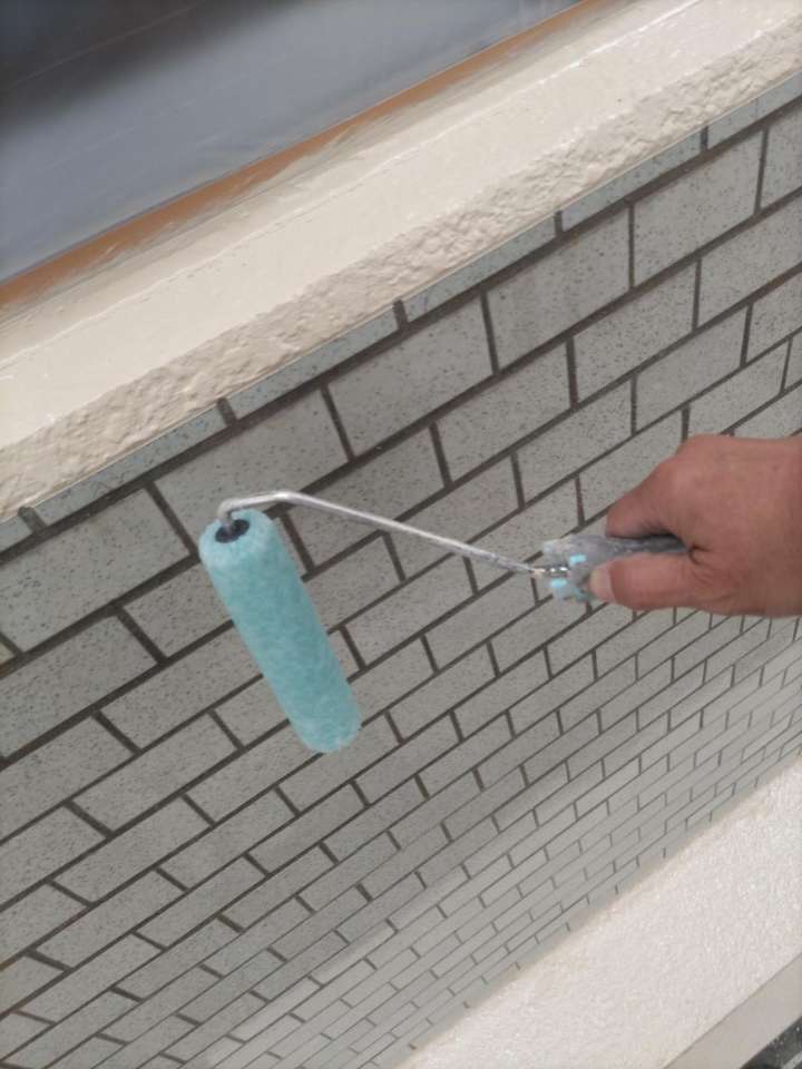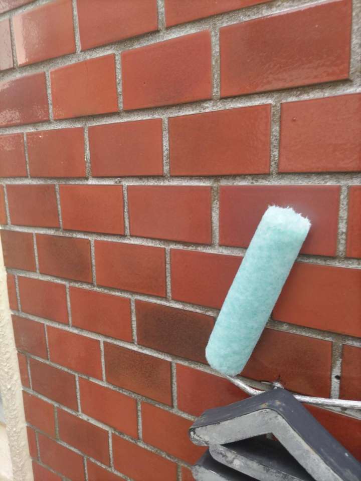 今日の作業は、タイル部クリヤー二回目塗装作業と屋上防水作業予定です!