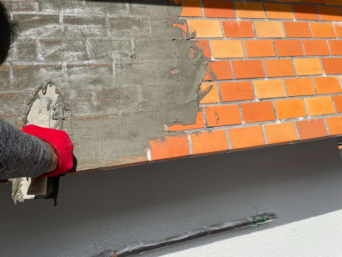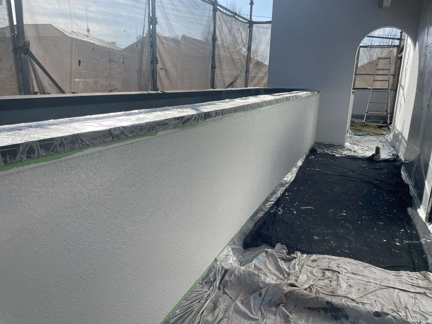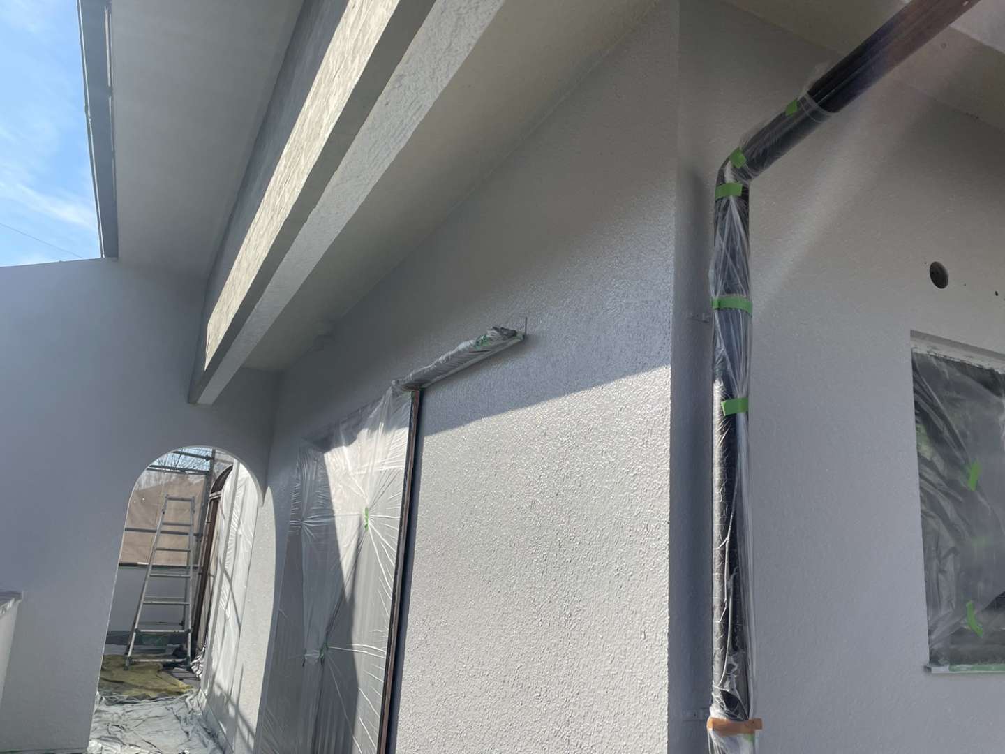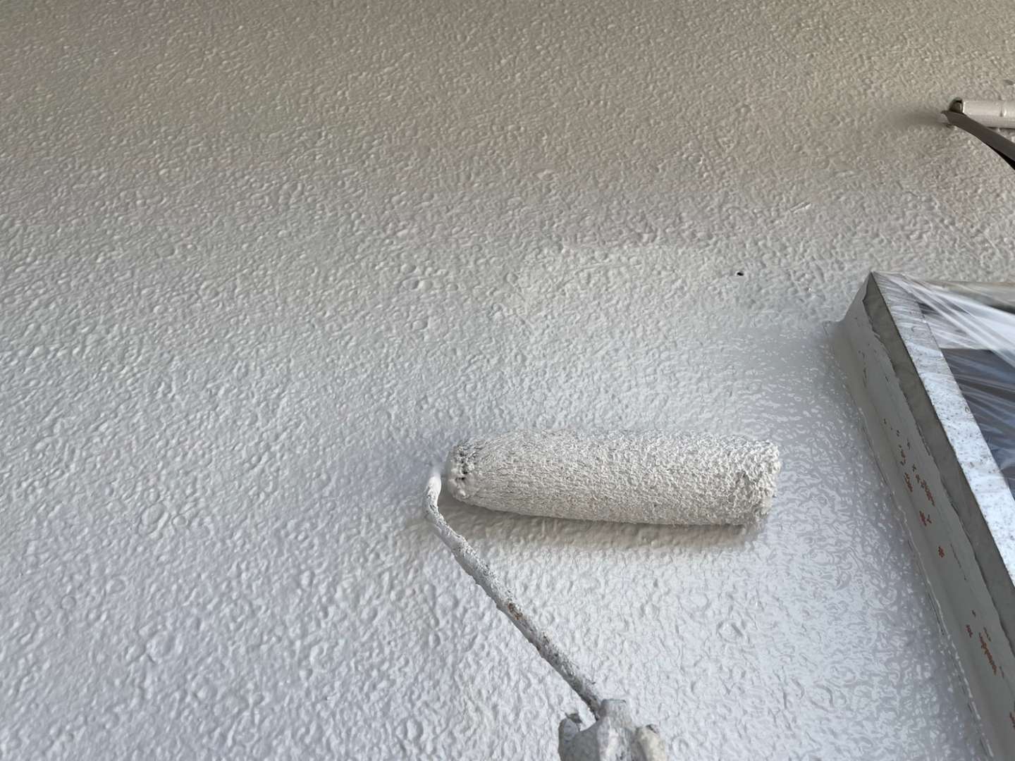 昨日の作業内容は、タイル部補修作業が完了したので、左官工事と外壁の上塗り塗装作業と室内の塗装作業を行いました!