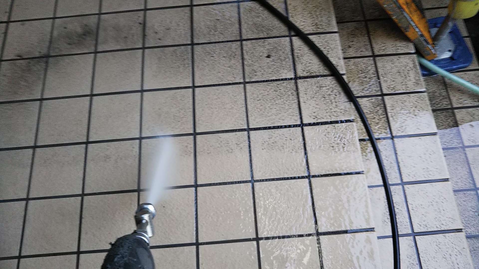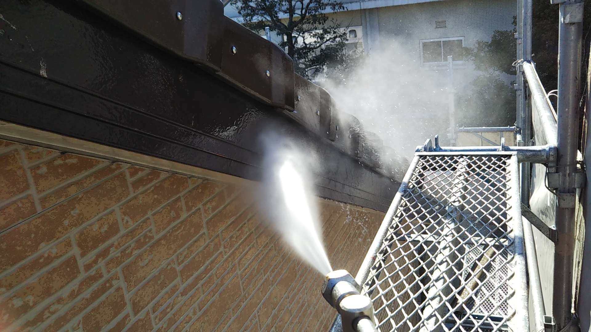 昨日までの作業で、足場組立・洗浄作業・養生作業まで完了しています!