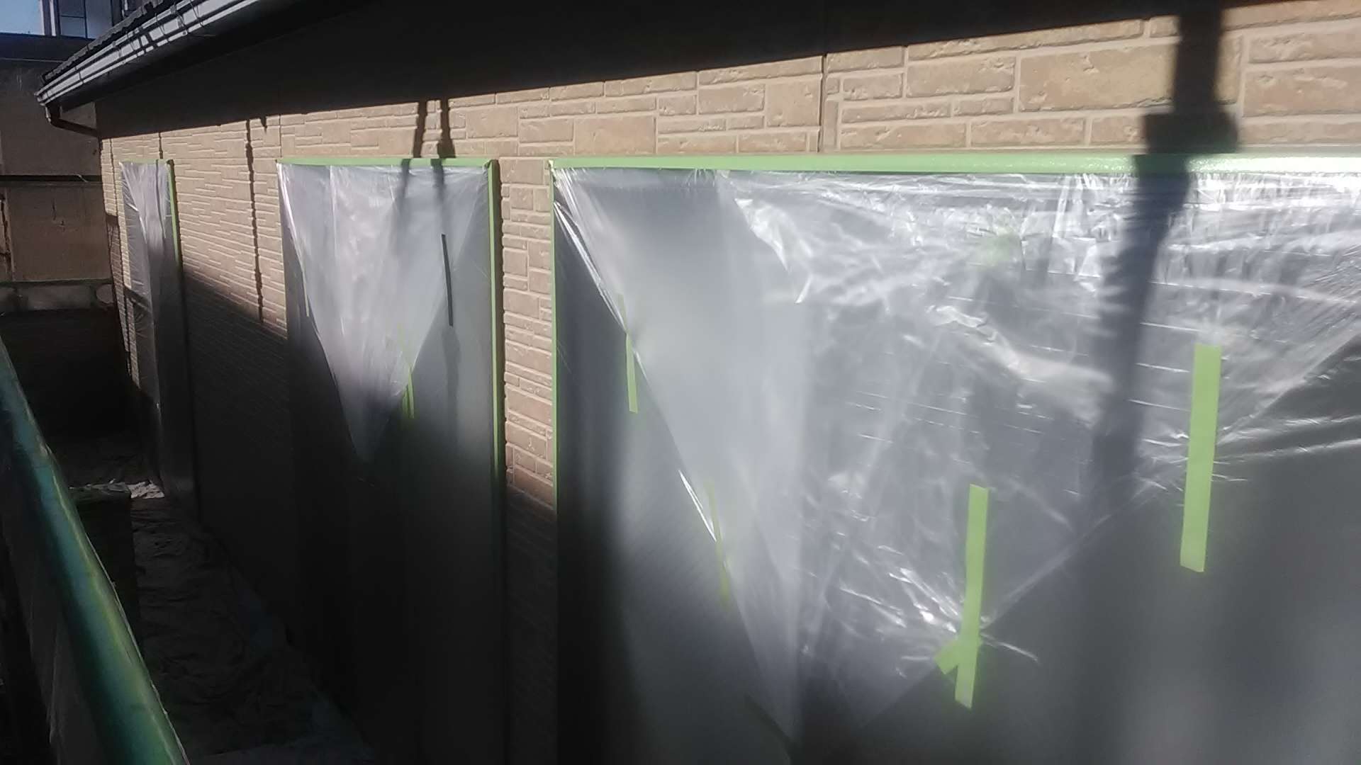 名古屋市名東区 K様邸 外壁塗り替え工事 洗浄作業が終わり、今日は養生作業です! 洗浄作...