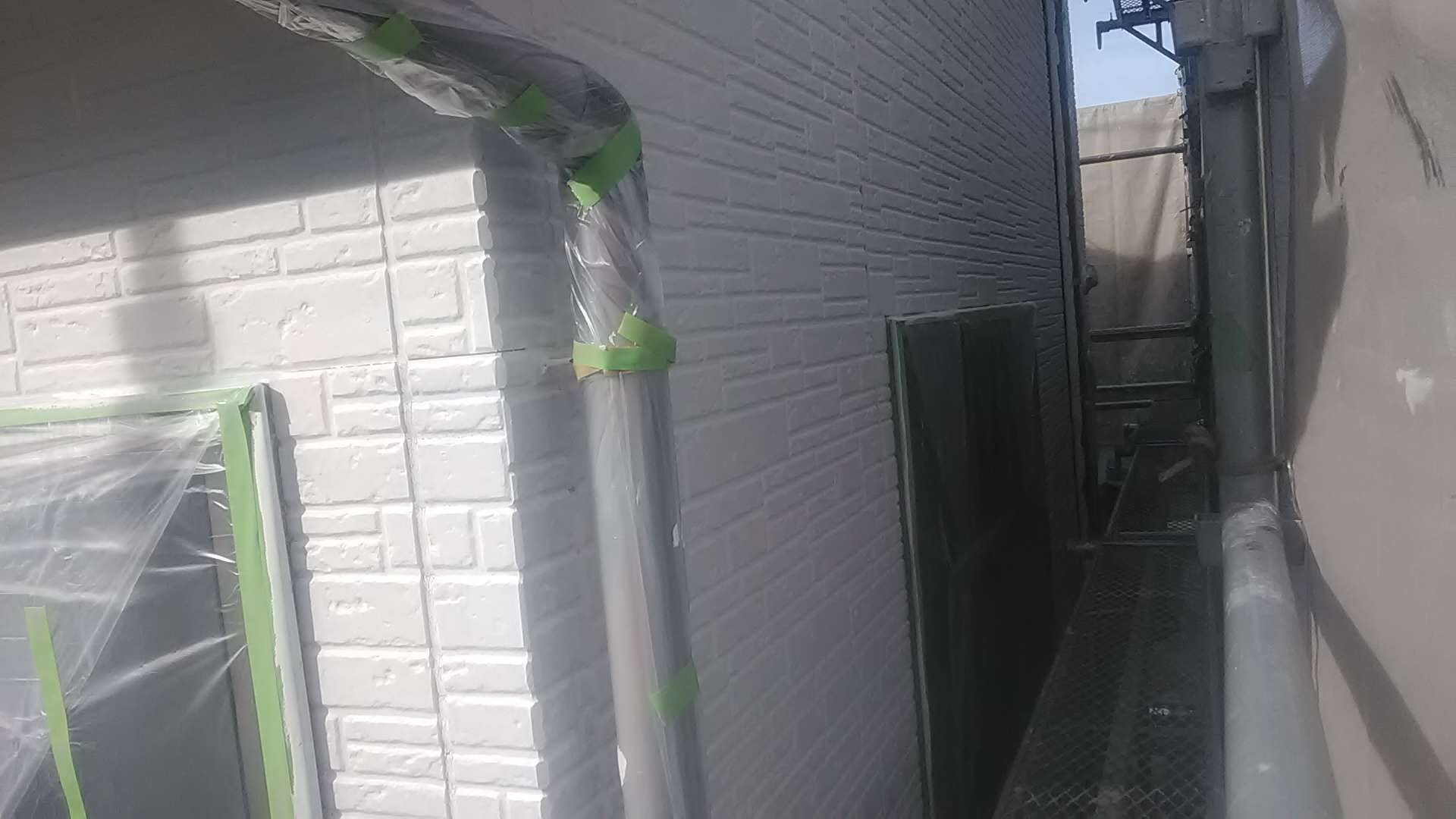 名古屋市名東区 K様邸 外壁塗り替え工事 洗浄作業が終わり、今日は養生作業です! 洗浄作...