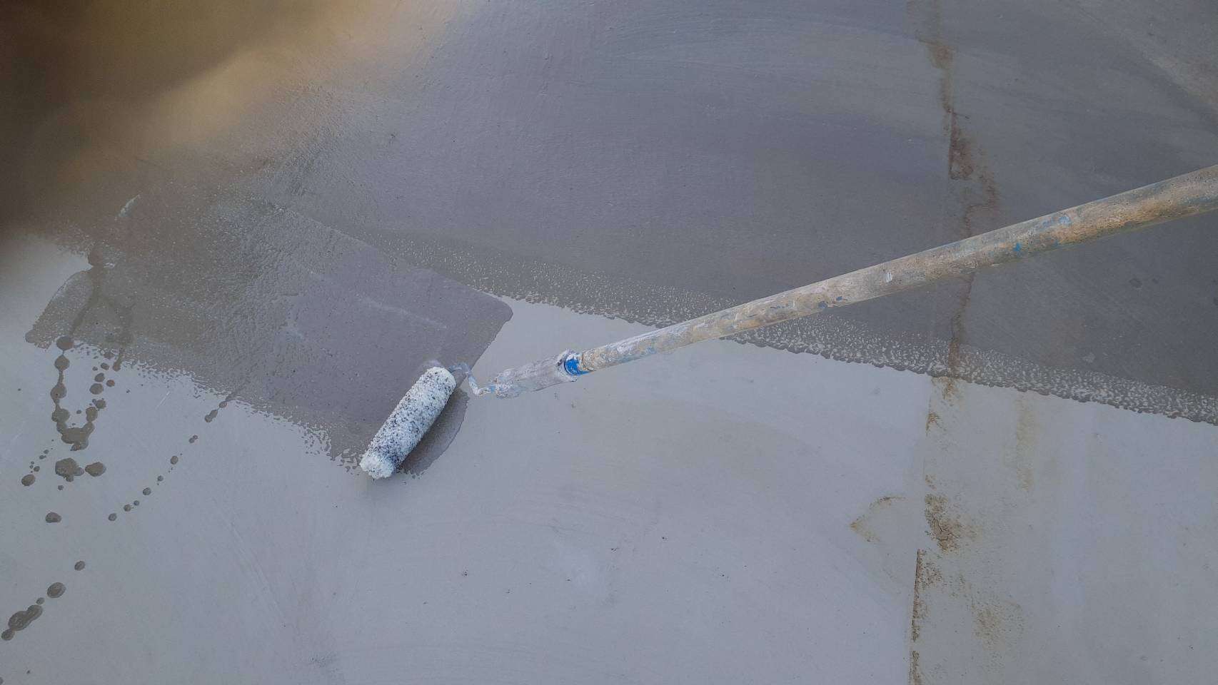 立ち上がり部ウレタン樹脂一層目塗装作業