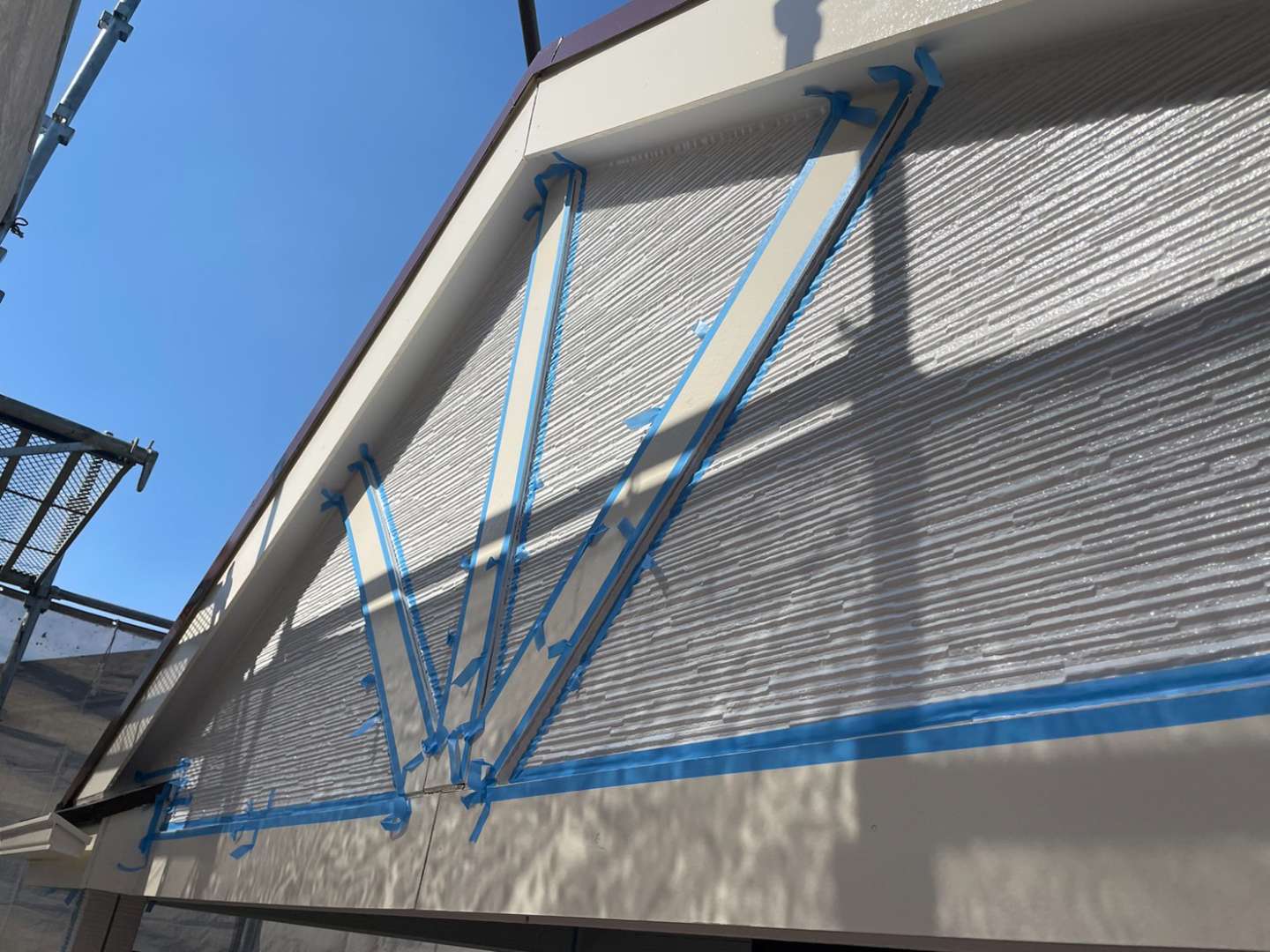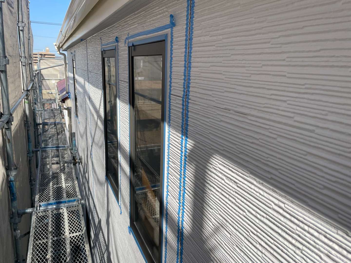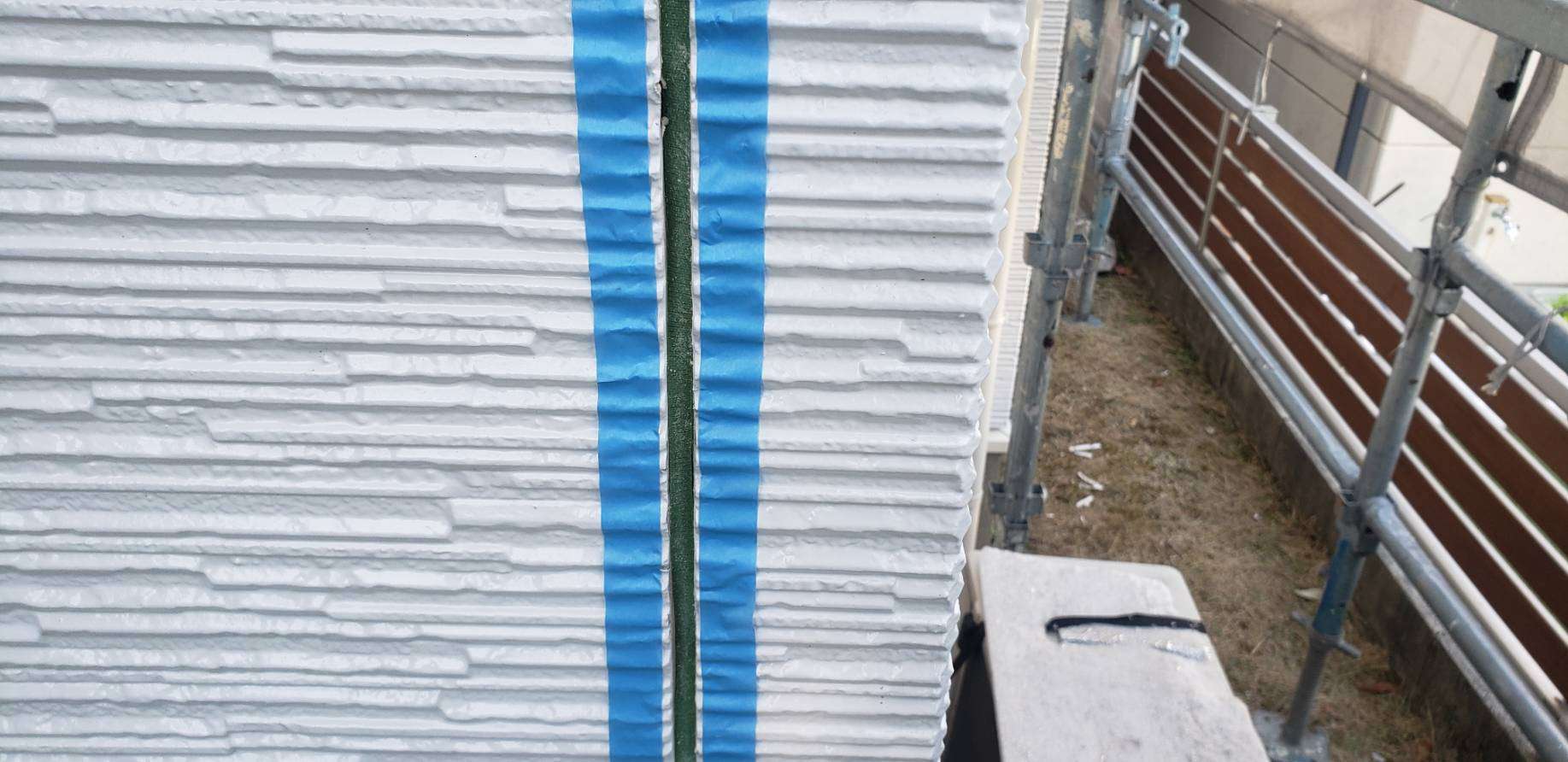 昨日の作業は、コーキング打替えのカット作業とテープ貼り作業でした。