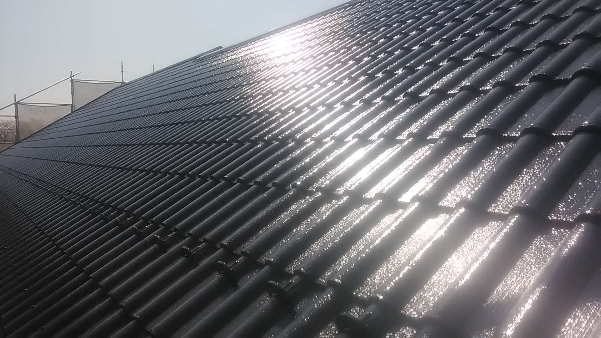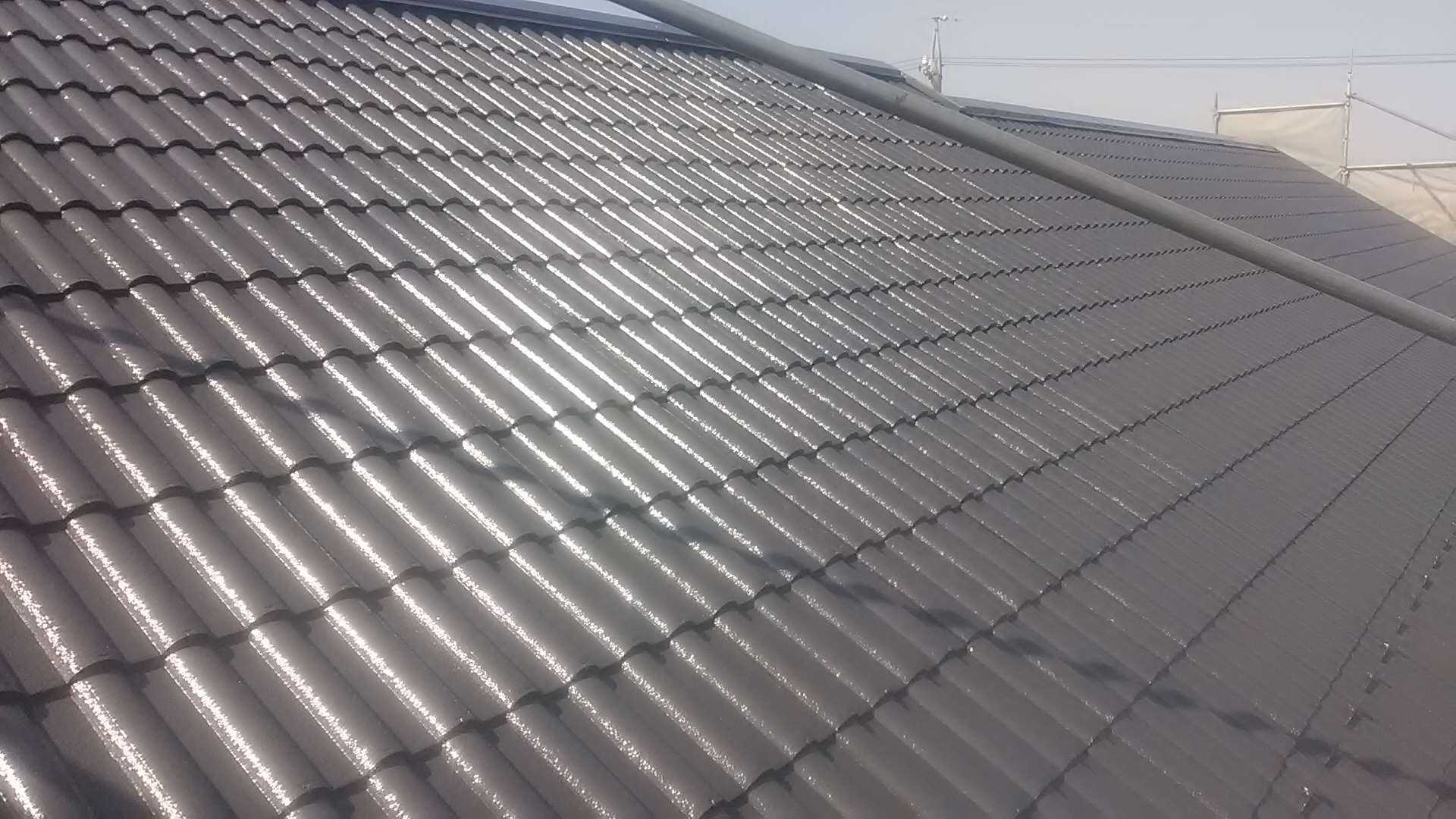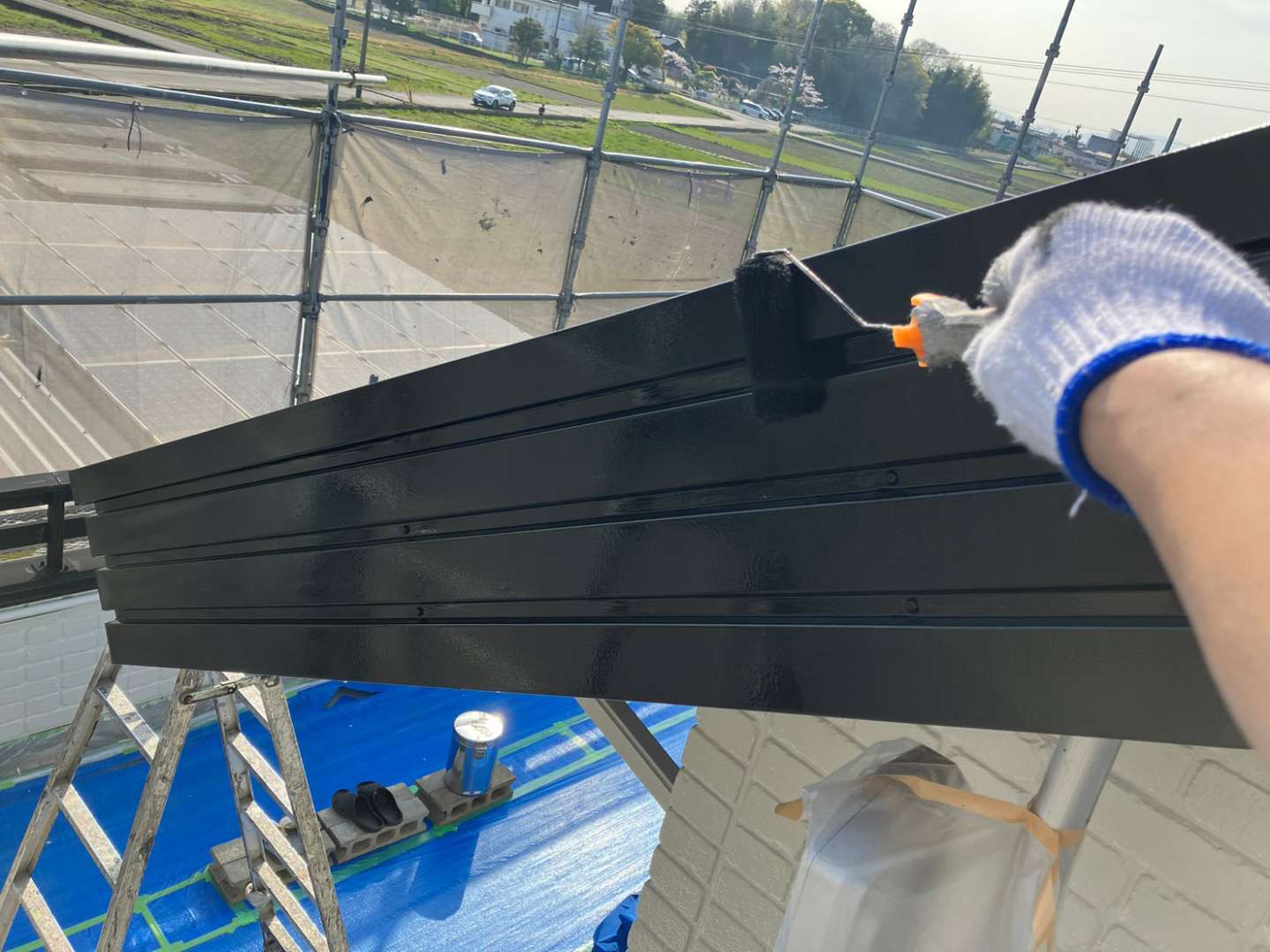 昨日の作業は、屋根の上塗り塗装と付帯部一回目・二回目塗装作業でした。