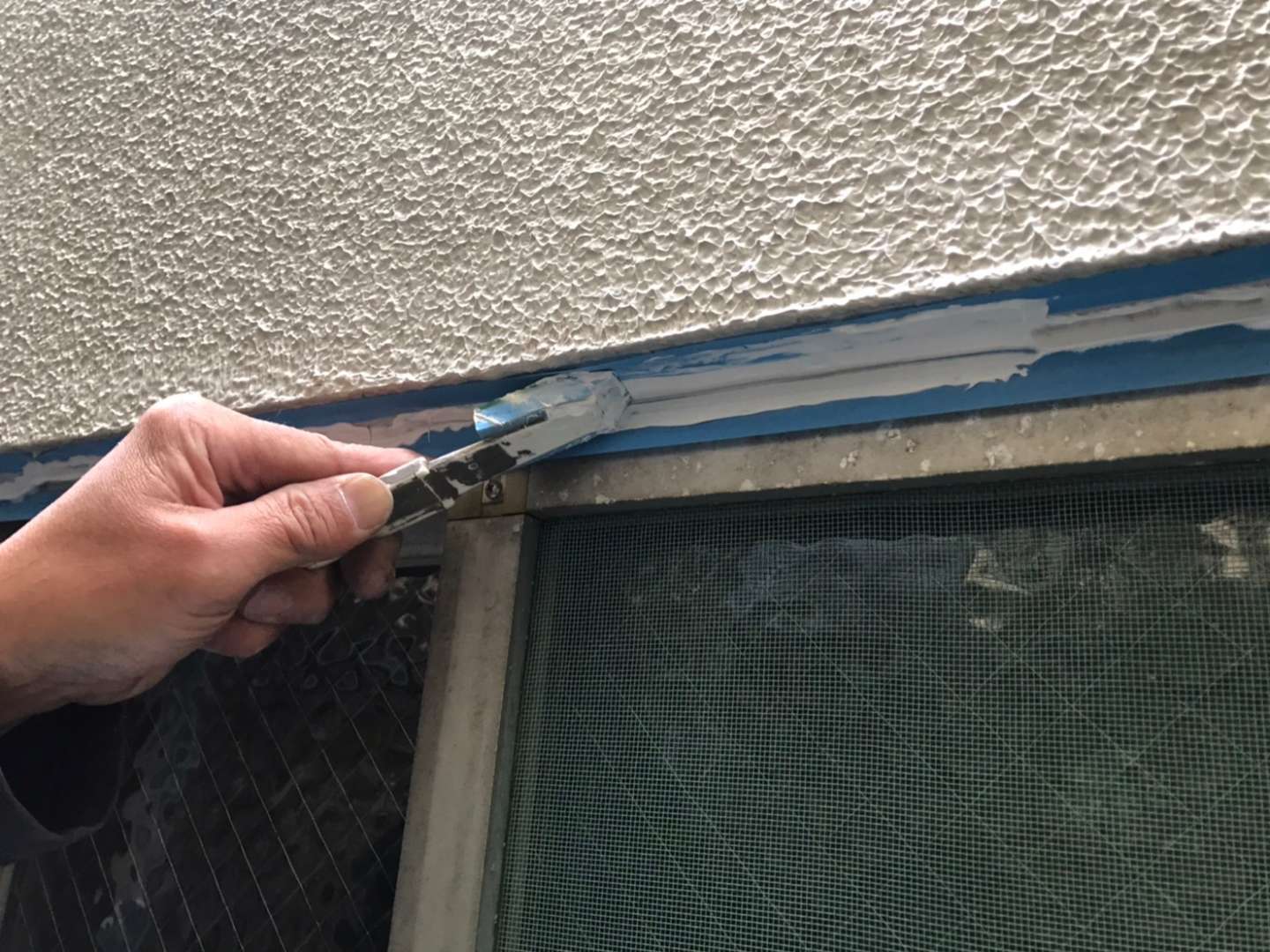 昨日の作業は、窓廻りのコーキング補修作業でした!