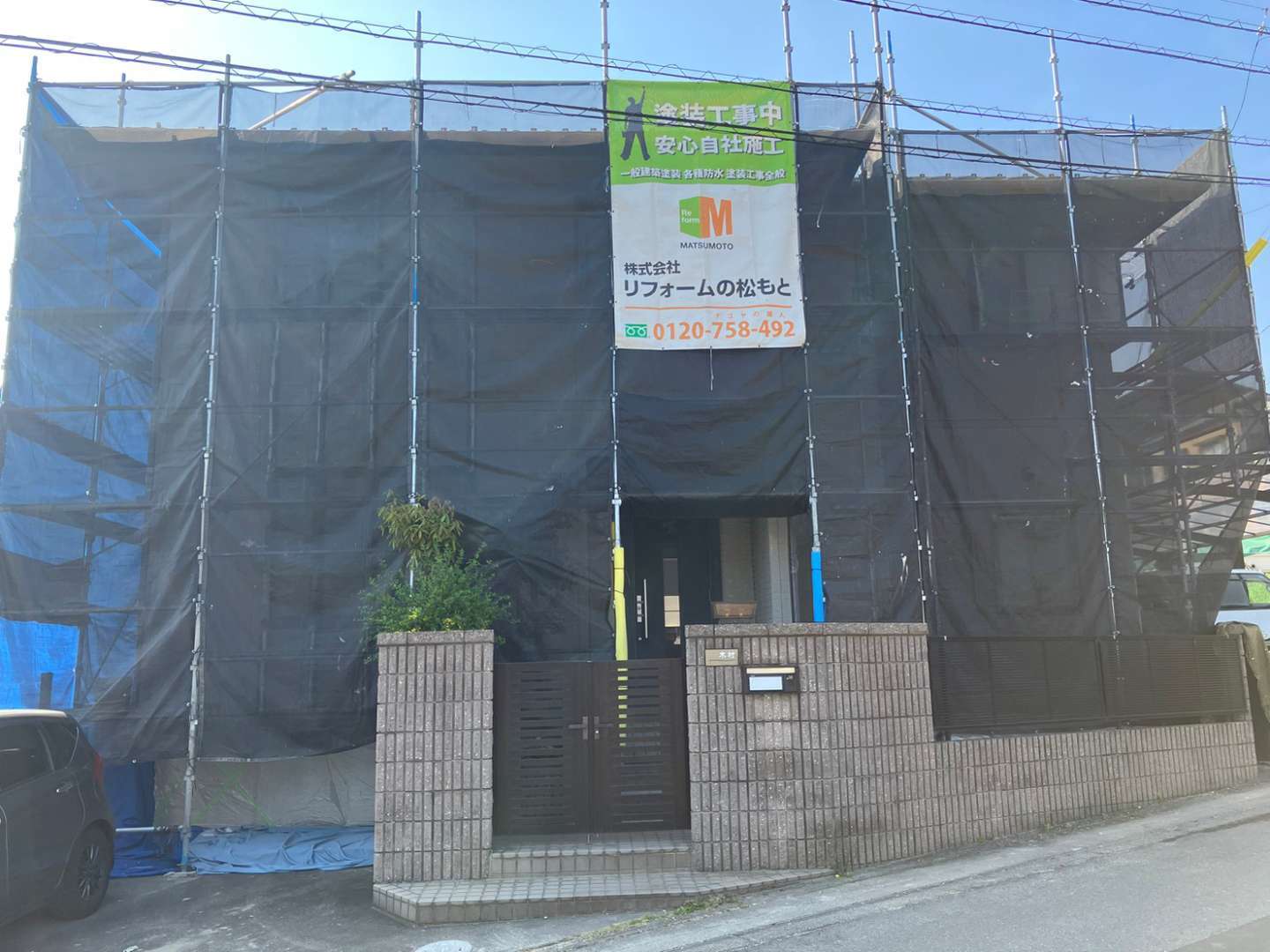 名古屋市名東区 K様邸 外壁塗り替え工事 洗浄作業が終わり、今日は養生作業です! 洗浄作...