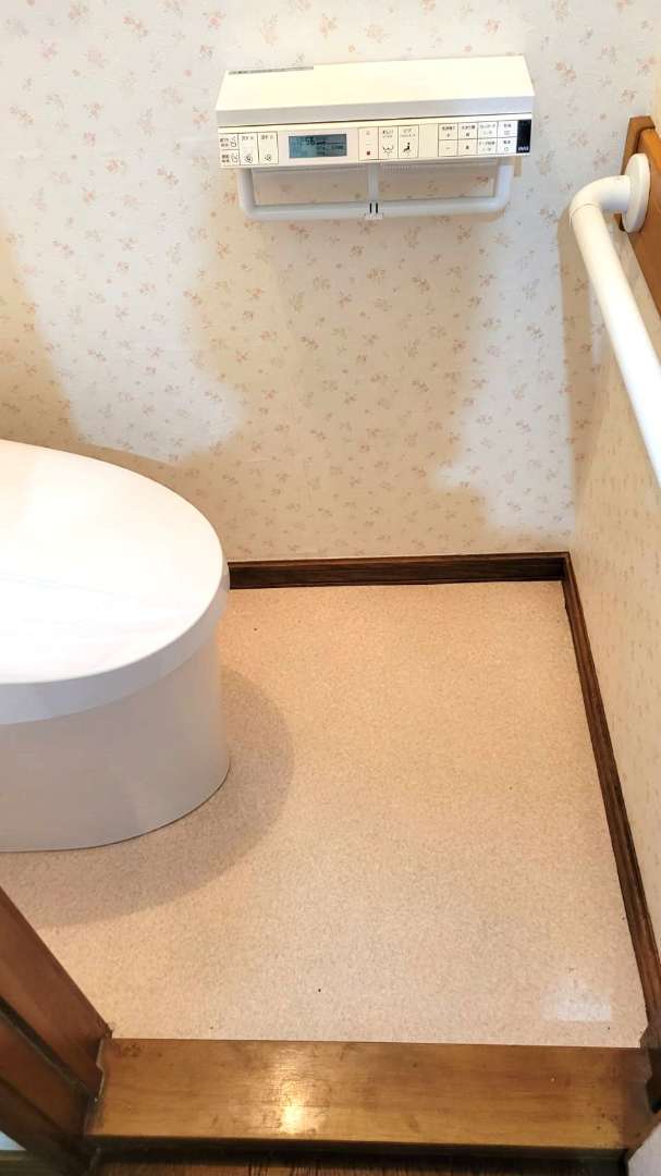 トイレ内のクロス張替え・床クッションフロアの張替え作業も行いました。