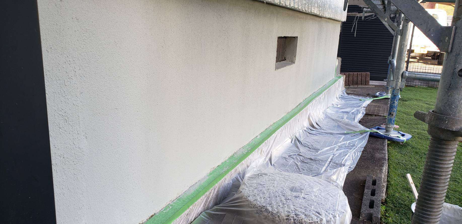 名古屋市名東区 K様邸 外壁塗り替え工事 洗浄作業が終わり、今日は養生作業です! 洗浄作...