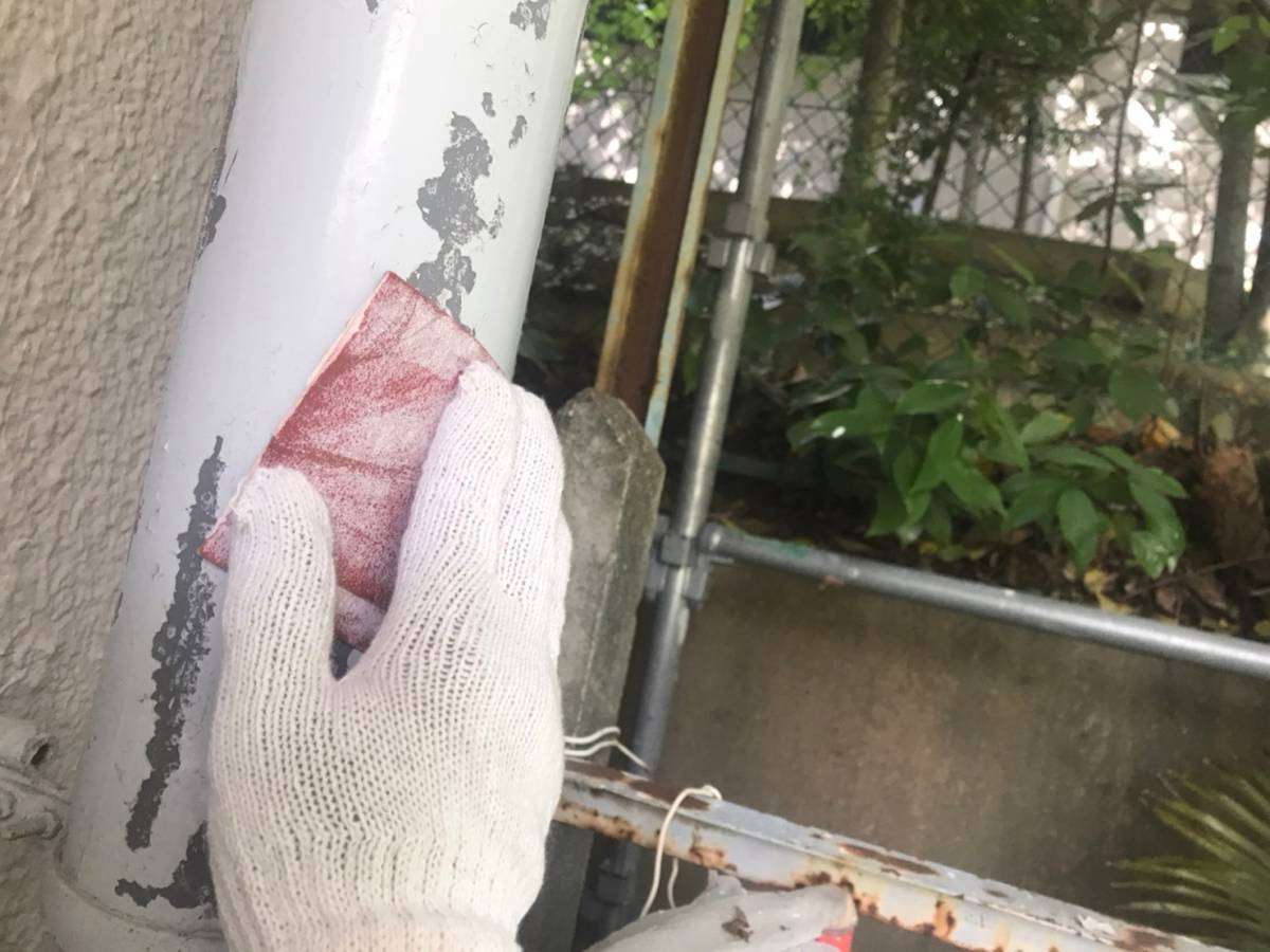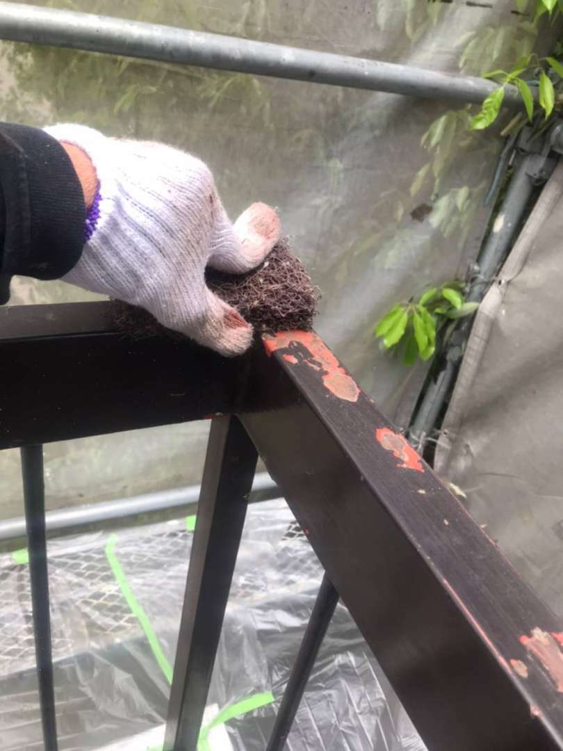 昨日までの作業内容は、手すりの塗装作業と付帯部ケレン・塗装作業でした!