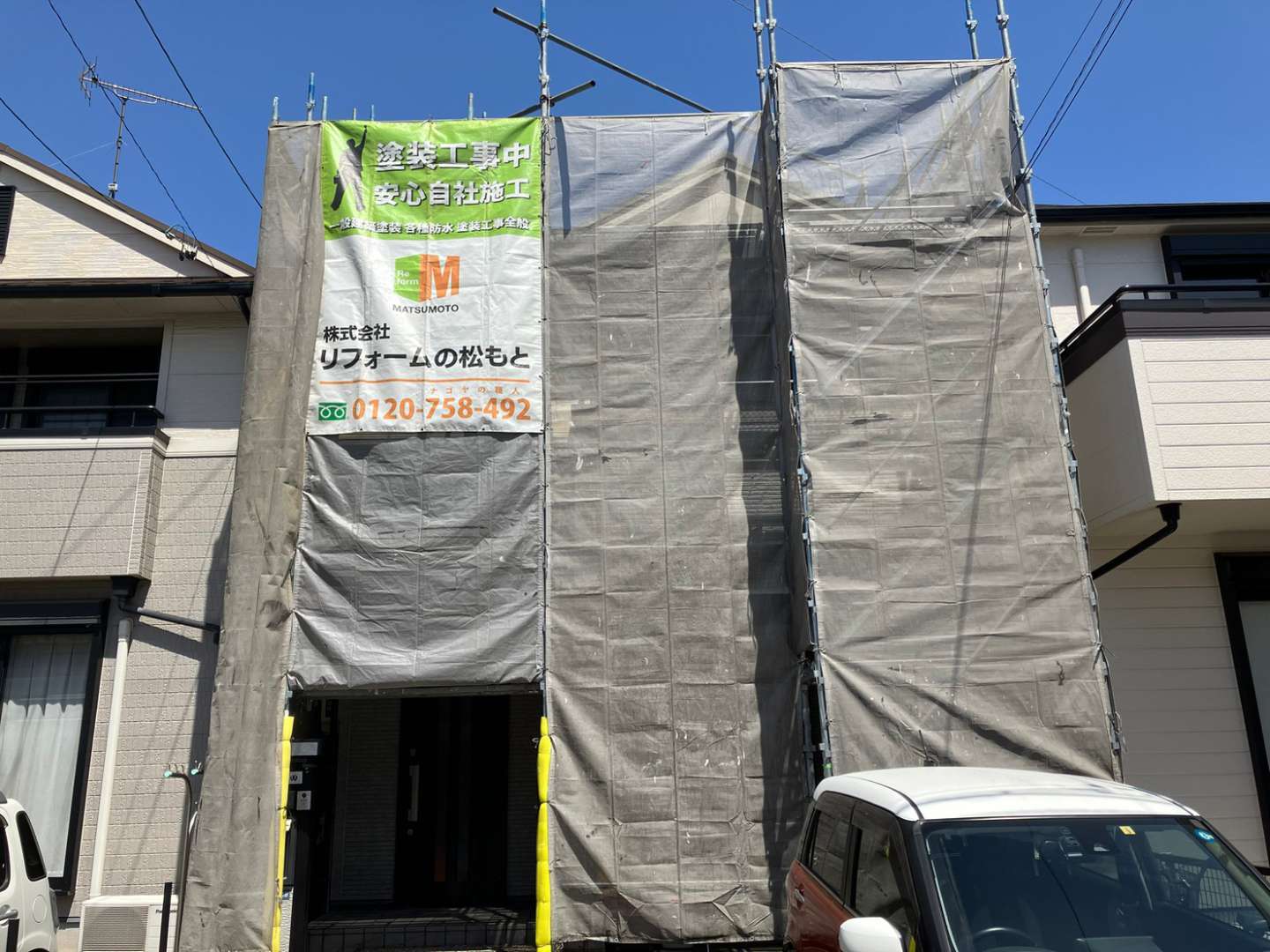 名古屋市名東区 K様邸 外壁塗り替え工事 洗浄作業が終わり、今日は養生作業です! 洗浄作...