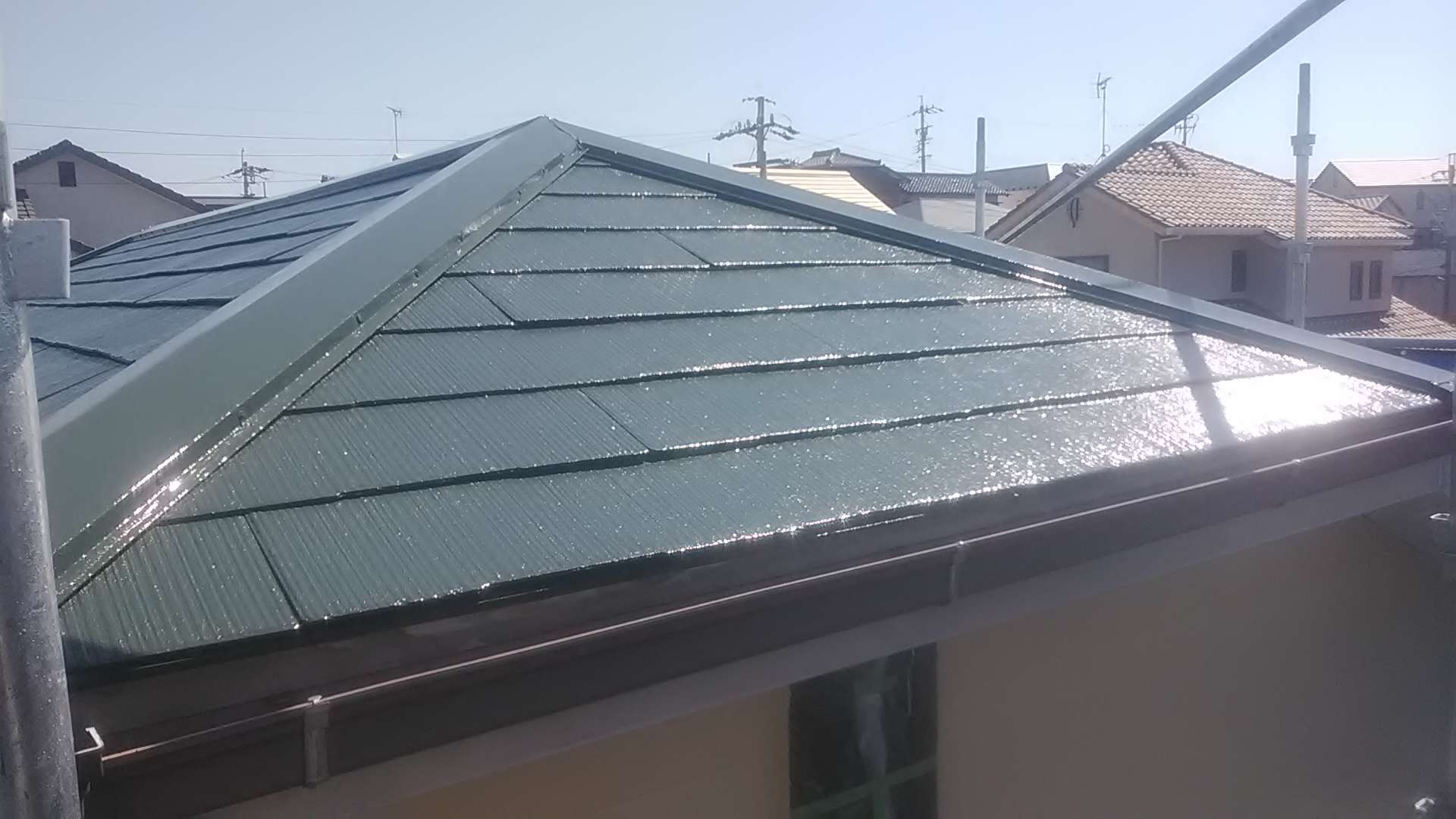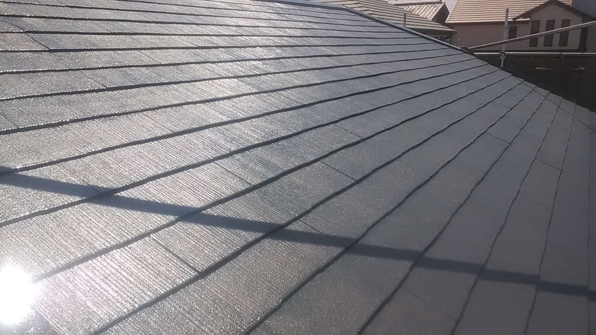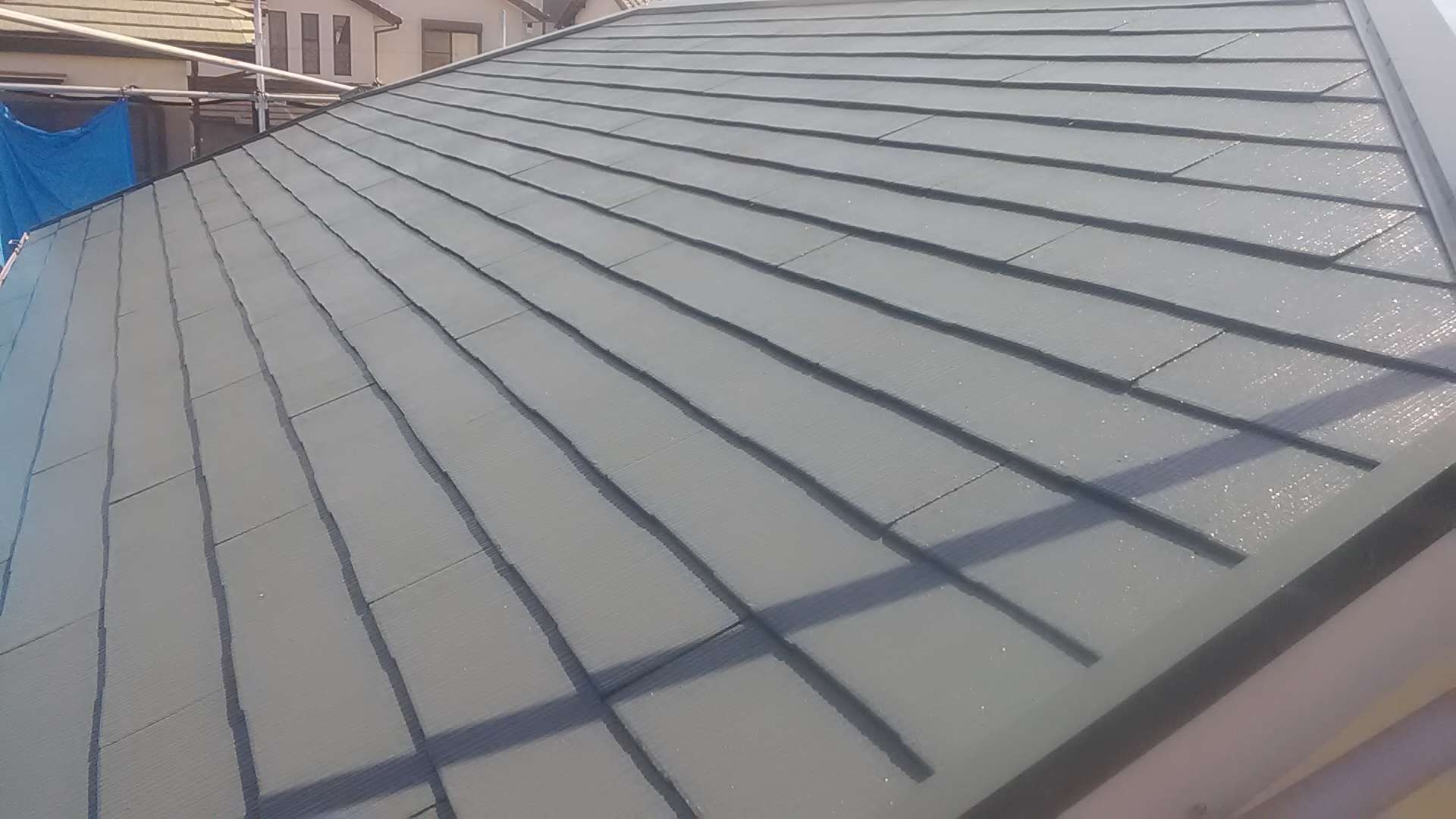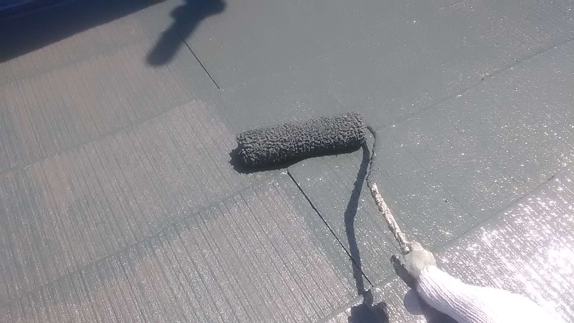 昨日の作業は、屋根上塗り塗装と外壁の上塗り塗装作業でした。