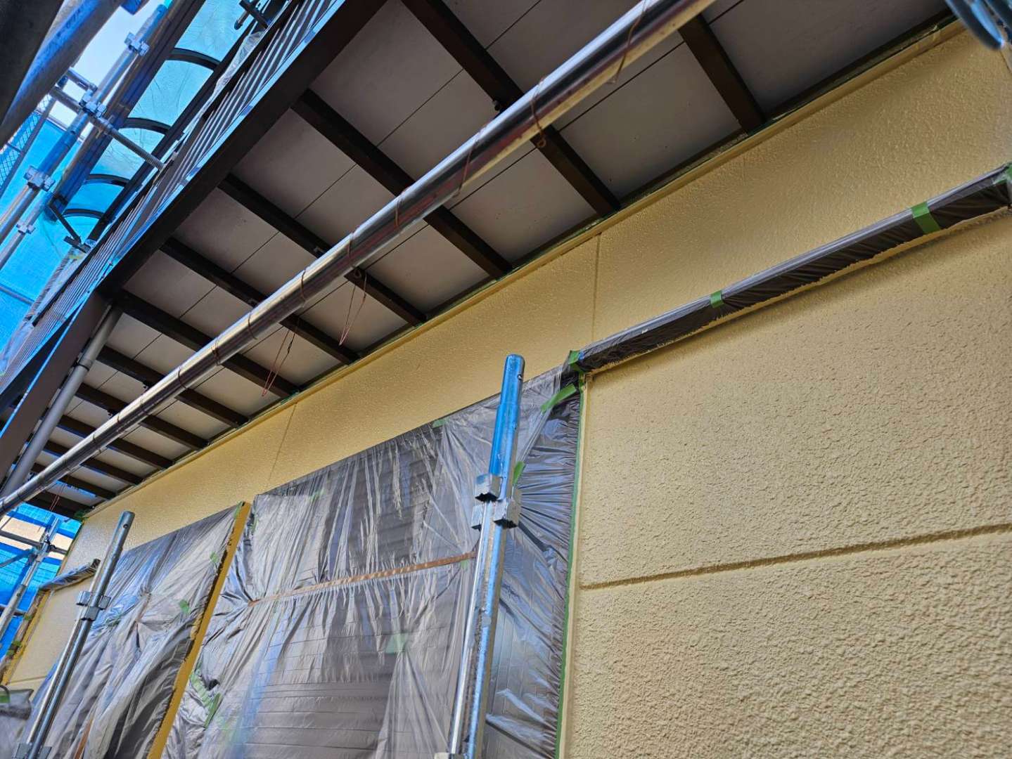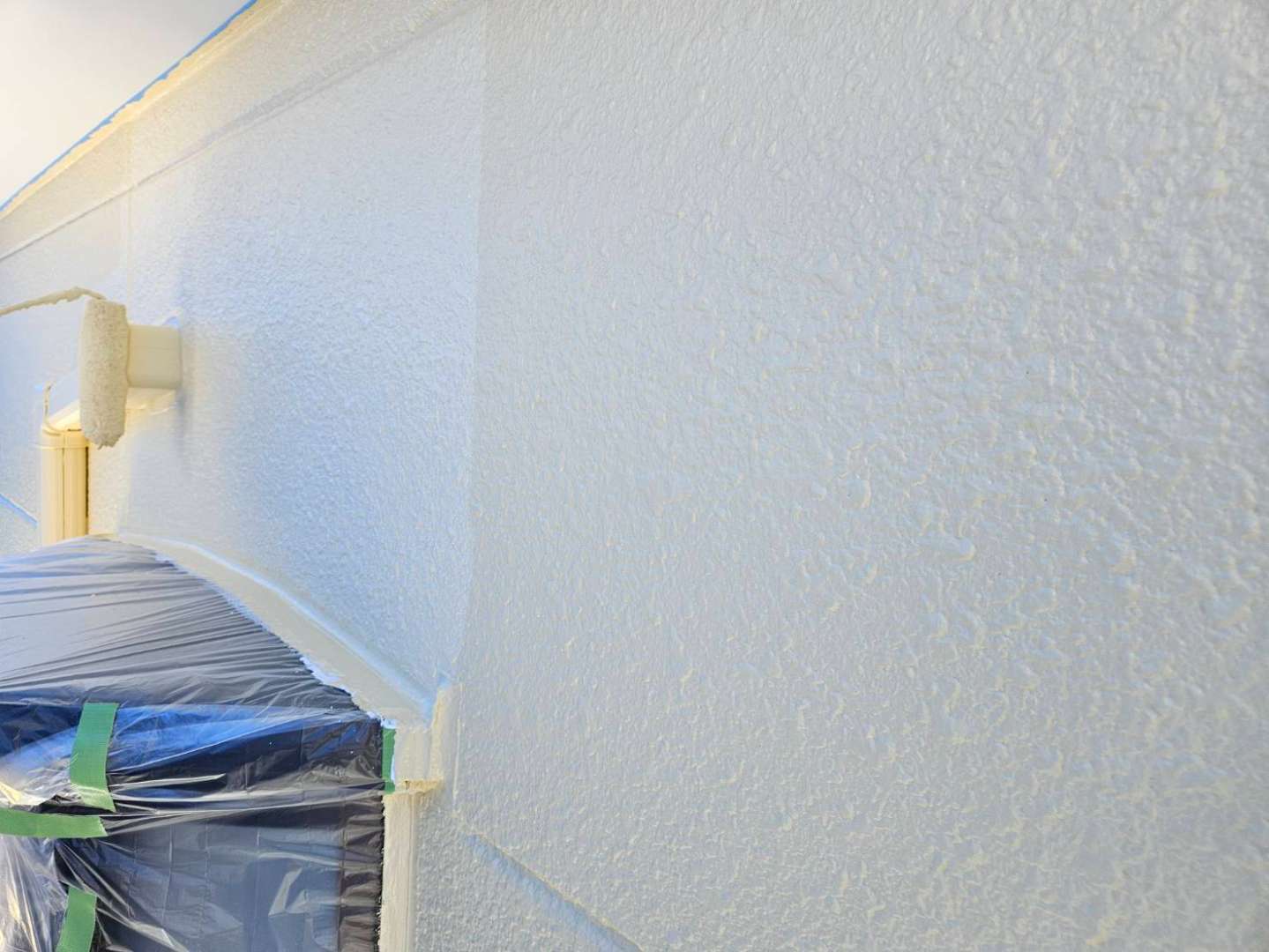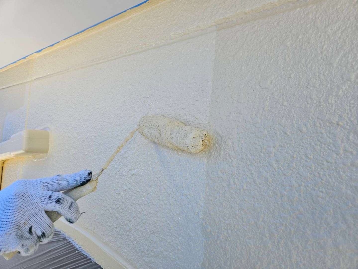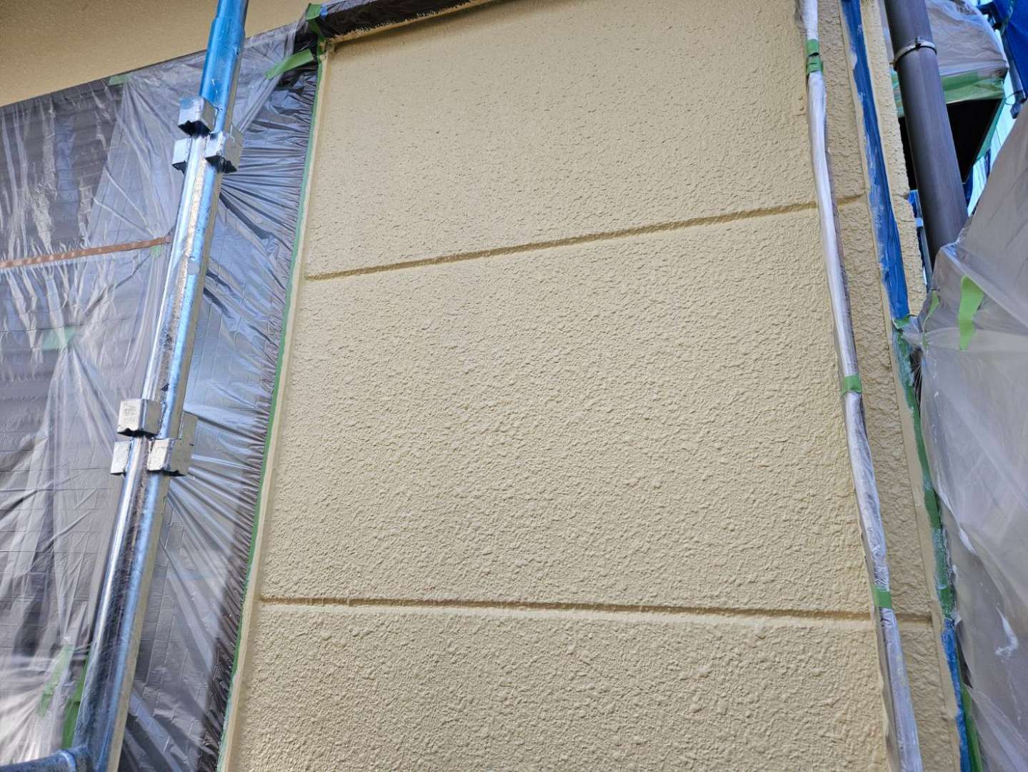 昨日の作業は、屋根上塗り塗装と外壁の上塗り塗装作業でした。