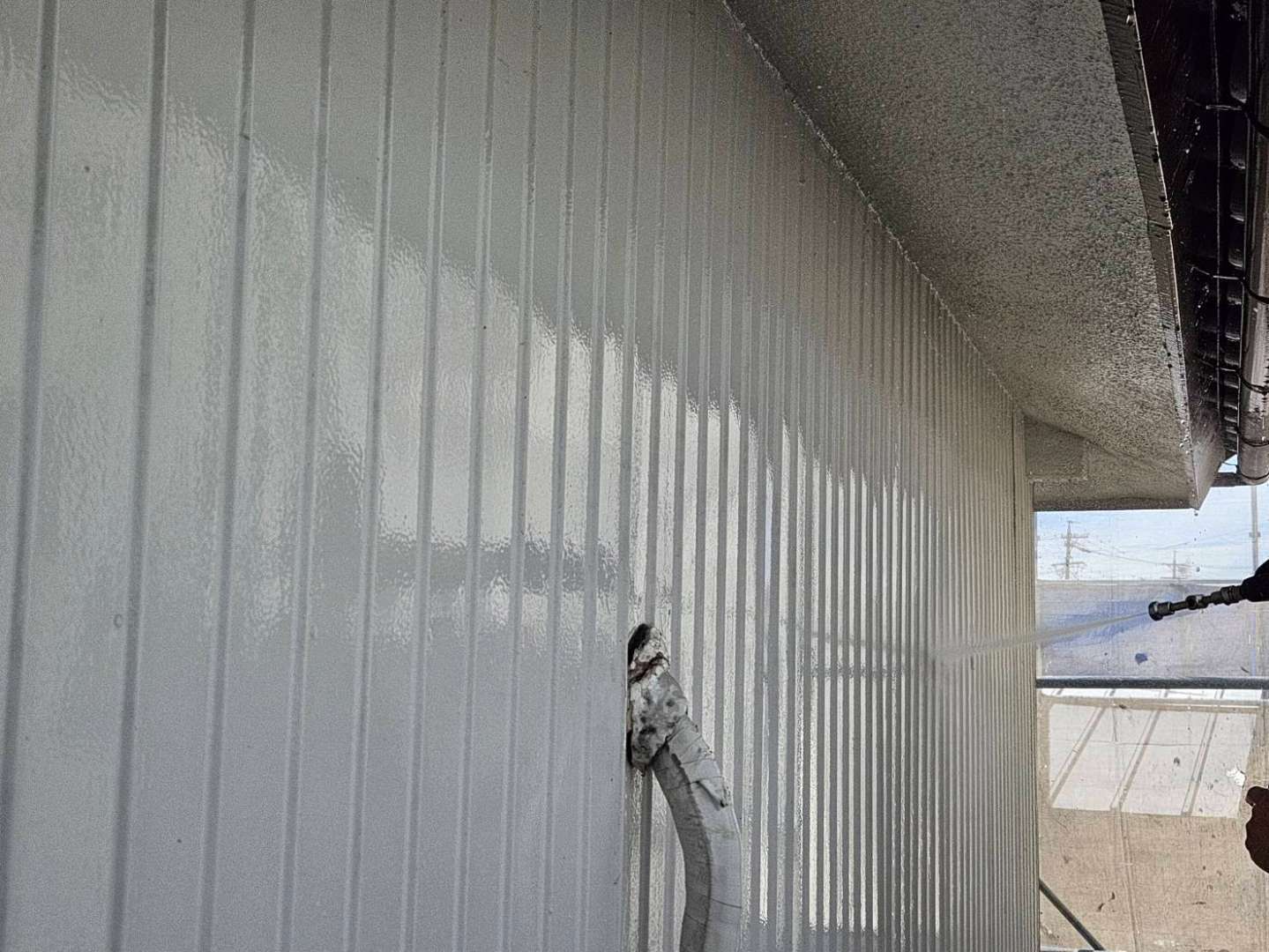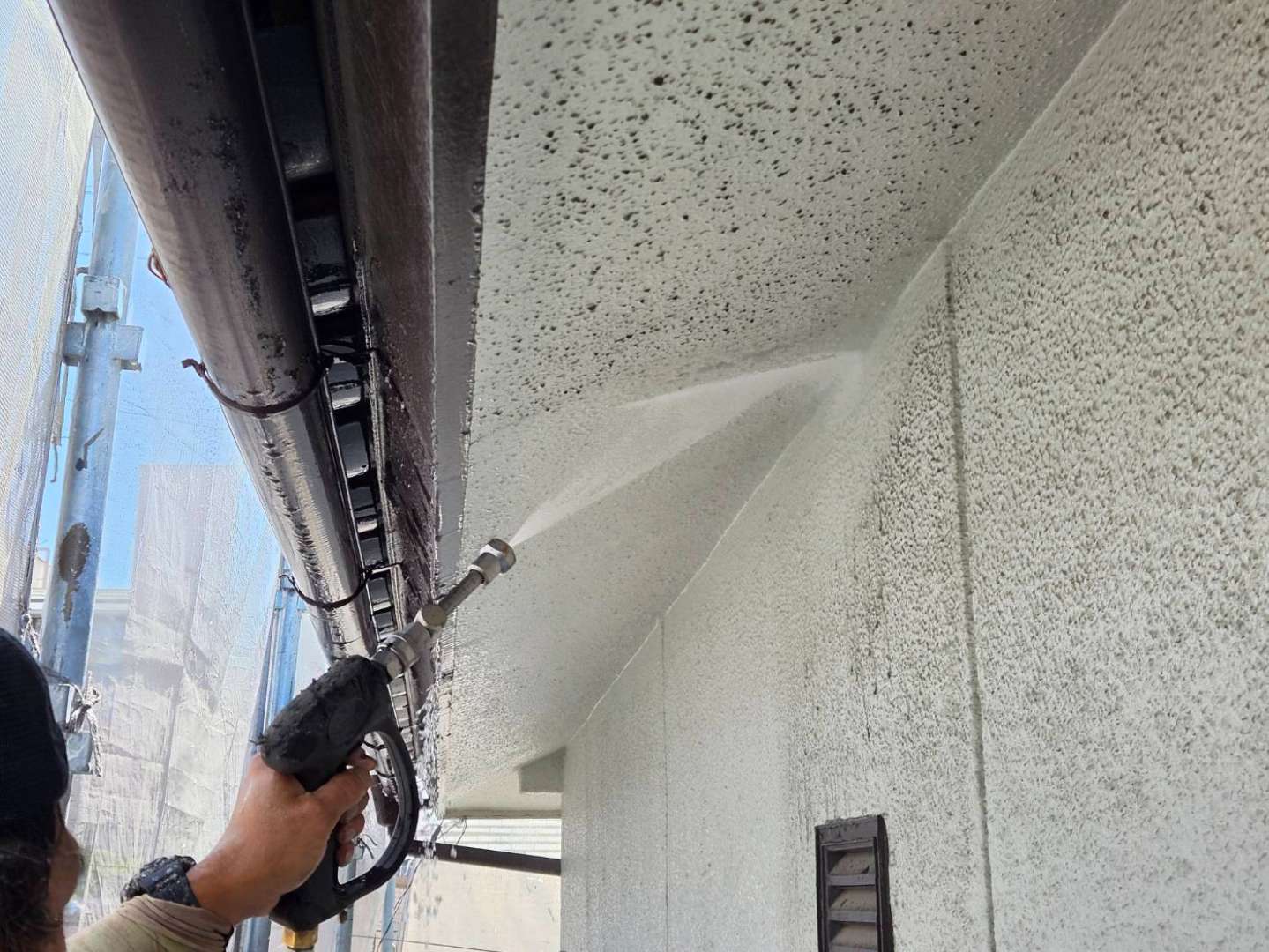 名古屋市名東区 K様邸 外壁塗り替え工事 洗浄作業が終わり、今日は養生作業です! 洗浄作...