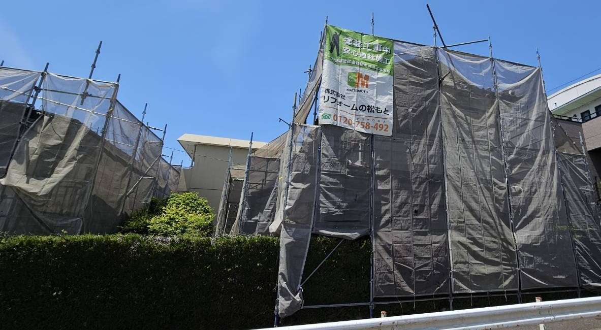 足場の組立作業が完了し
