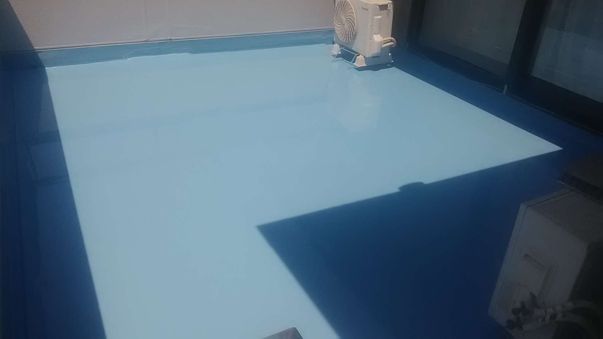 今日の作業ベランダ防水のトップコート塗装作業予定です。