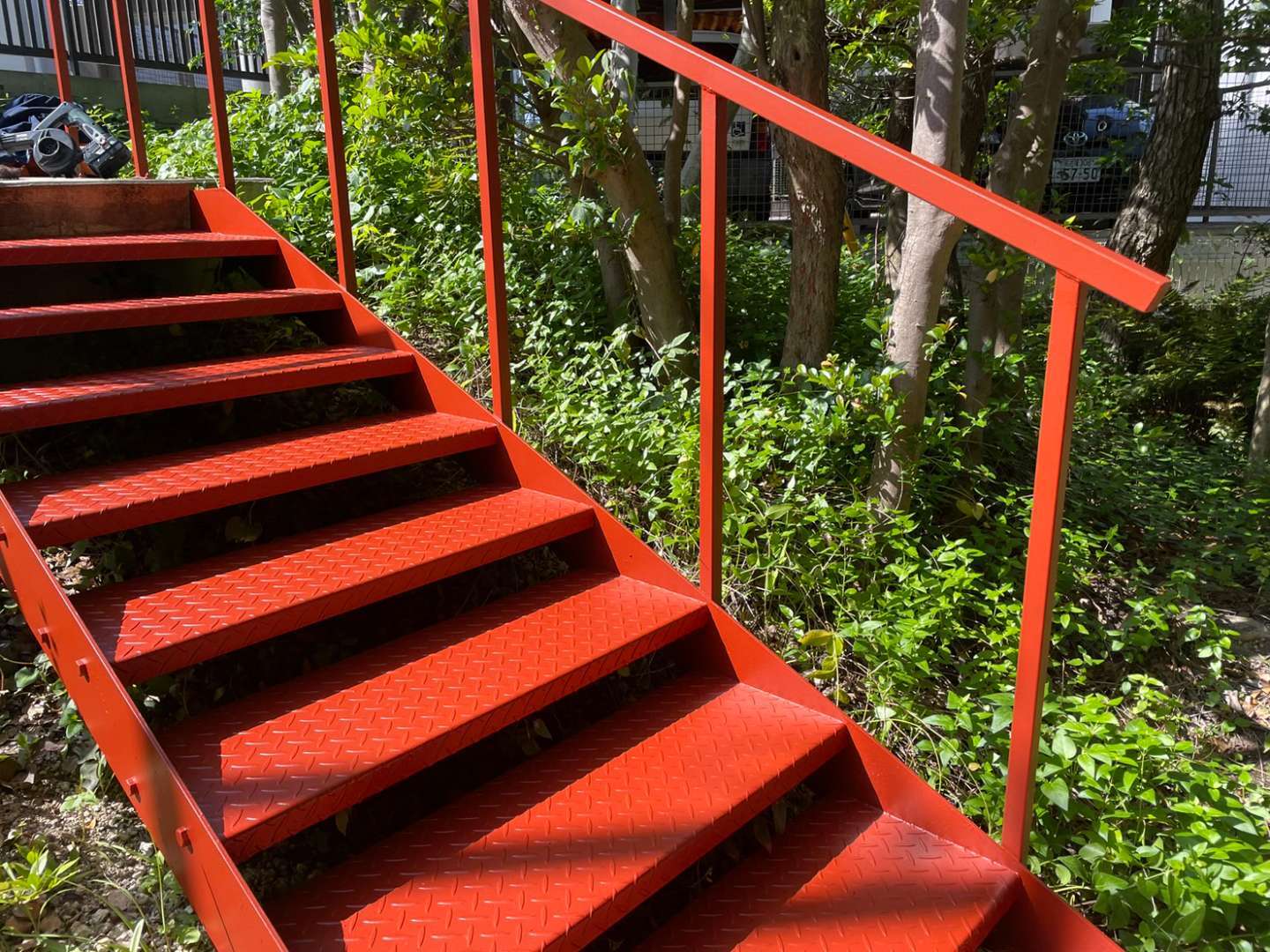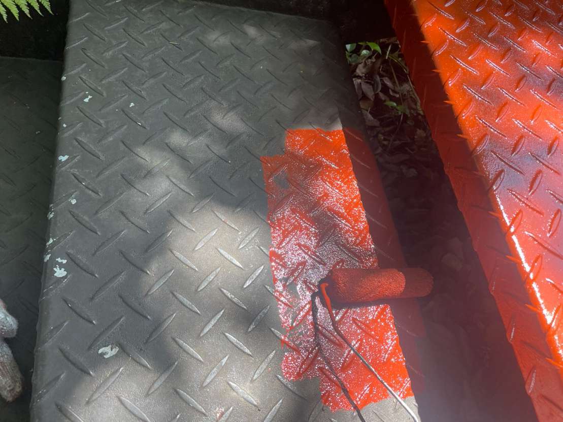 鉄骨階段錆止め塗装作業