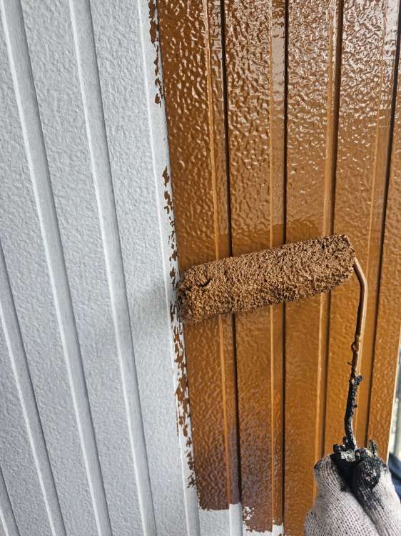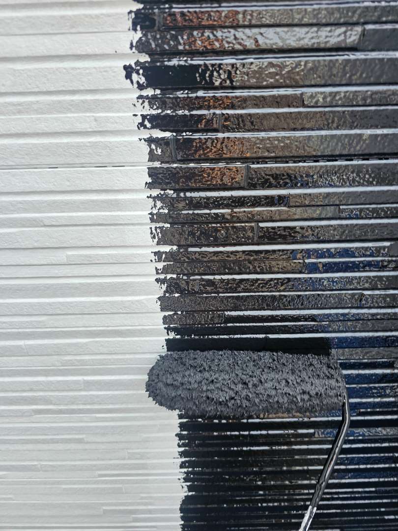 今日の作業は、外壁の上塗り塗装作業予定です!