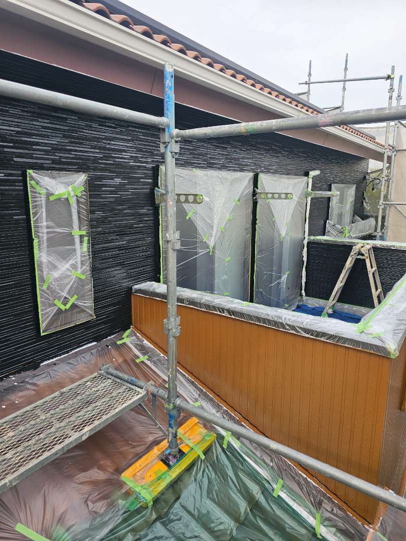 昨日の作業は、外壁の中塗り塗装作業でした。
