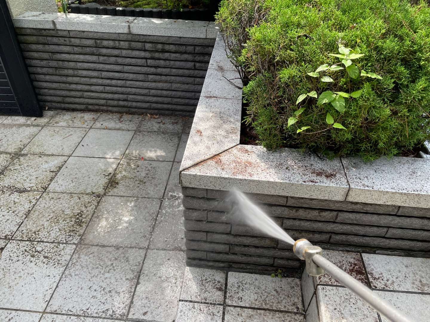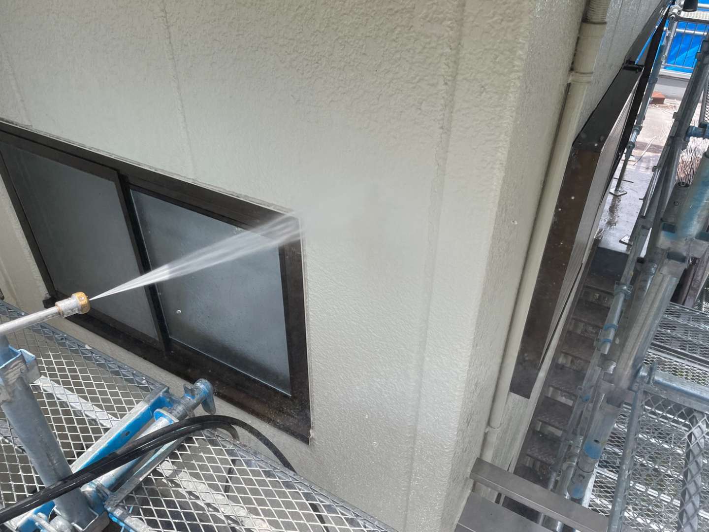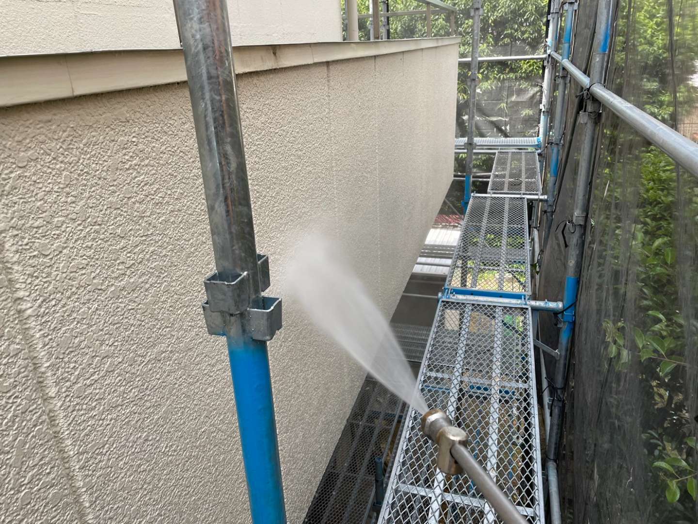 名古屋市名東区 K様邸 外壁塗り替え工事 洗浄作業が終わり、今日は養生作業です! 洗浄作...
