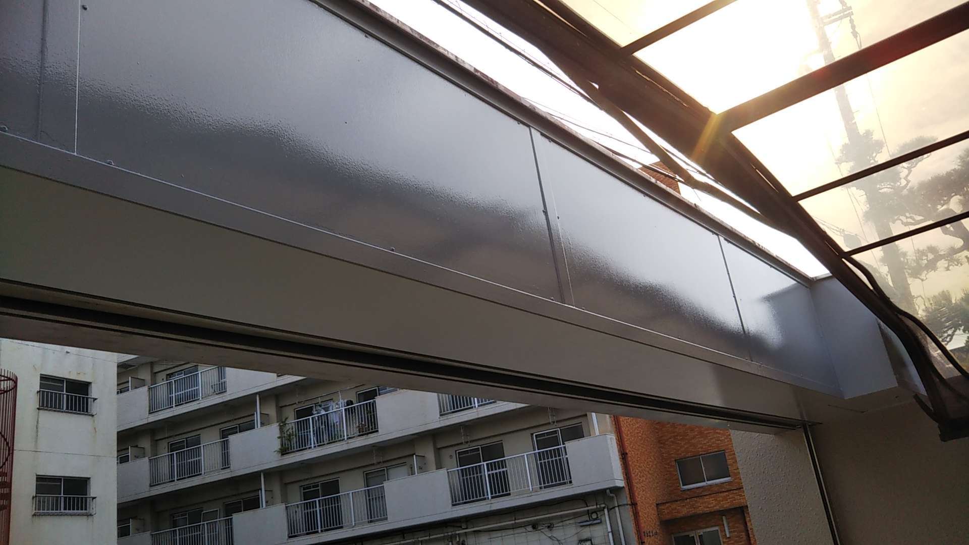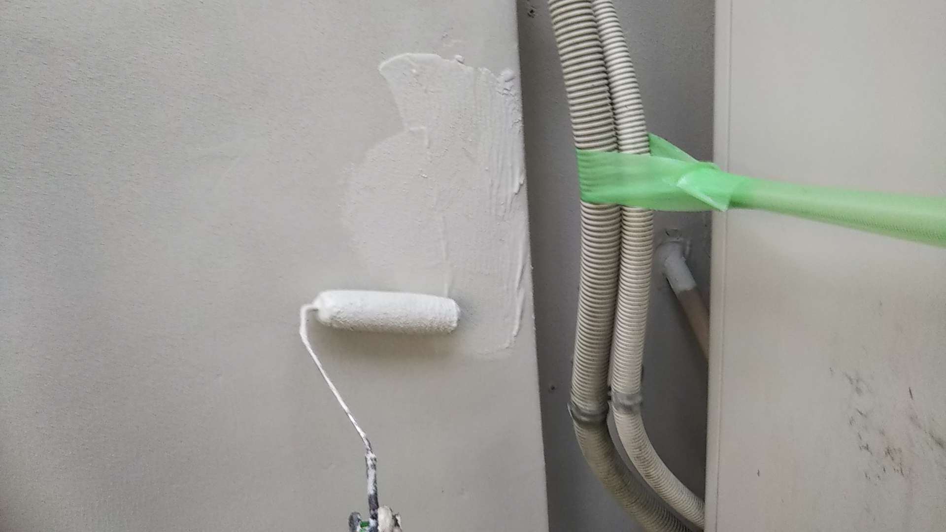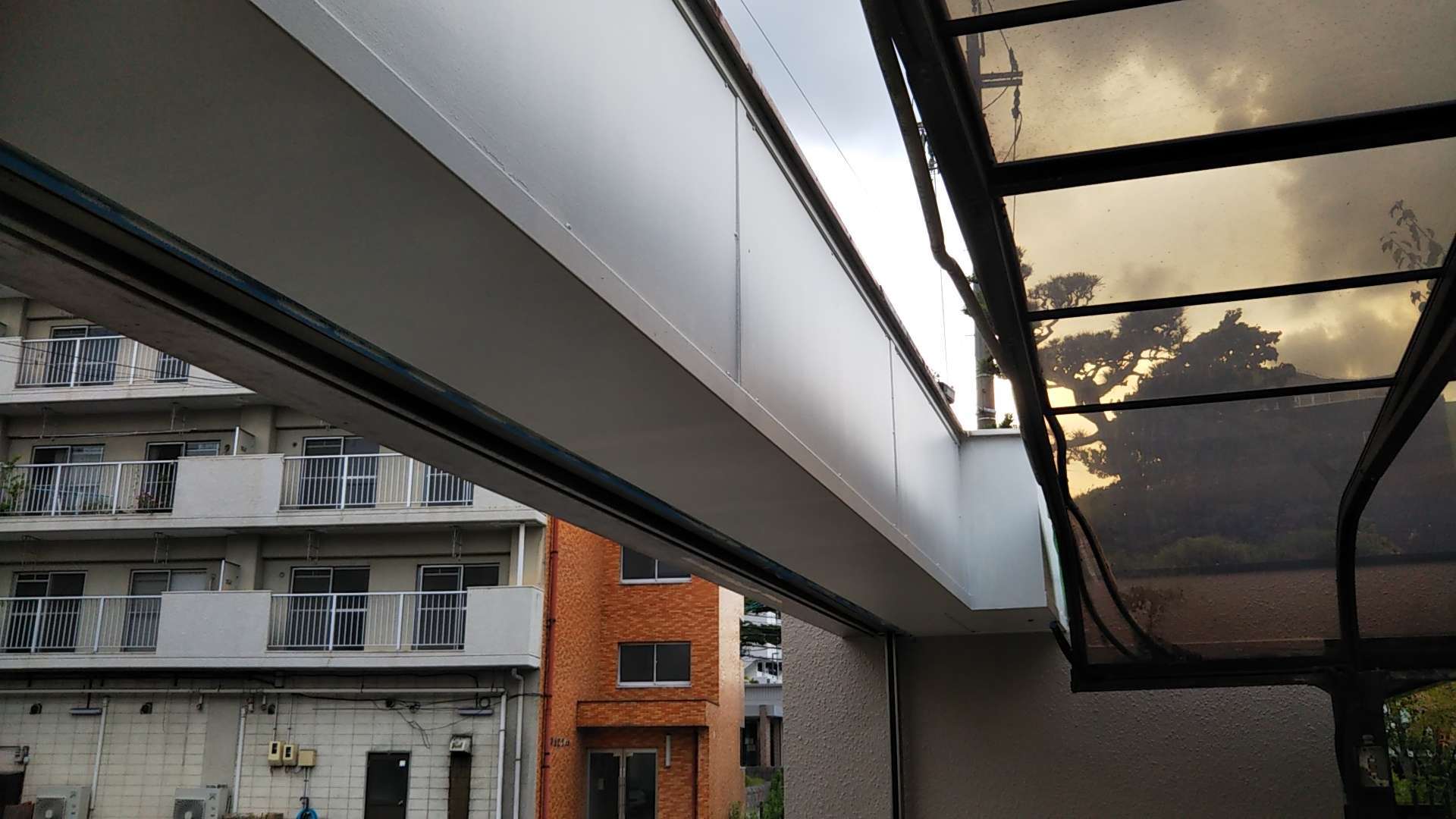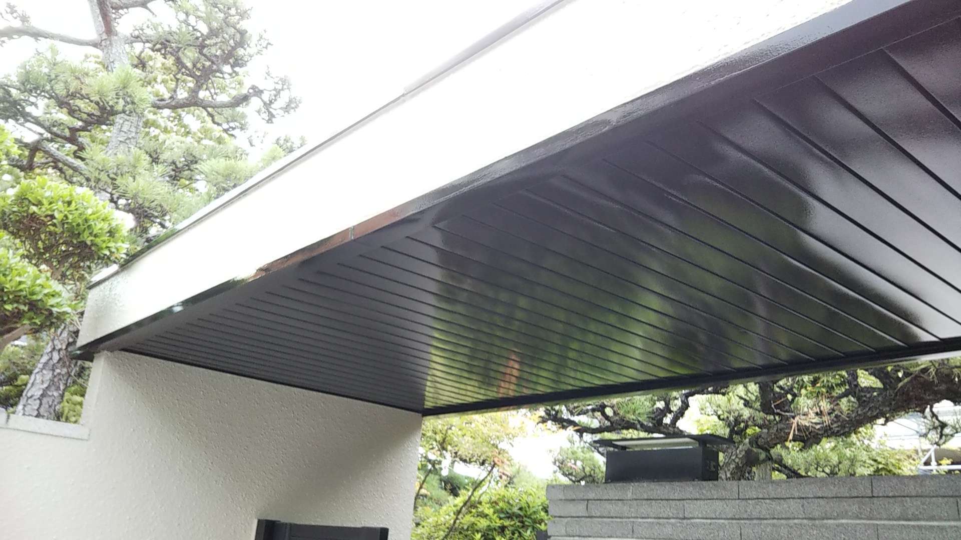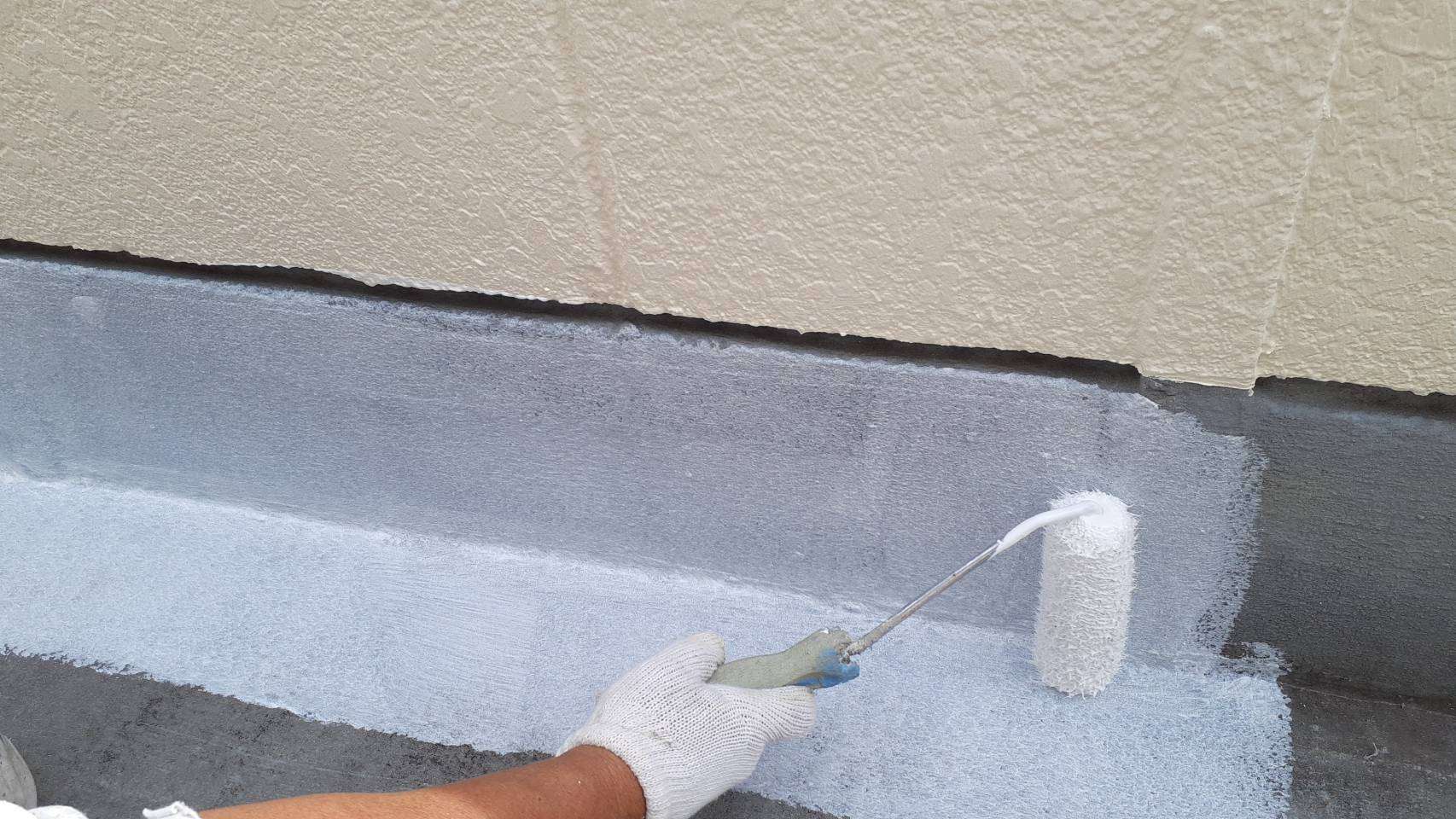 駐車場シャッターBOX塗装・門扉軒天塗装・ベランダ防水のプライマー塗装、ウレタン樹脂一層目塗装作業でした!