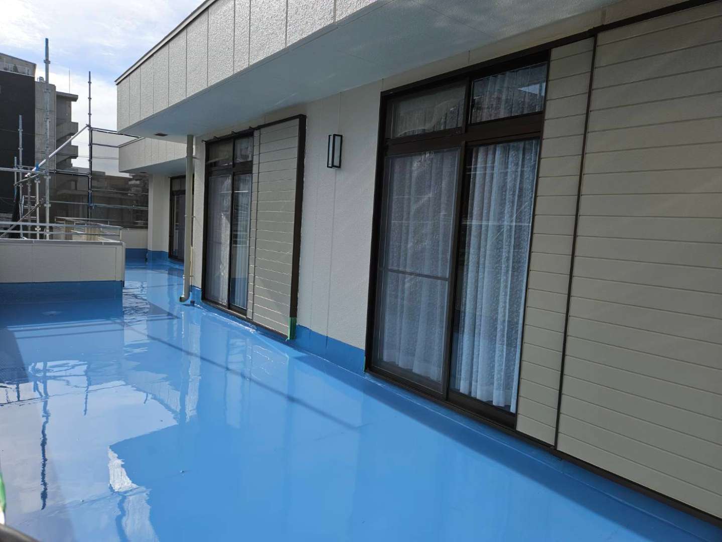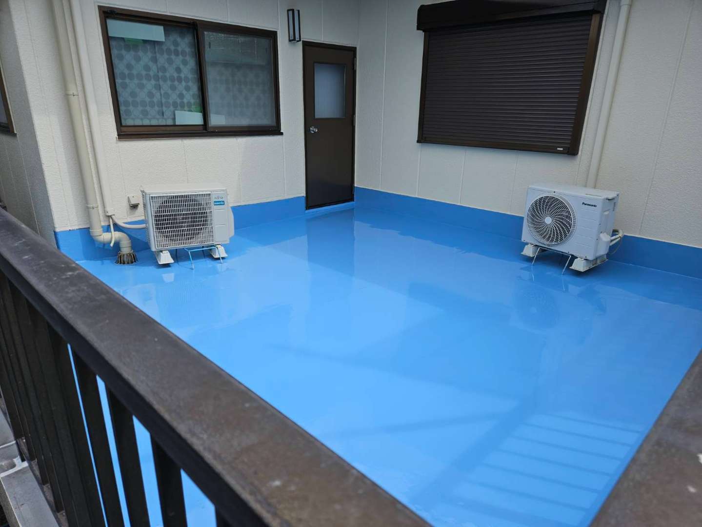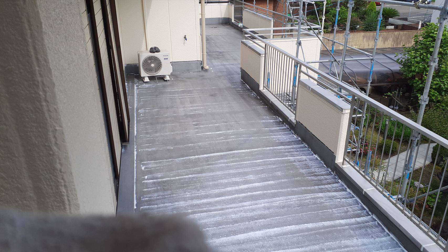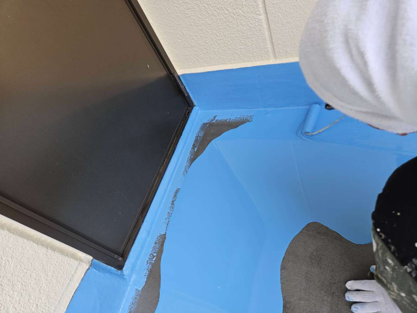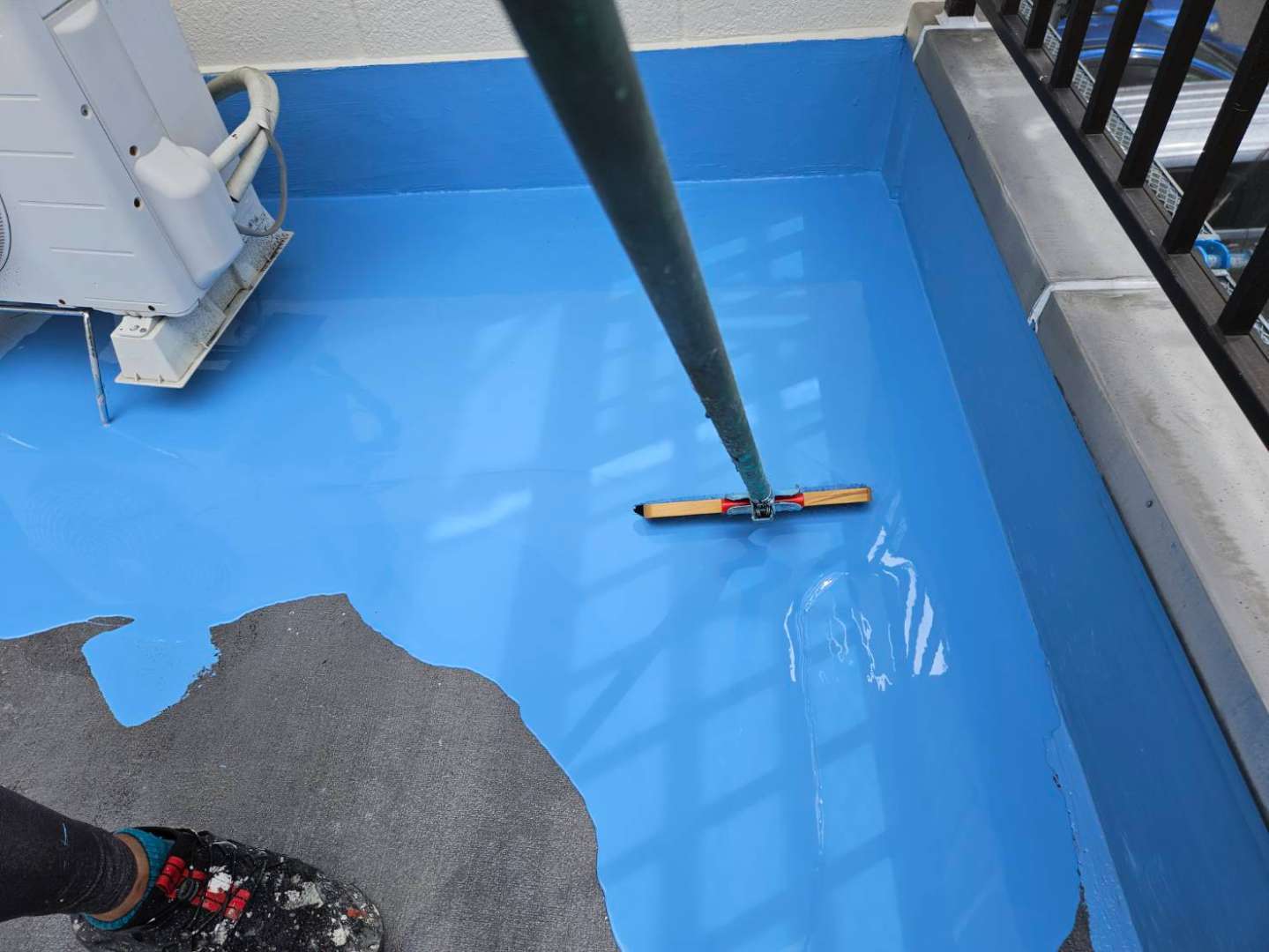 今日の作業は、ベランダ防水のウレタン樹脂二層目塗装作業予定です!