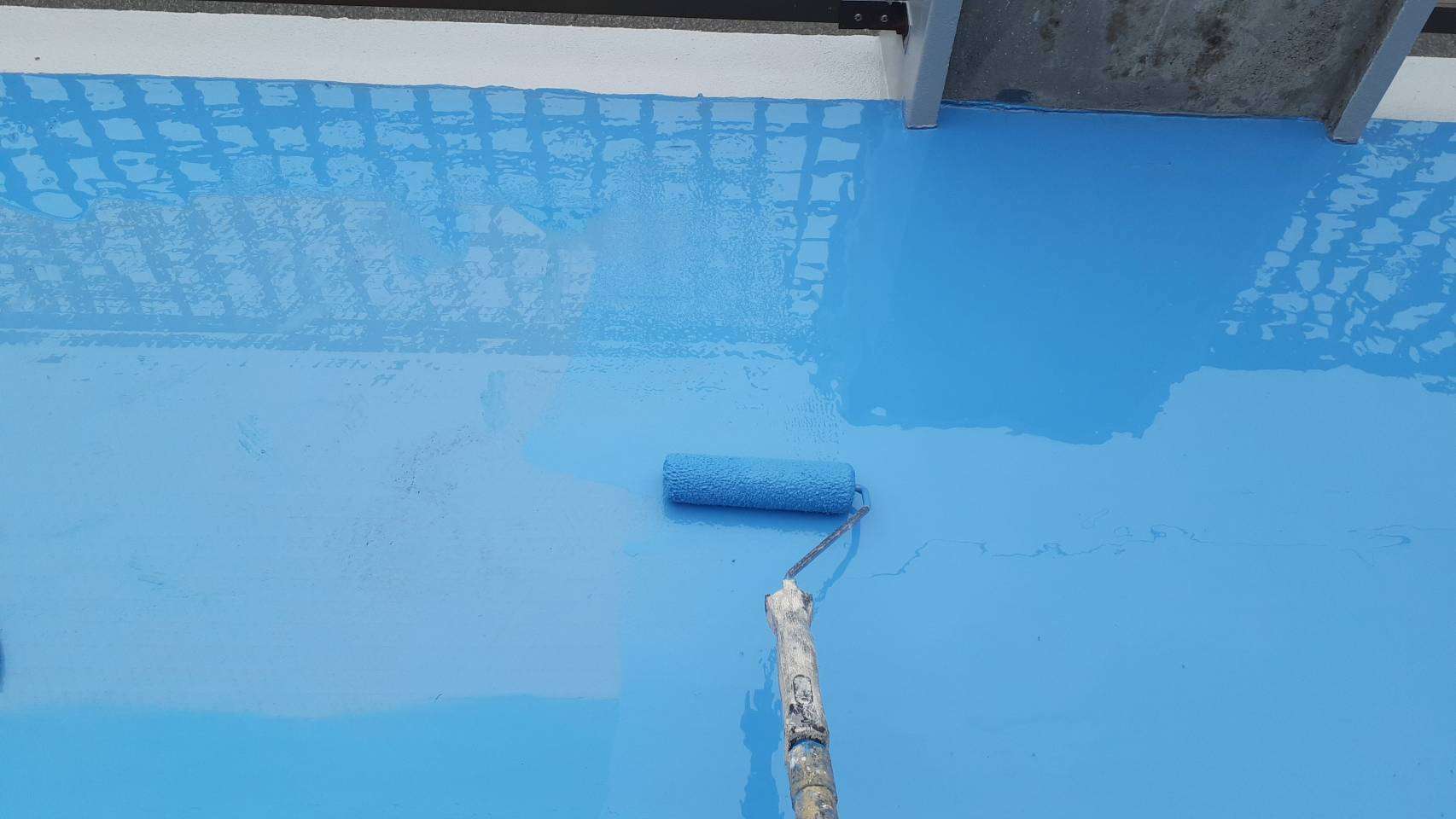 昨日の作業内容は、車庫上防水作業のウレタン樹脂二層目塗装と付帯部塗装作業でした!