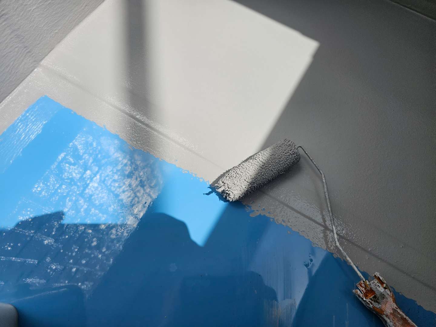 昨日までの作業で、ベランダ防水のトップコート塗装作業が完了しています!