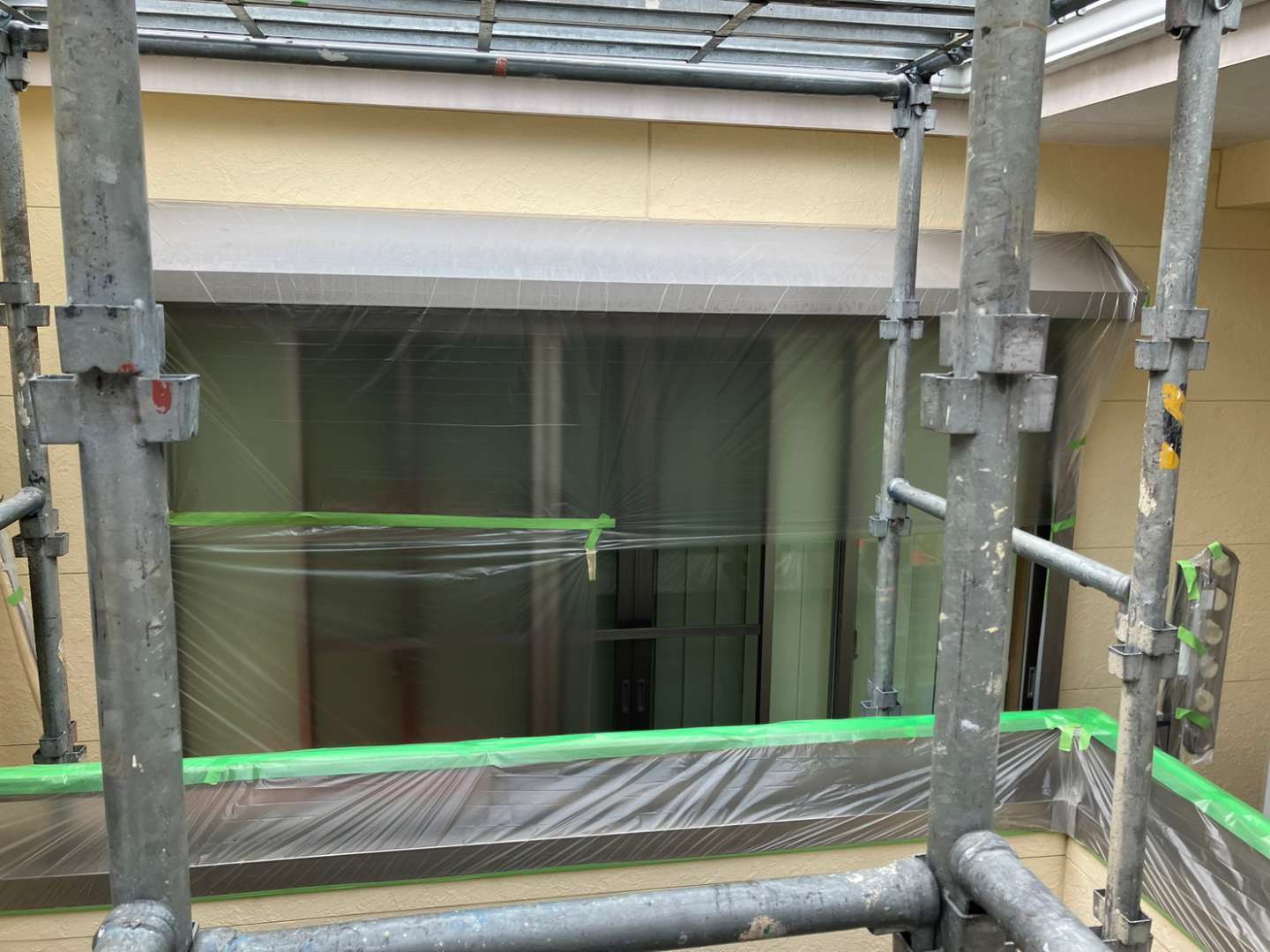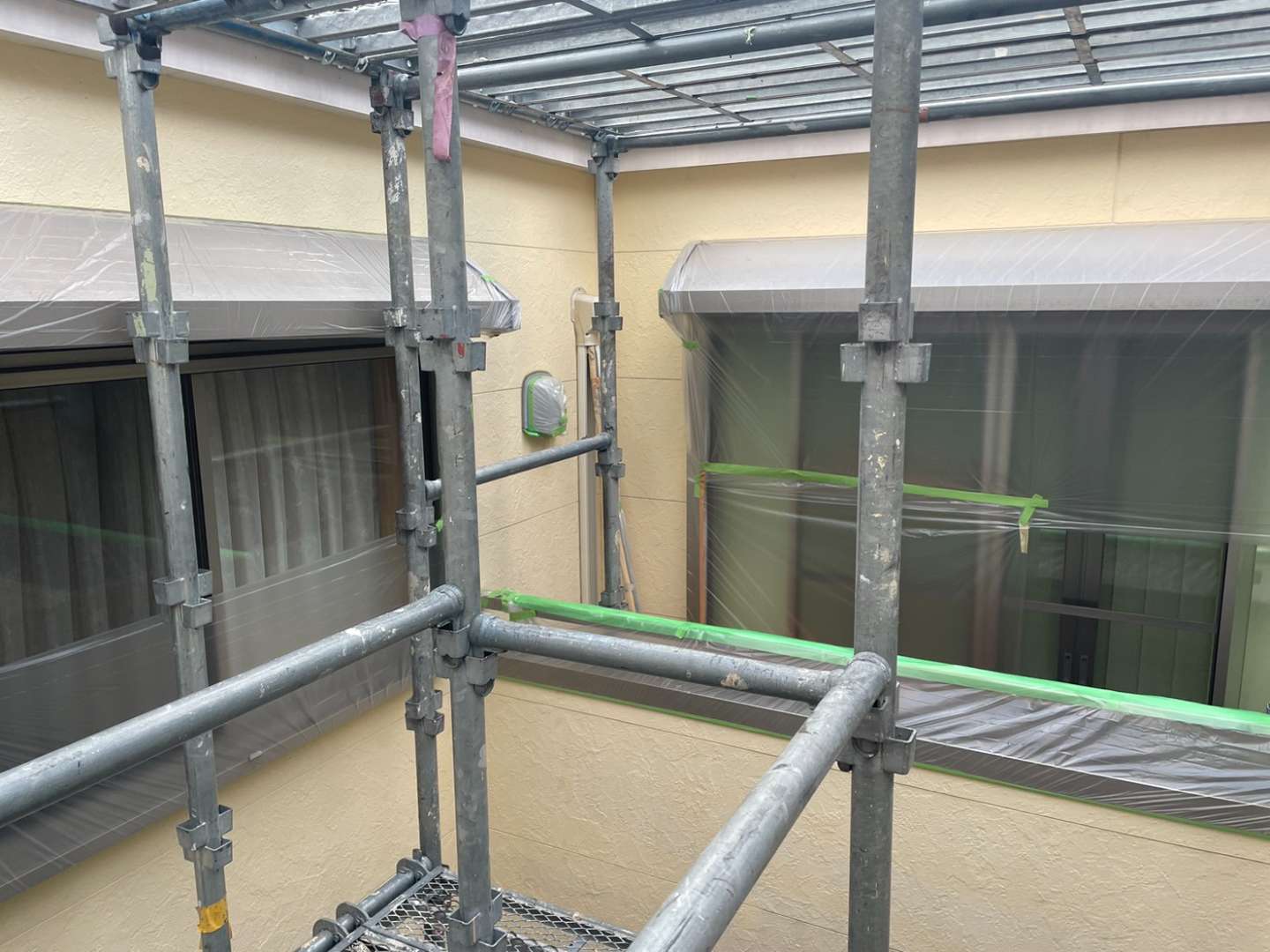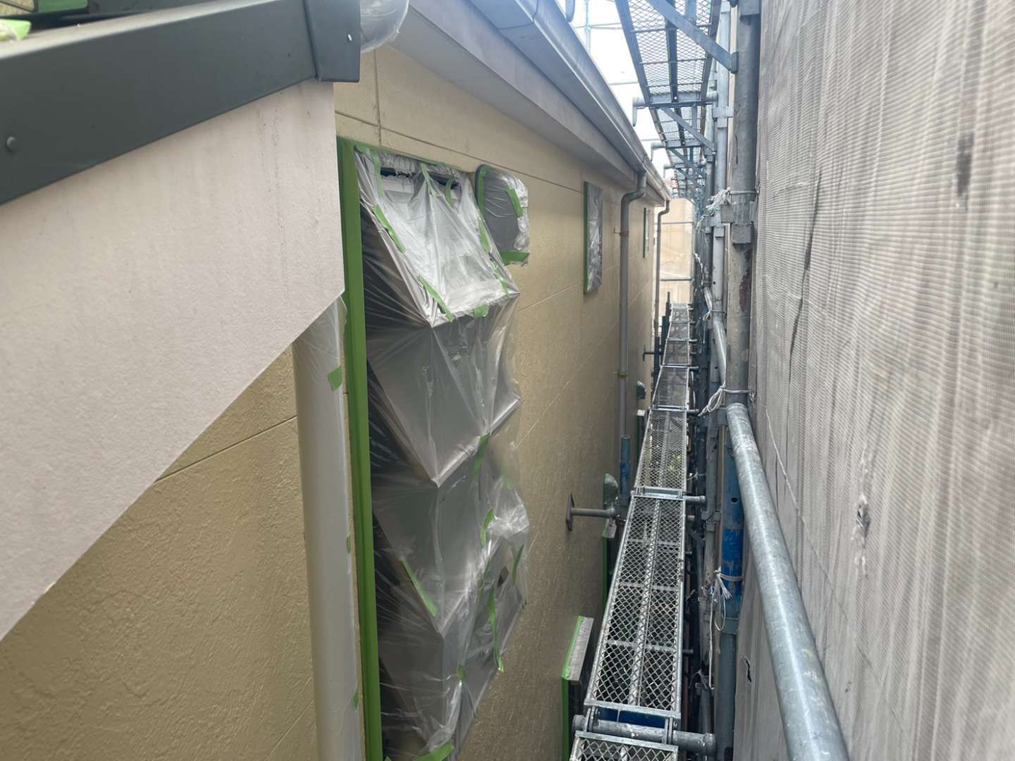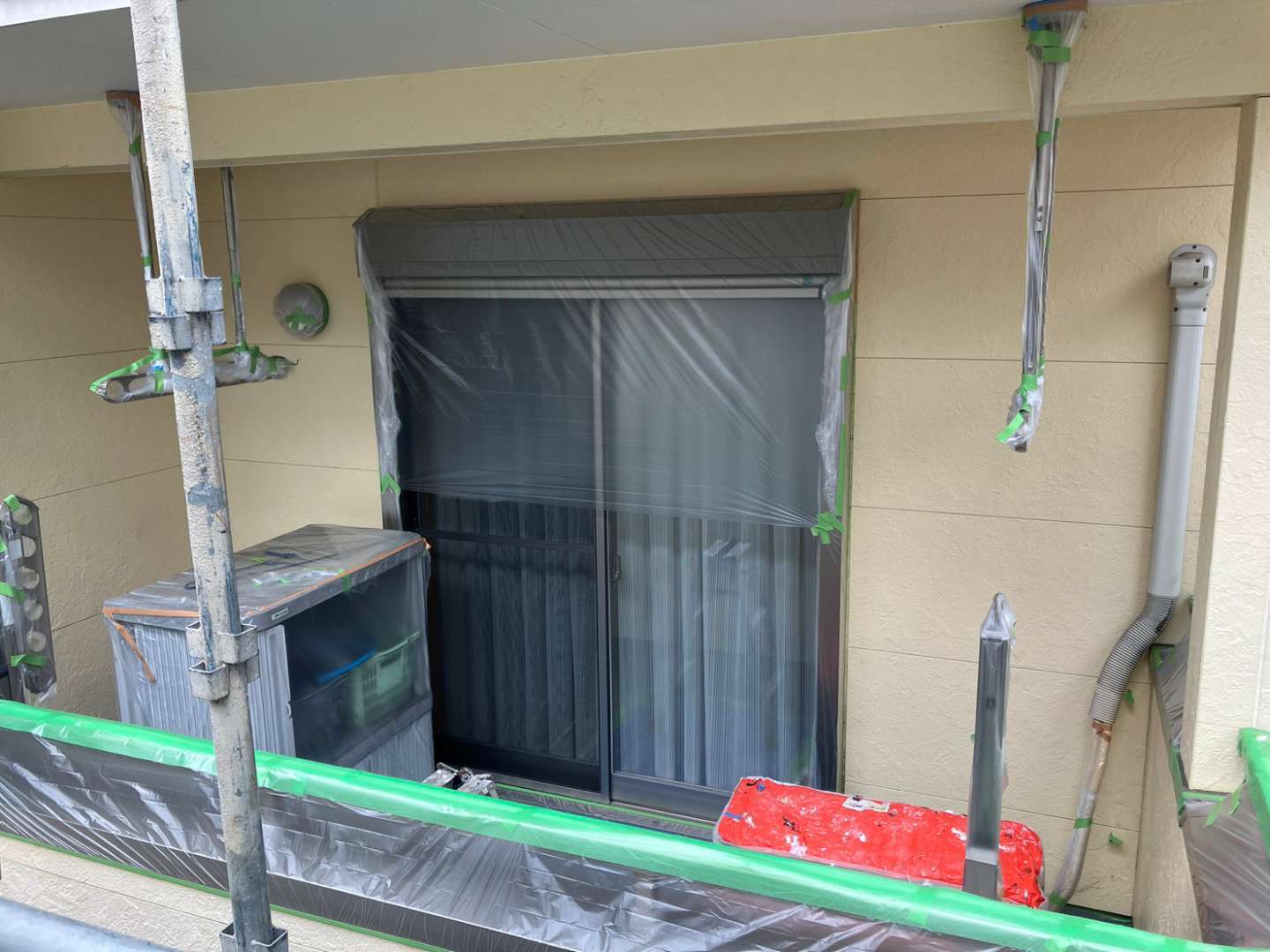 名古屋市名東区 K様邸 外壁塗り替え工事 洗浄作業が終わり、今日は養生作業です! 洗浄作...
