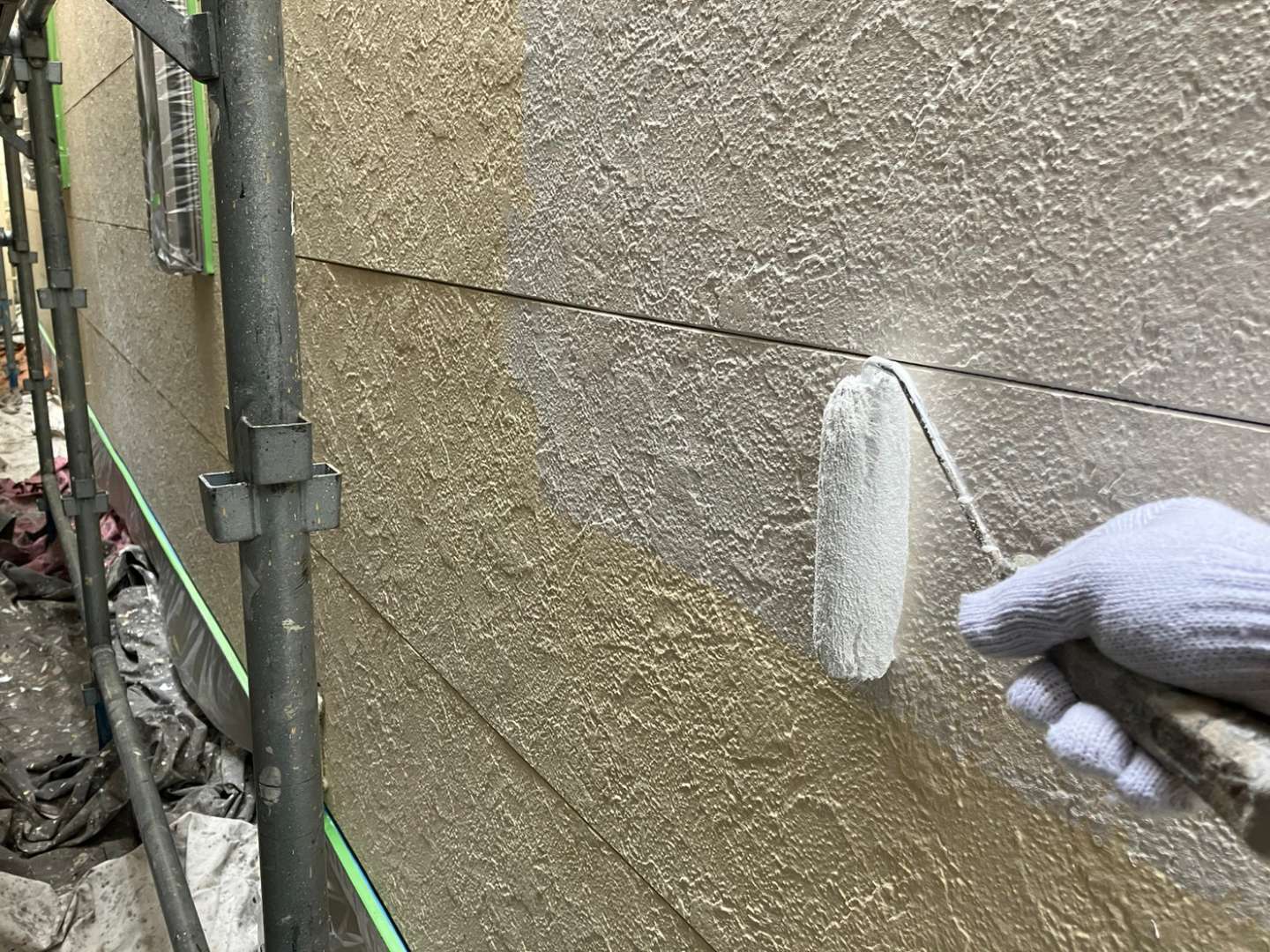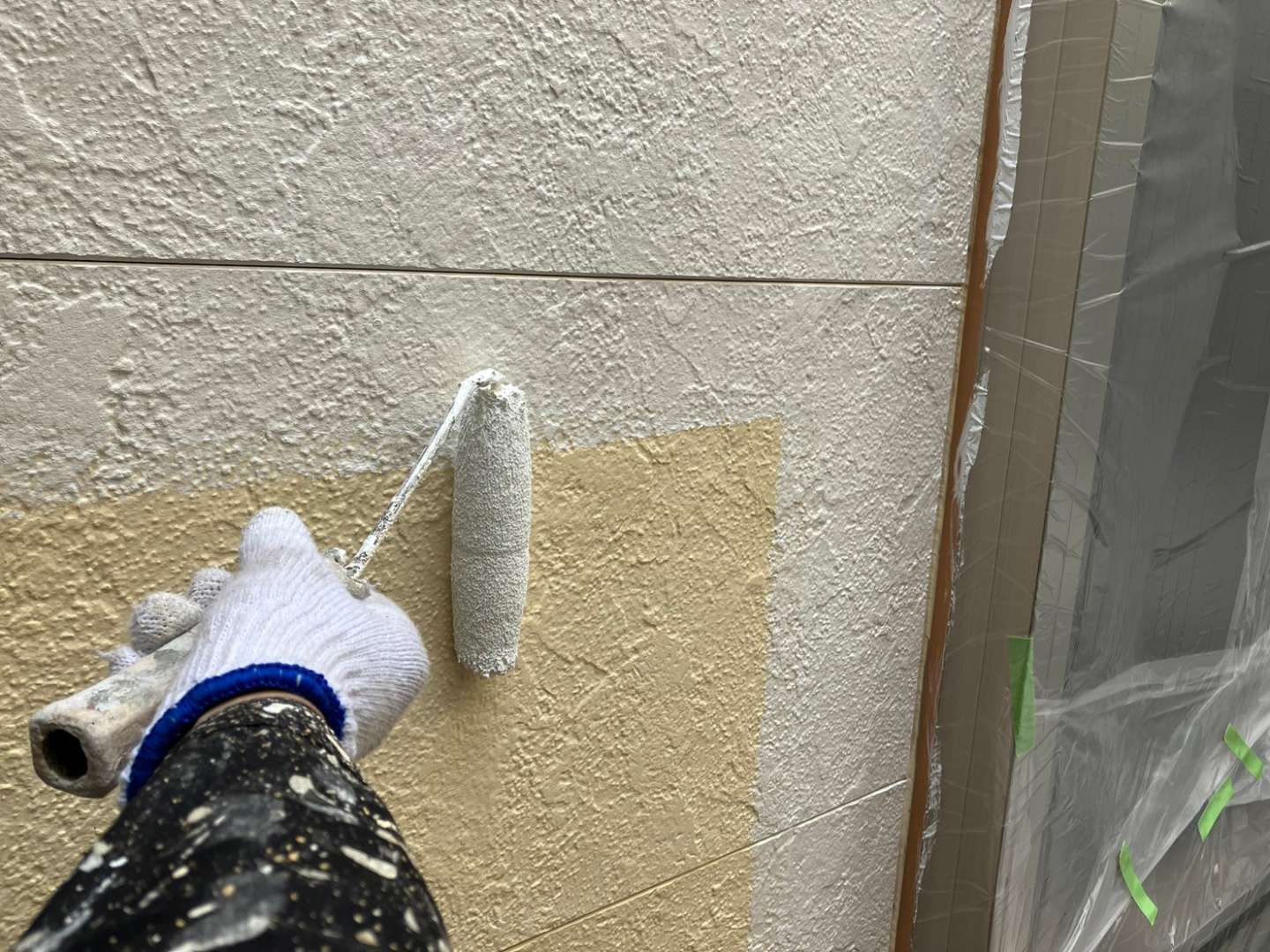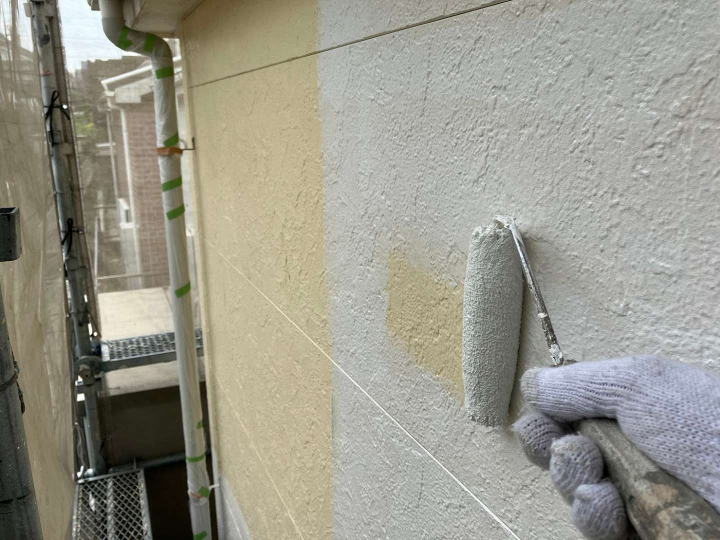 昨日の作業は、外壁の下塗り塗装作業でした!