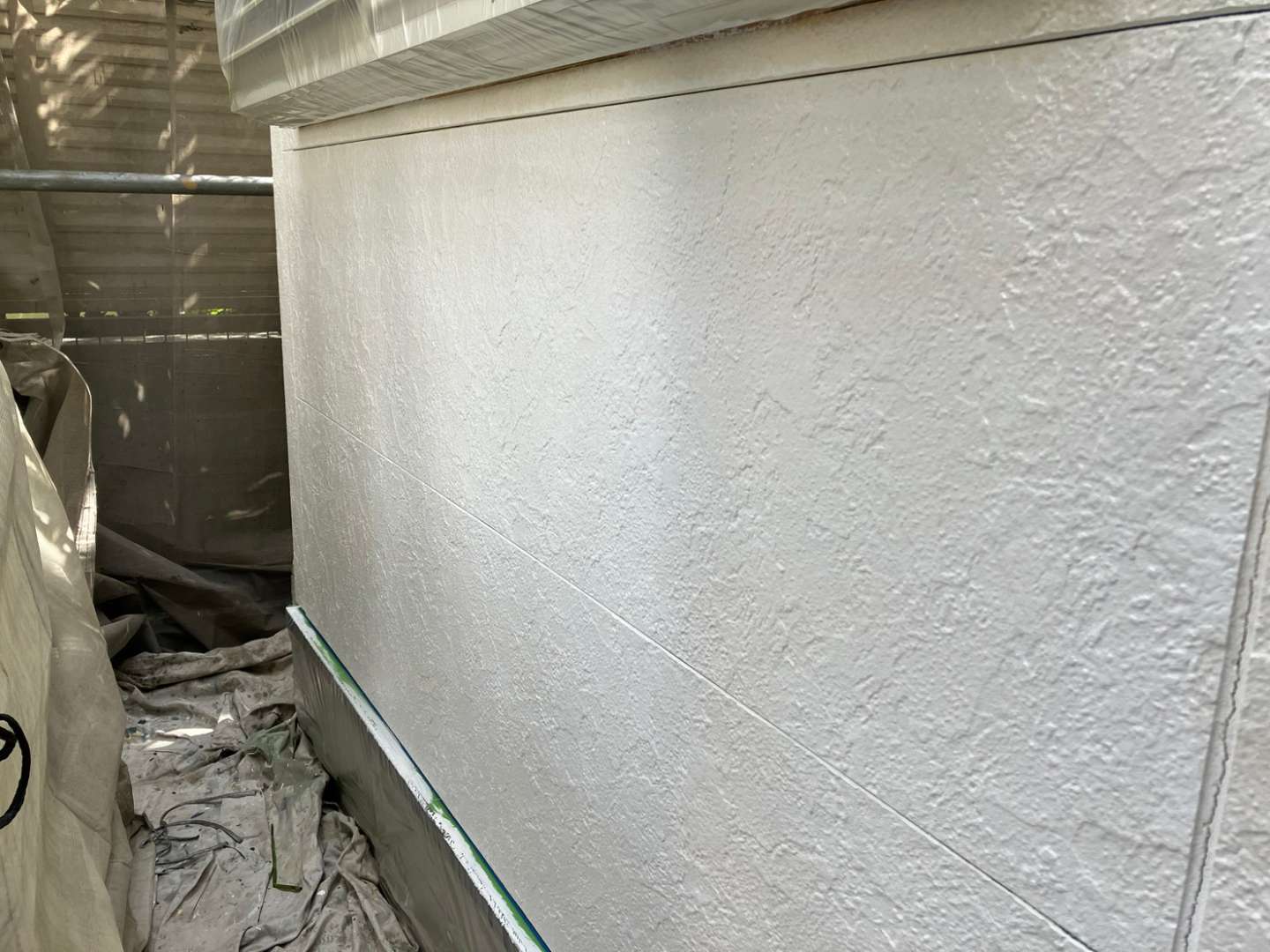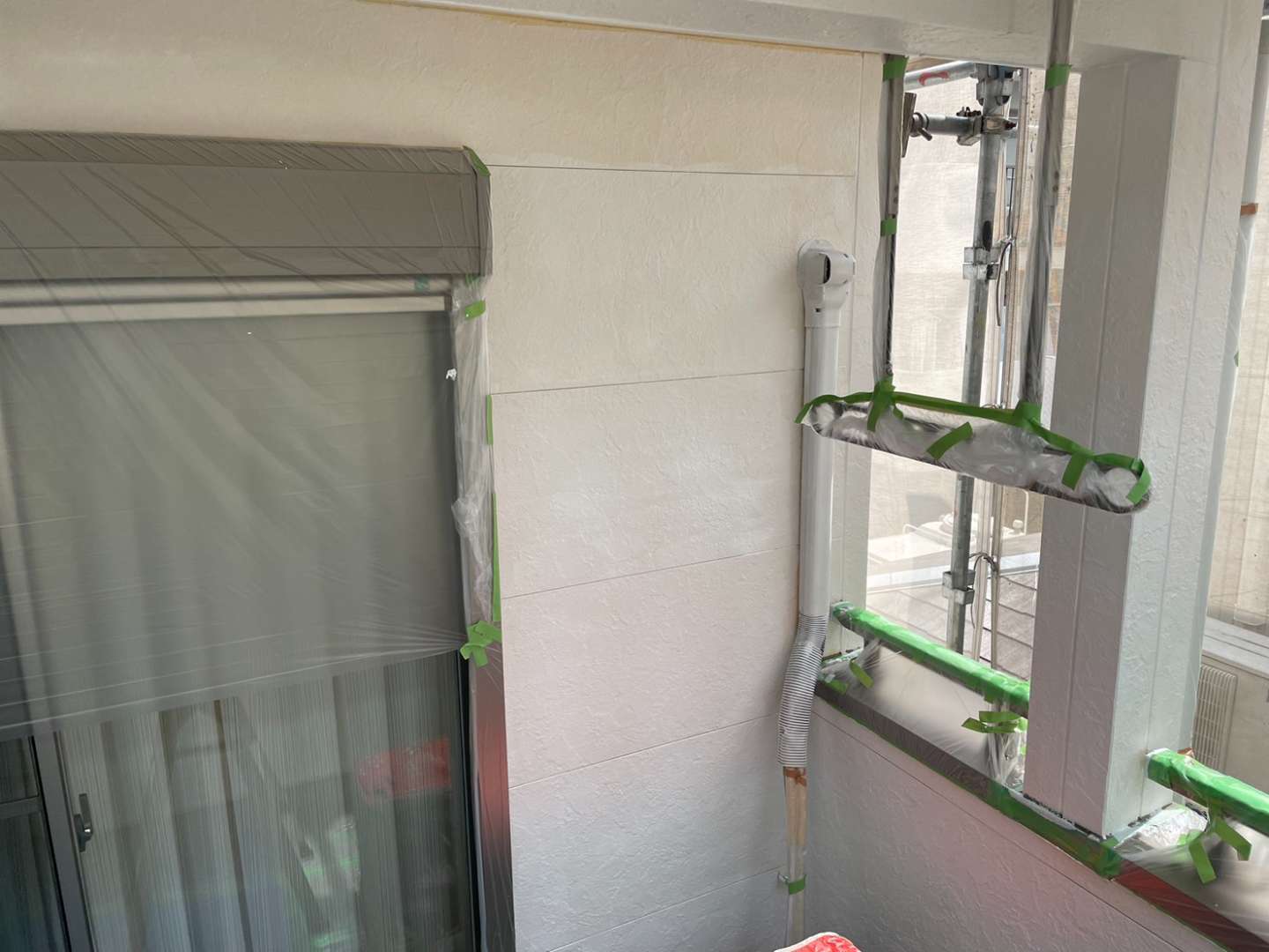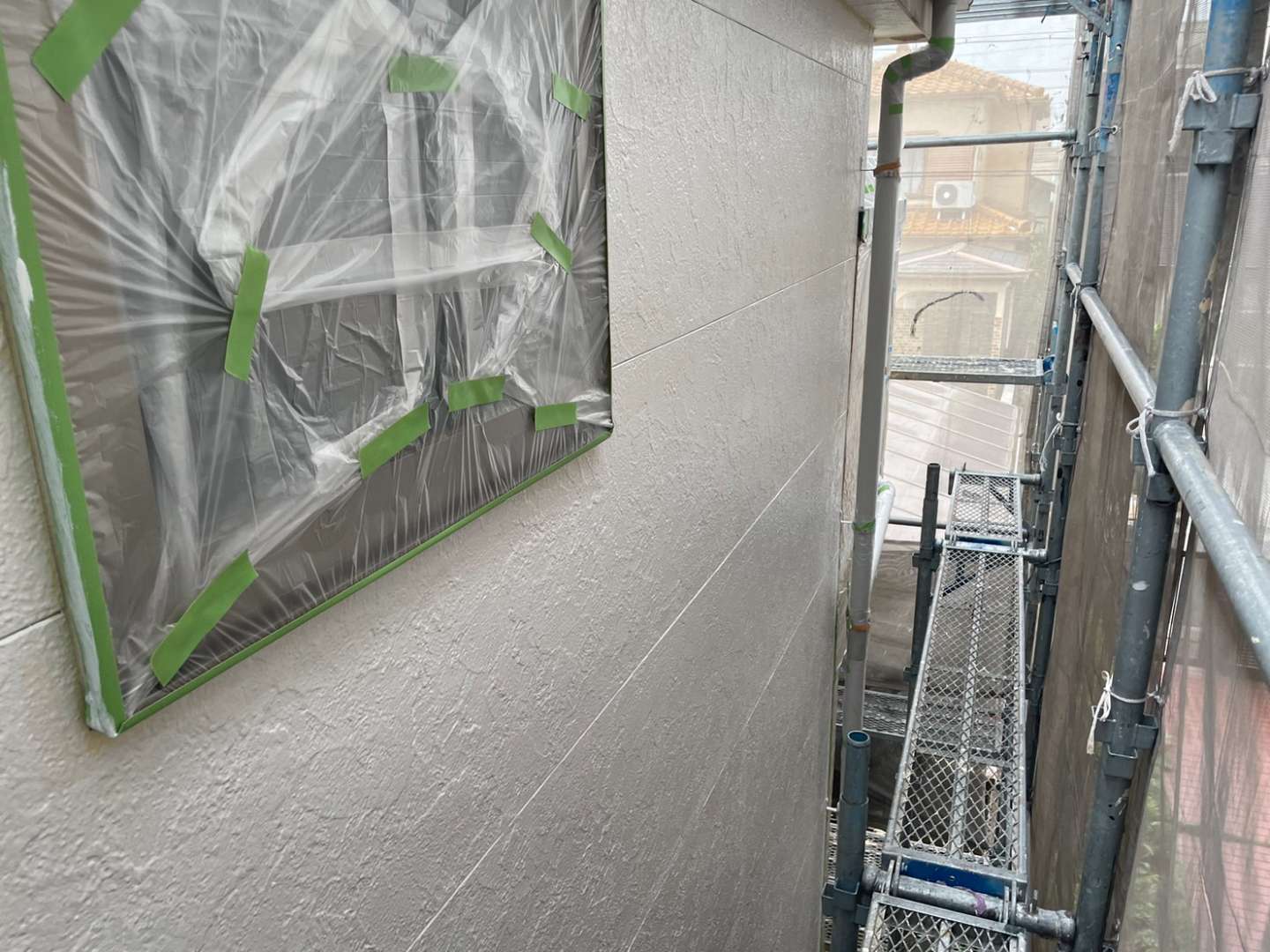 名古屋市名東区 K様邸 外壁塗り替え工事 洗浄作業が終わり、今日は養生作業です! 洗浄作...