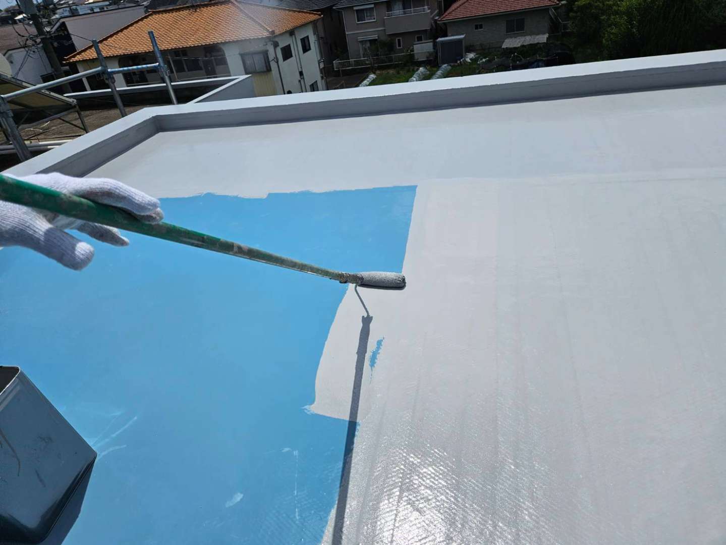 屋上のトップコート塗装作業