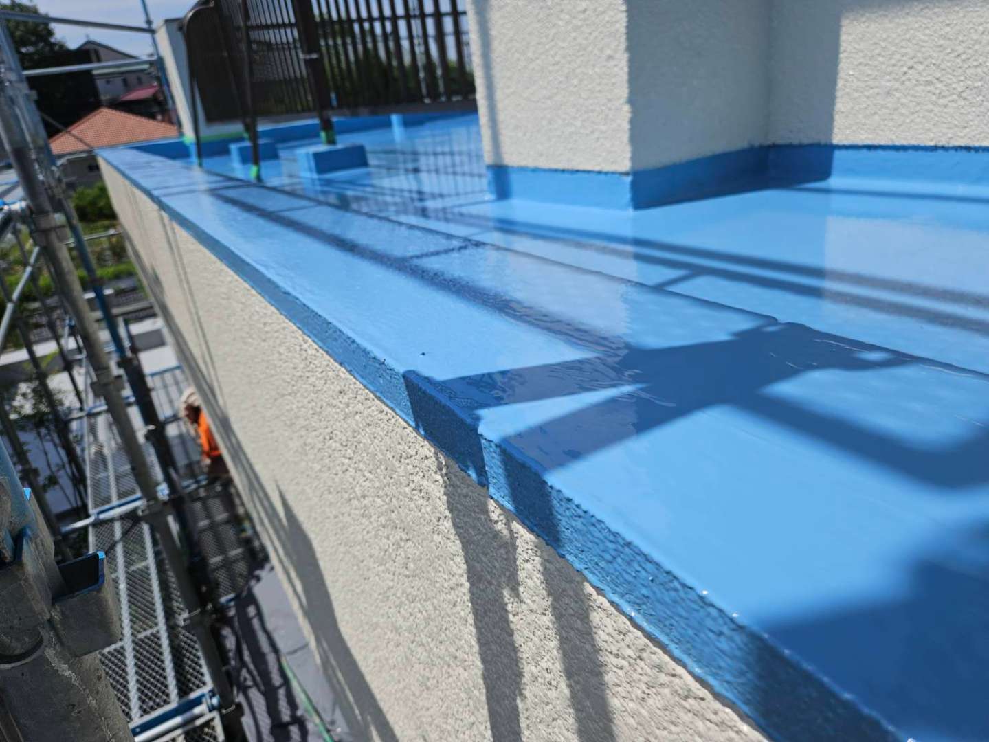 昨日の作業は、ベランダ(バルコニー)の立ち上がり部ウレタン樹脂二層目塗装作業でした!