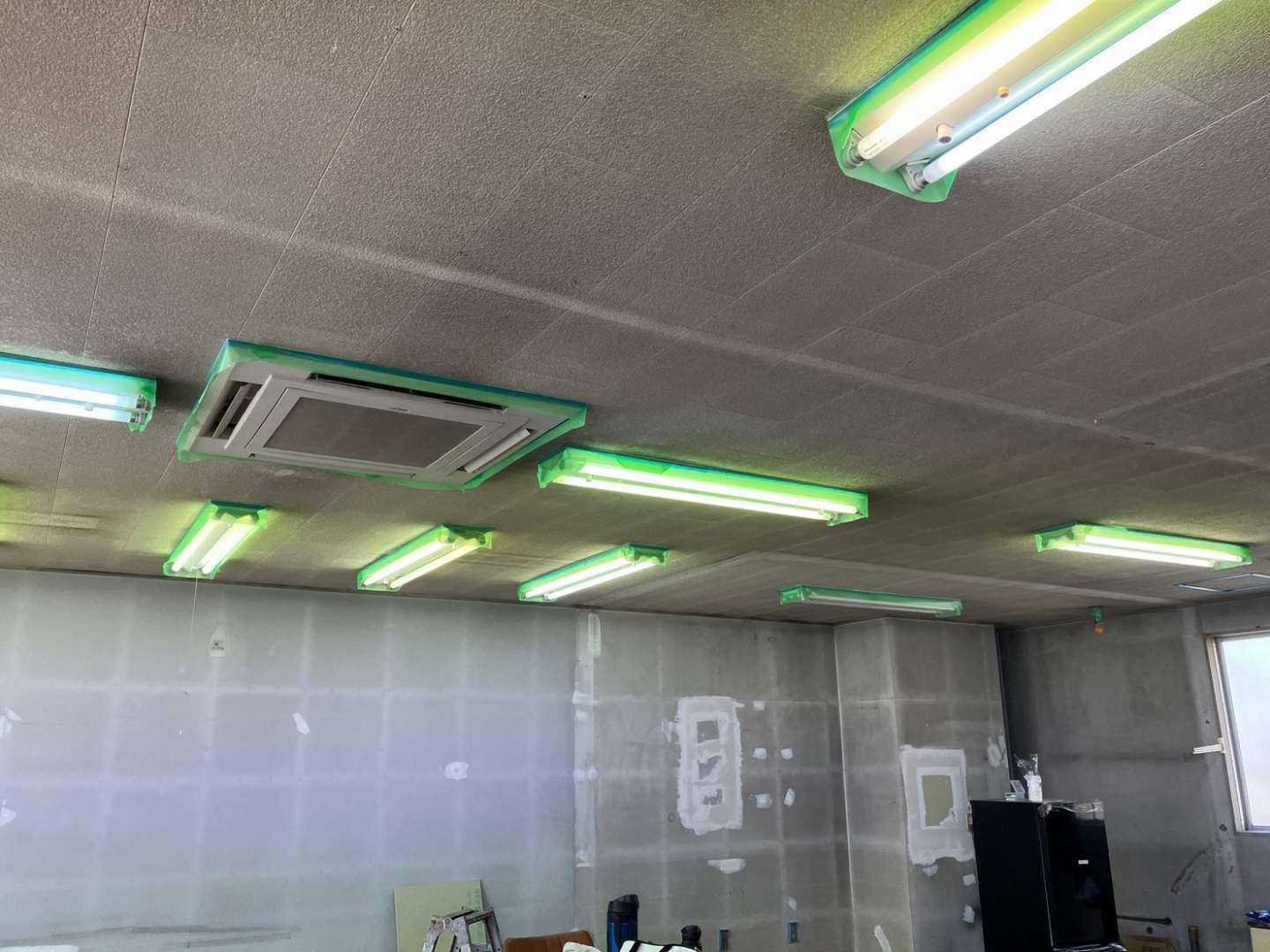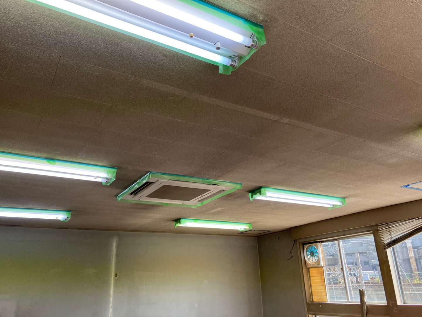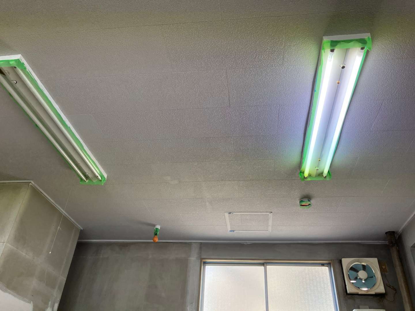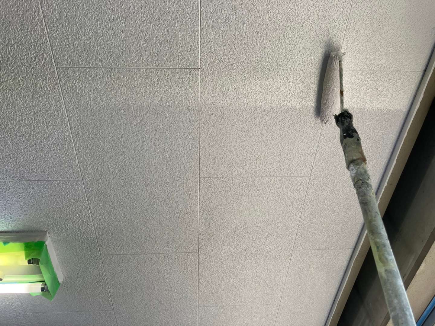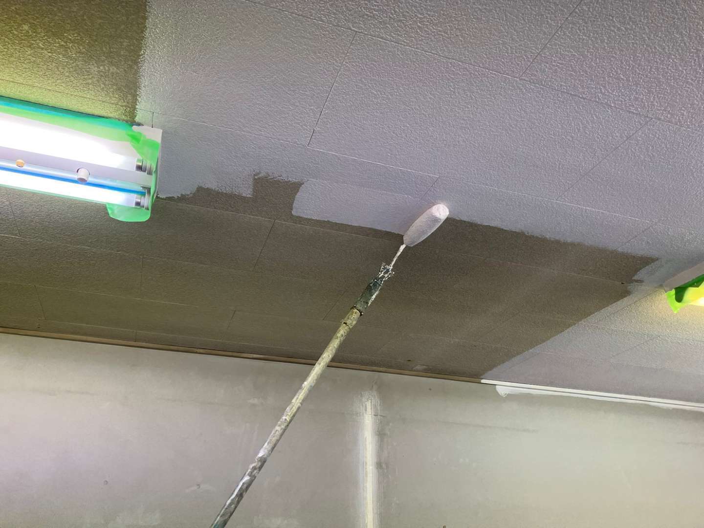 昨日の作業内容は、養生作業・壁補修作業・天井1回目、2回目塗装作業でした!