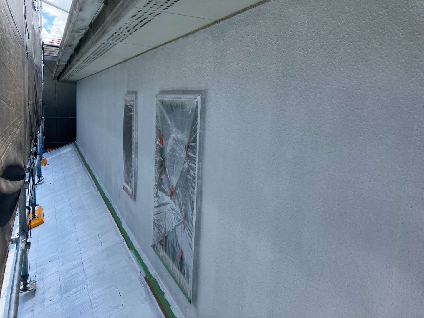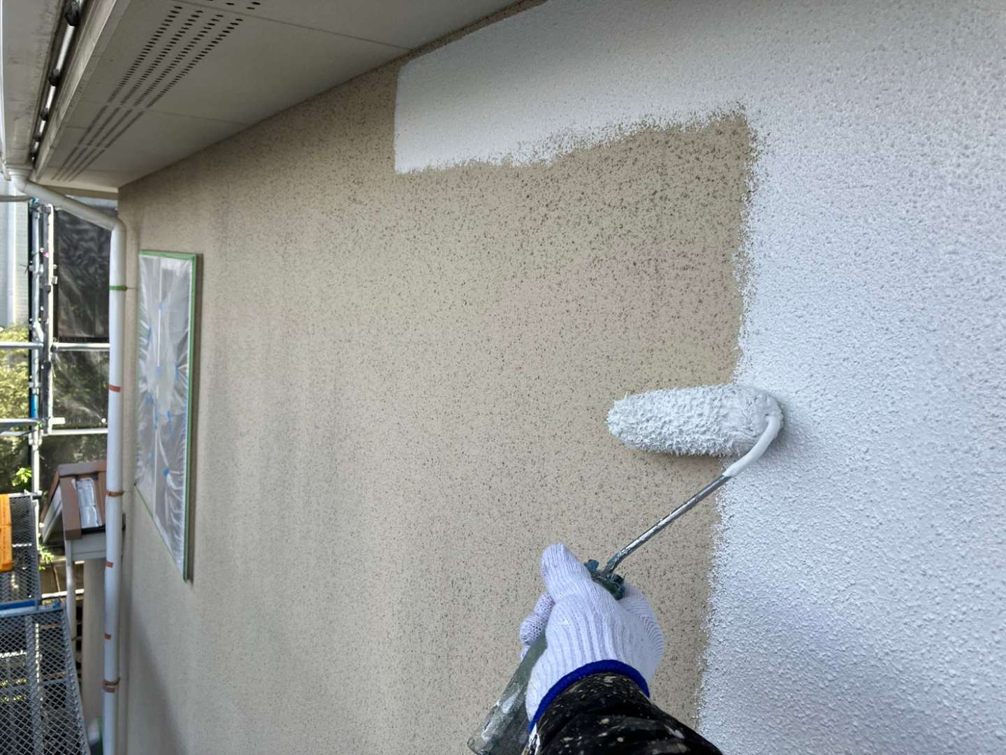 昨日の作業内容は、外壁の下塗り塗装・屋根の中塗り塗装・塀の下塗り塗装作業でした!