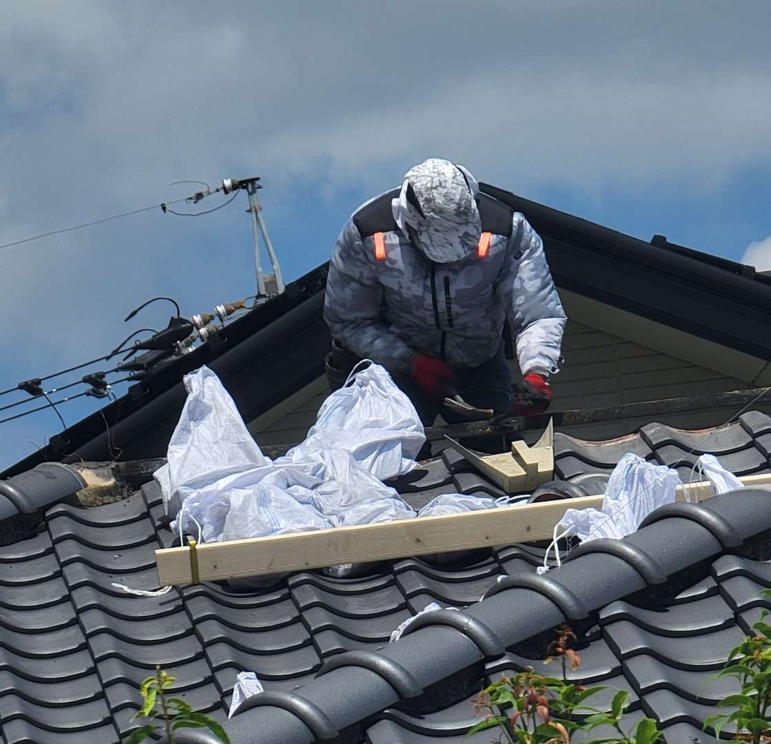 屋根漆喰工事(棟瓦・三日月漆喰工事)