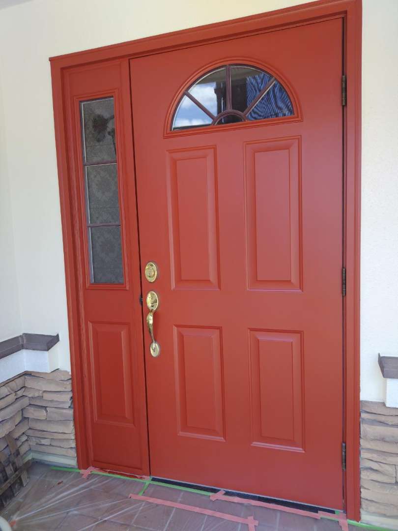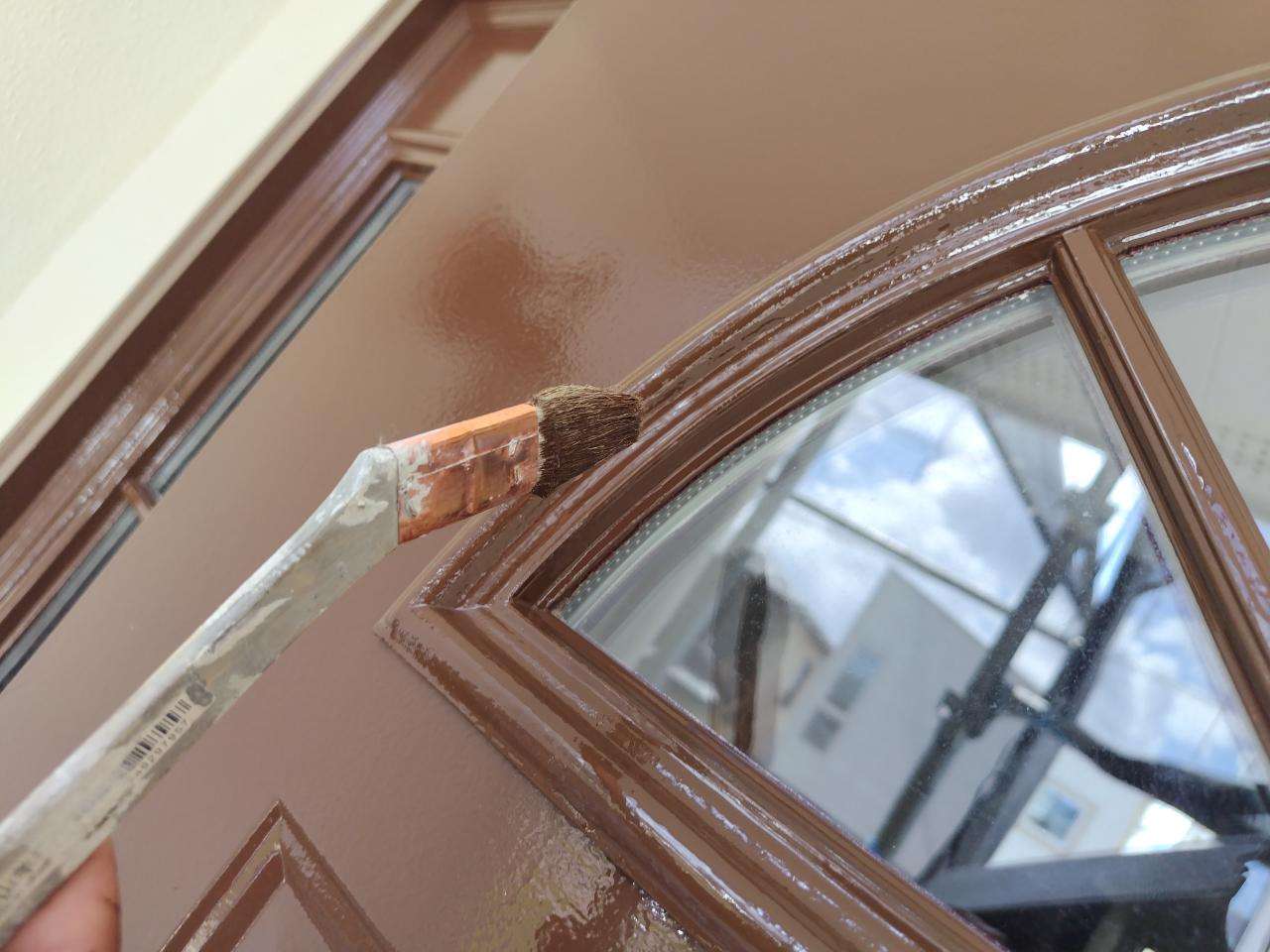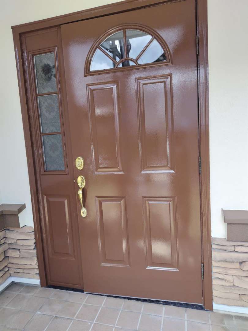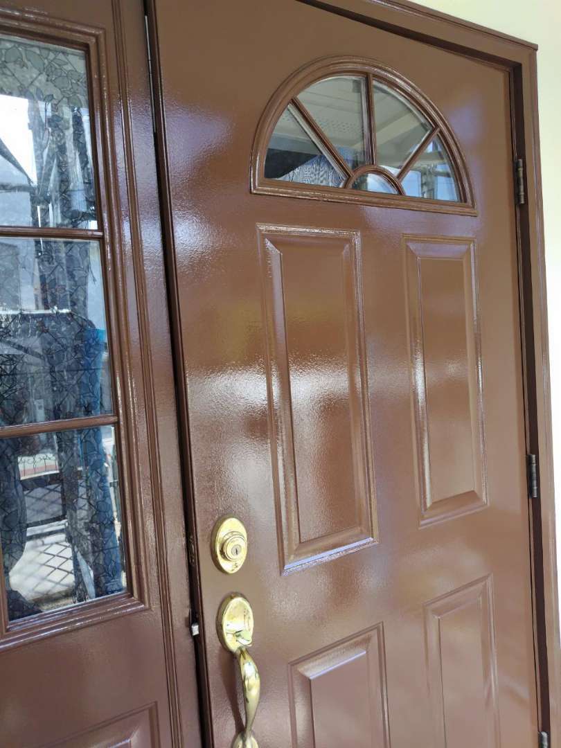 日曜日までの作業で、玄関ドア塗装作業とベランダのプライマー塗装・トップコート塗装作業も完了していました!