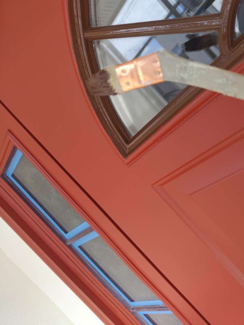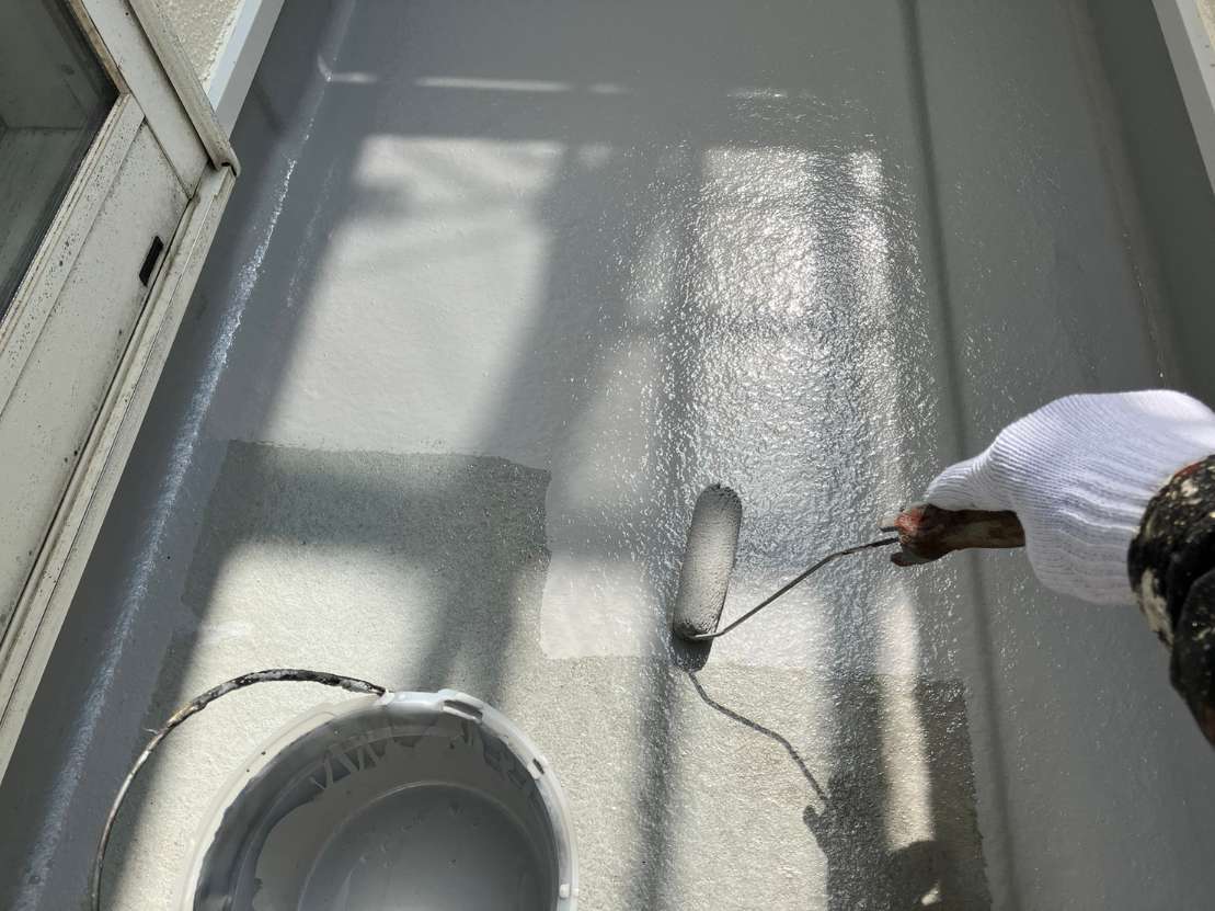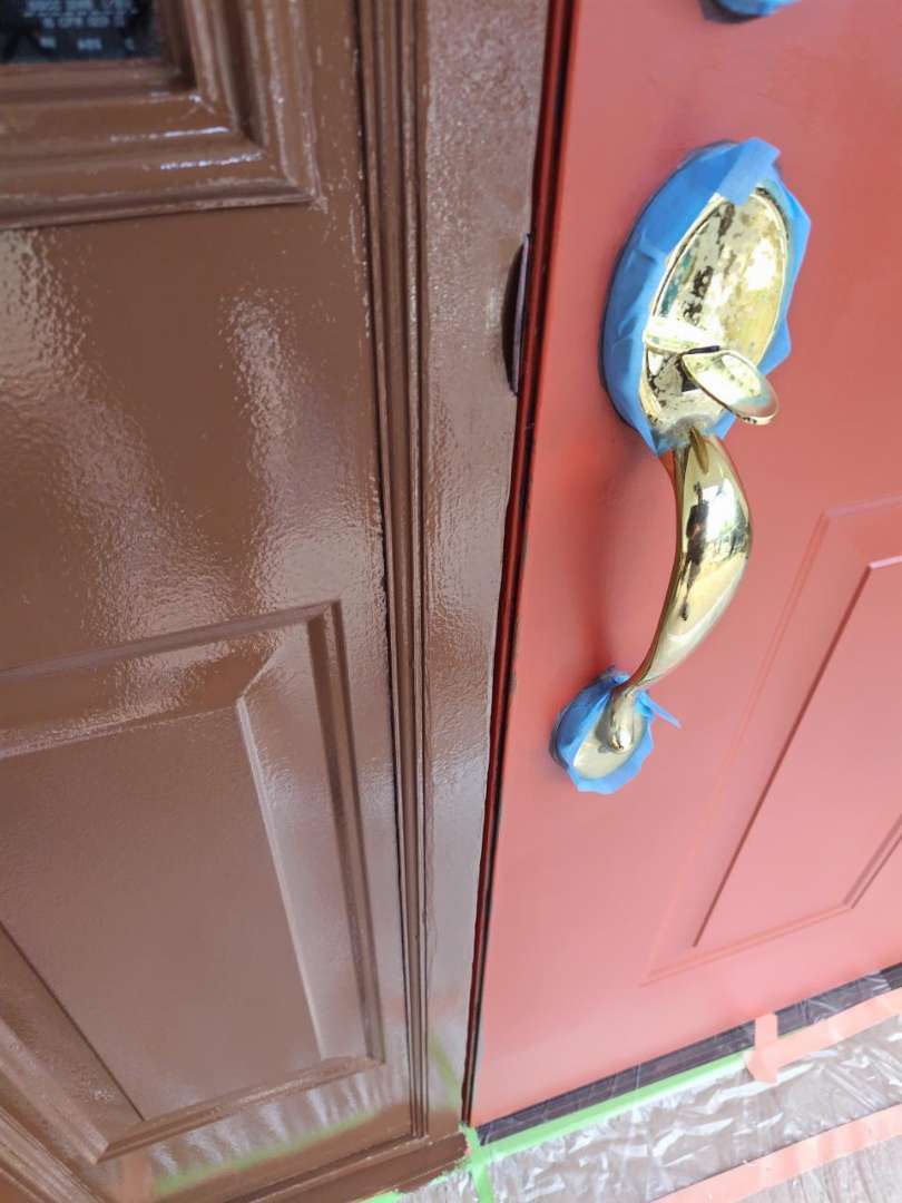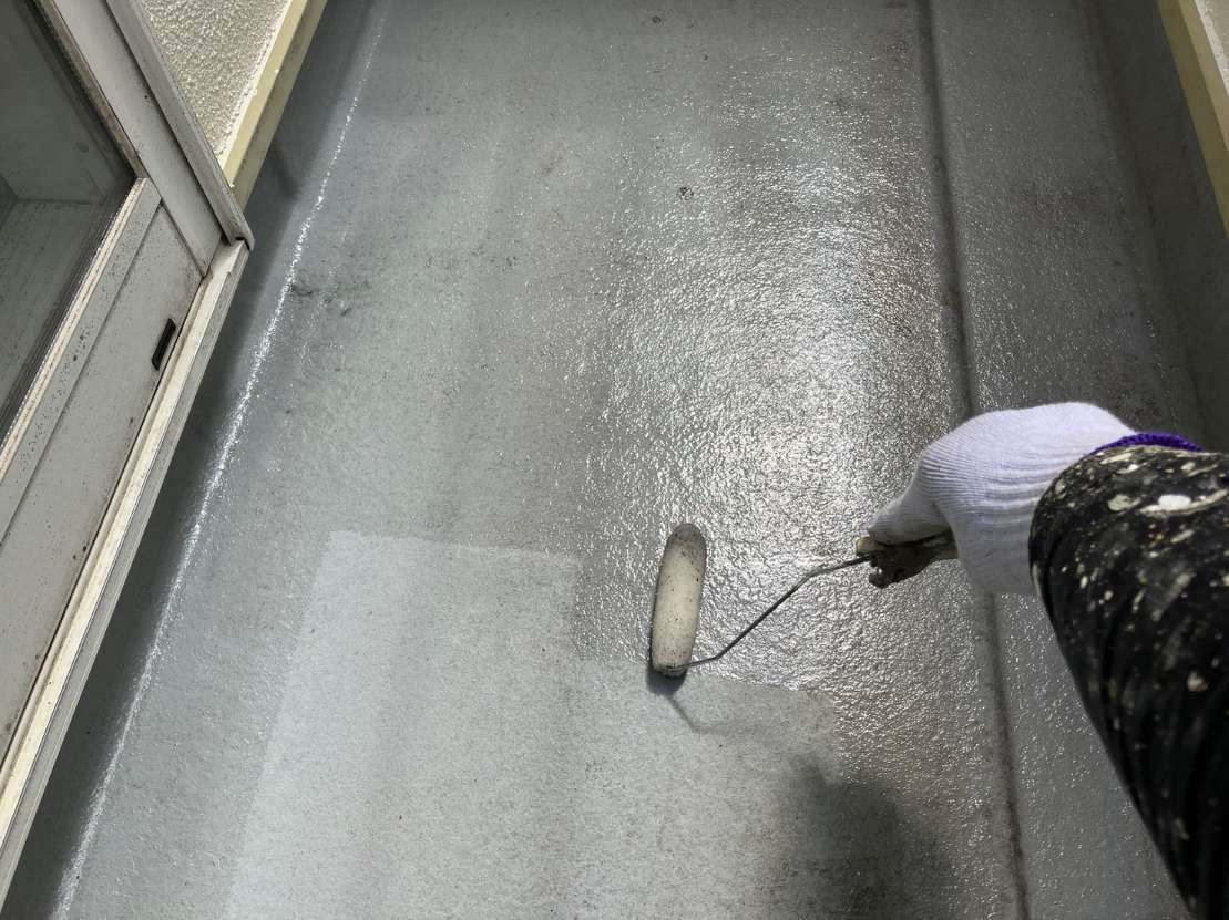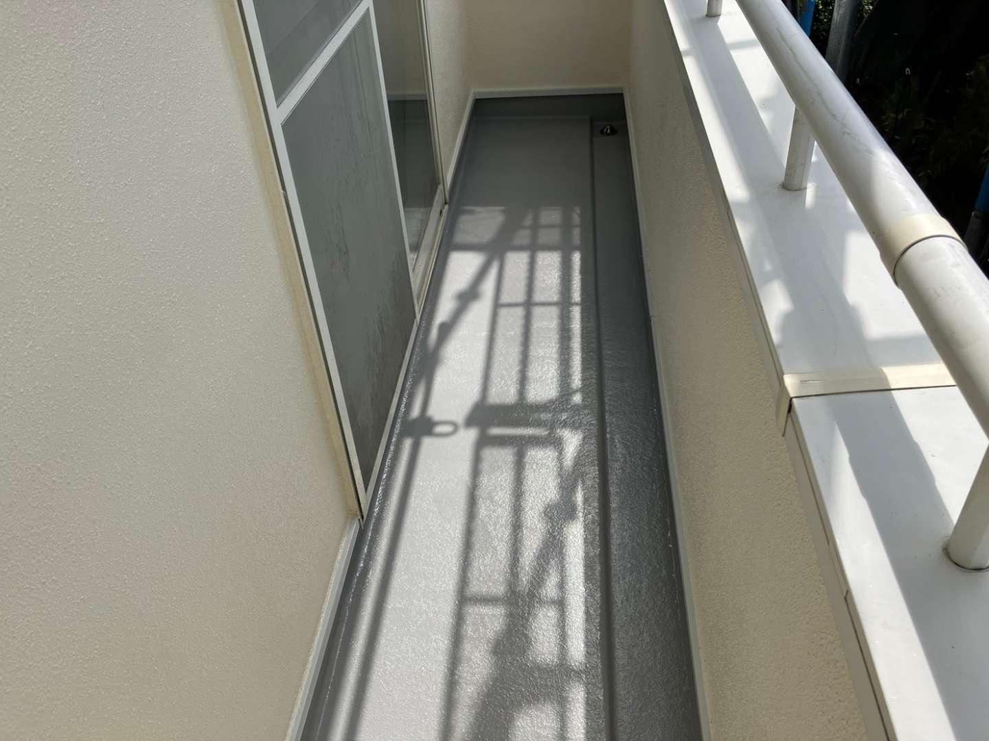 日曜日までの作業で、玄関ドア塗装作業とベランダのプライマー塗装・トップコート塗装作業も完了していました!