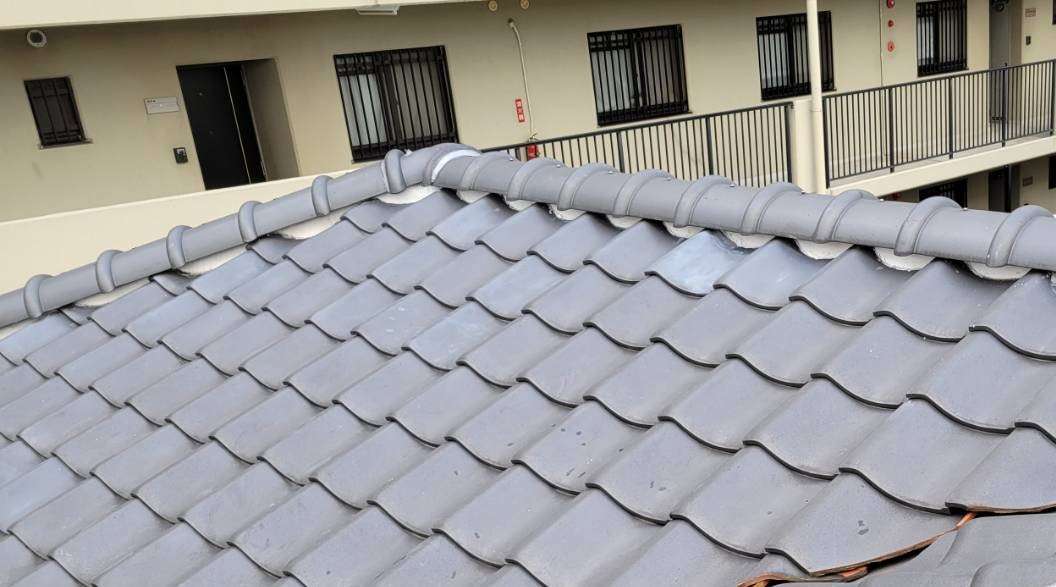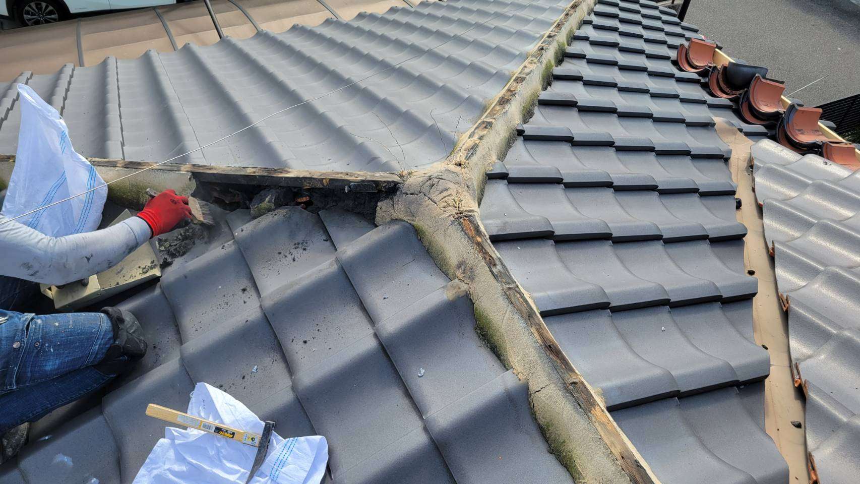 棟瓦外し・既存漆喰撤去・木部新設・漆喰・棟瓦戻し・瓦止めラバーコーキング打ち・ステンレスパワービス取付け・最終点検作業を行いました!