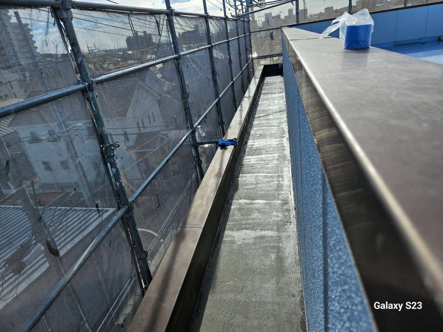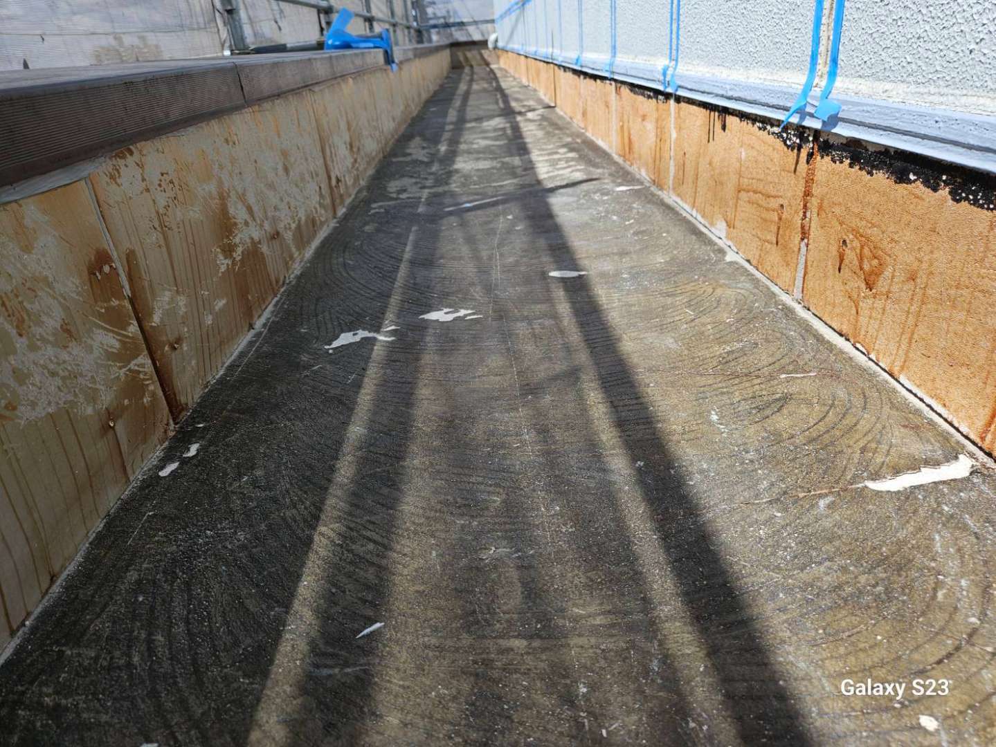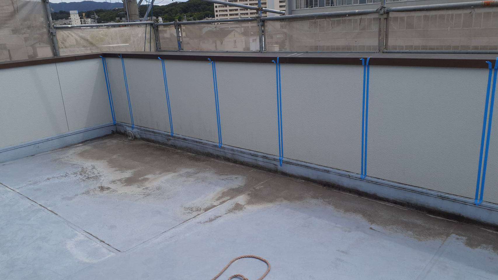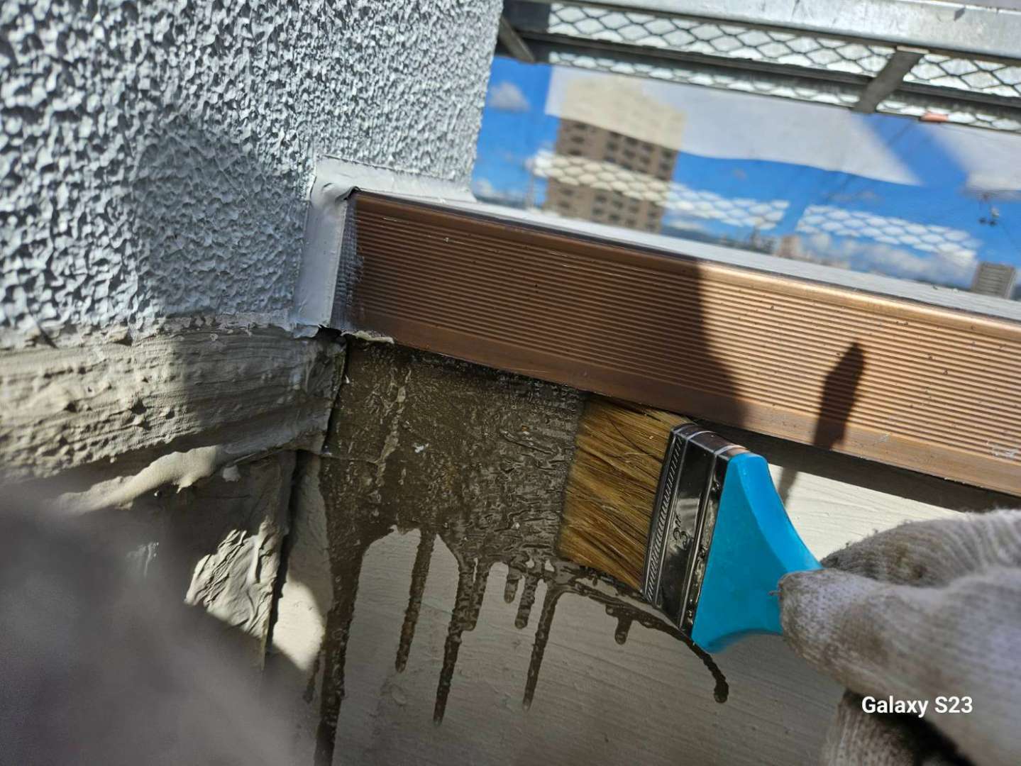 瀬戸市、H様邸の昨日の作業内容は、コーキング打ち替え作業とペントハウス部分のプライマー塗装作業と屋上下部分のシート撤去作業、ケレン作業、下地処理作業、プライマー塗装作業でした。