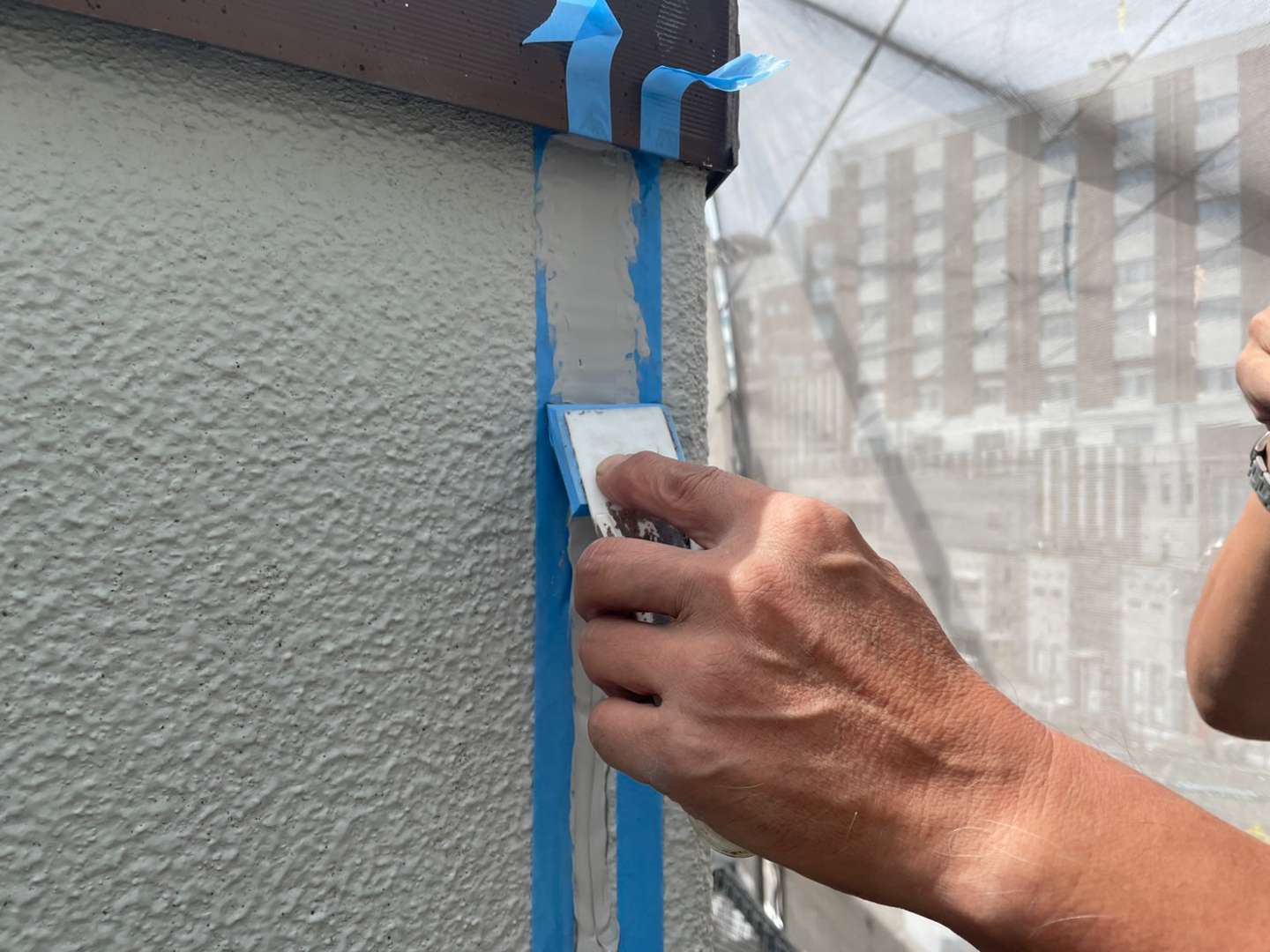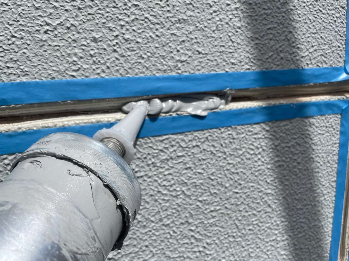 H様邸 昨日の作業内容は、引き続き外壁のコーキング打ち替え作業と