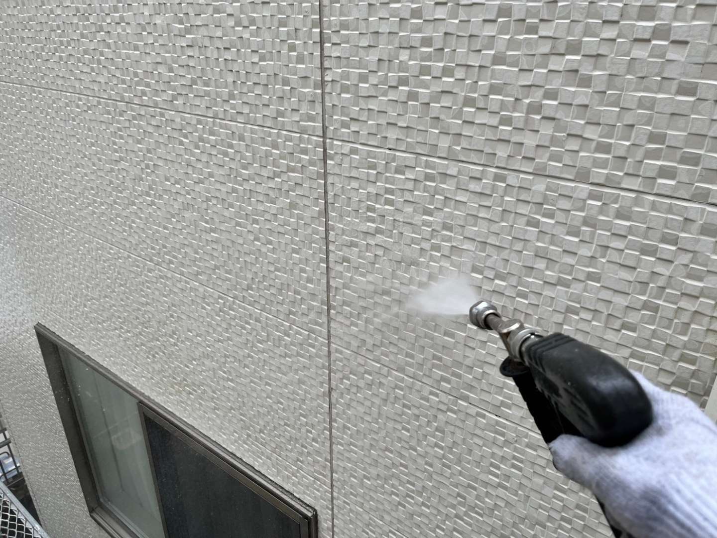 名古屋市名東区 K様邸 外壁塗り替え工事 洗浄作業が終わり、今日は養生作業です! 洗浄作...